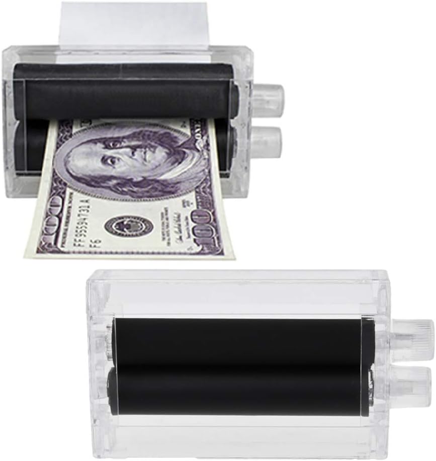 Mentre la carta in macchina muove a forma S, white paper in un lato e la nota esce in un altro lato della macchina Posizionare white paper dall parte della macchina Stampa un pezzo carta bianca e la carta alla nota denaro Ruovi la macchina e la nota denaro viene fuori Posizionare o due note nella macchina da stampa, preparare un pezzo carta bianca delle stesse dimensioni della nota