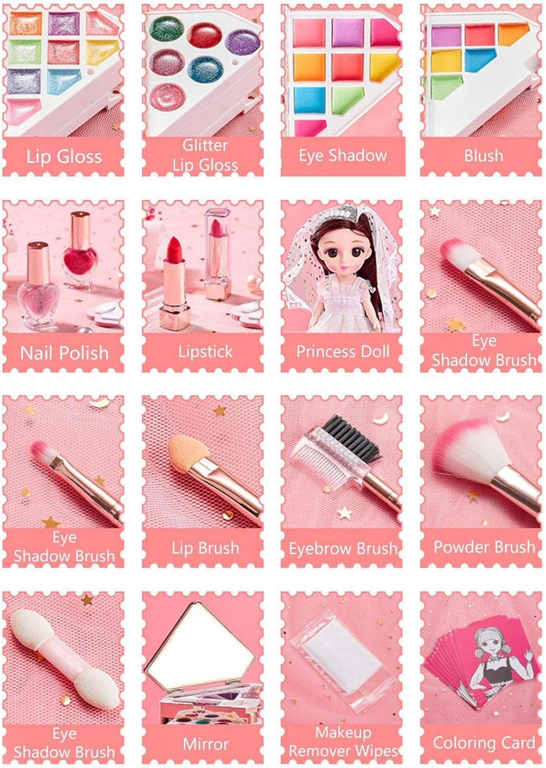 ♚Set impressionante: questo set di trucchi per bambini vanta una lavorazione raffinata e ricchi con cosmetici di vari colori che impressioneranno ogni piccola principessa. I cosmetici sono di lunga durata e lisci, donando ai tuoi bambini un aspetto naturale e bello. ♚Sicuro e lavabile: lascia che i tuoi bambini esplorino la loro creatività con questo set per il trucco realizzato in materiale idrosolubile delicato sulla pelle che può essere facilmente lavato via con acqua. Sicuro, innocuo e delicato sulla pelle, perfetto per ore di divertimento senza sensi di colpa e senza preoccupazioni. ♚Divertimento senza disordine: lascia che i tuoi piccoli esplorino il loro amore per il trucco con questo set di trucchi per bambini. Non rovineranno i cosmetici dei loro genitori perché il nostro trucco è facile da applicare e rimuovere, rendendolo perfetto. Porta un sorriso sul viso di tuo figlio con ore di gioco creativo con i suoi innocui strumenti per il trucco. ♚Sviluppo del bambino: migliora l'alfabetizzazione in materia di bellezza di tuo figlio con questo set di trucchi per bambini. La creatività di tuo figlio volerà mentre gioca con queste bambole, rendendo questo set il regalo perfetto per ogni giovane innovatore. ♚Regalo pratico: questo set di trucchi per bambini è realizzato con materiali innocui e lavabili, così la tua piccola principessa potrà godersi il suo gioco di finzione senza preoccupazioni. È il regalo perfetto per le bambine che desiderano il loro primo trucco.