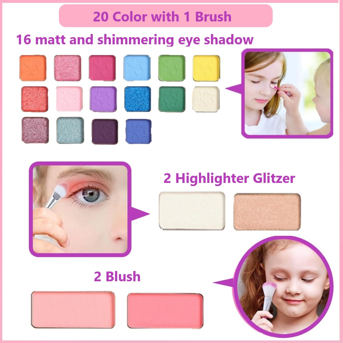 ✅【Palette di trucco per bambini 20 in 1】: la tavolozza di trucco per bambini KARLOR contiene 16 ombretti opachi, 2 highlight glitter, 2 fard e 1 pennello. Ideale come regalo per bambine dai 4 anni in su. I bambini piccoli dovrebbero truccarsi e giocare sotto la supervisione dei genitori. ✅【Sicuro e Lavabile】: La nostra tavolozza di trucchi per bambini è realizzata con materiali sicuri e di alta qualità, è lavabile, morbida sulla pelle, non tossica e facile da pulire e ha superato la certificazione EN71 e CRSP. Ciò significa che è sicuro e delicato sulla pelle della ragazza, quindi la tua principessa non avrà preoccupazioni. ✅ 【Vero set di trucchi per bambini】: la tavolozza cosmetica per ragazze KARLOR è appositamente progettata per consentire alle bambine di esercitarsi nel trucco. Nel frattempo, il bambino non rovinerà i costosi cosmetici dei genitori. La tua bella principessa sarà molto entusiasta di questo set di cosmetici per ragazze. ✅ 【Design carino e facile da trasportare】: l'aspetto di questo vassoio per il trucco è un simpatico quaderno. Puoi chiudere il coperchio molto comodamente e trasportarlo facilmente. C'è uno specchio nella tavolozza dei trucchi, che è molto utile per le ragazze per truccarsi. Questo set di trucchi per bambini assicura alla bambina un trucco divertente, sempre e ovunque. ✅ 【I migliori regali per ragazze】: ogni bambina vuole avere il proprio set di trucchi. La confezione del nostro prodotto è carina e bella. Le bambine saranno soddisfatte di questo set per il trucco, adatto per regali di compleanno, Natale o festival, ecc.