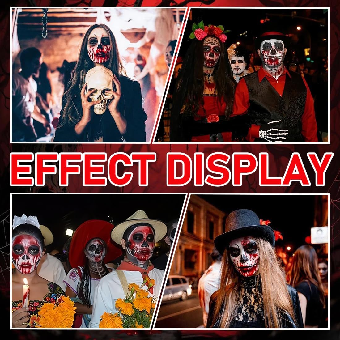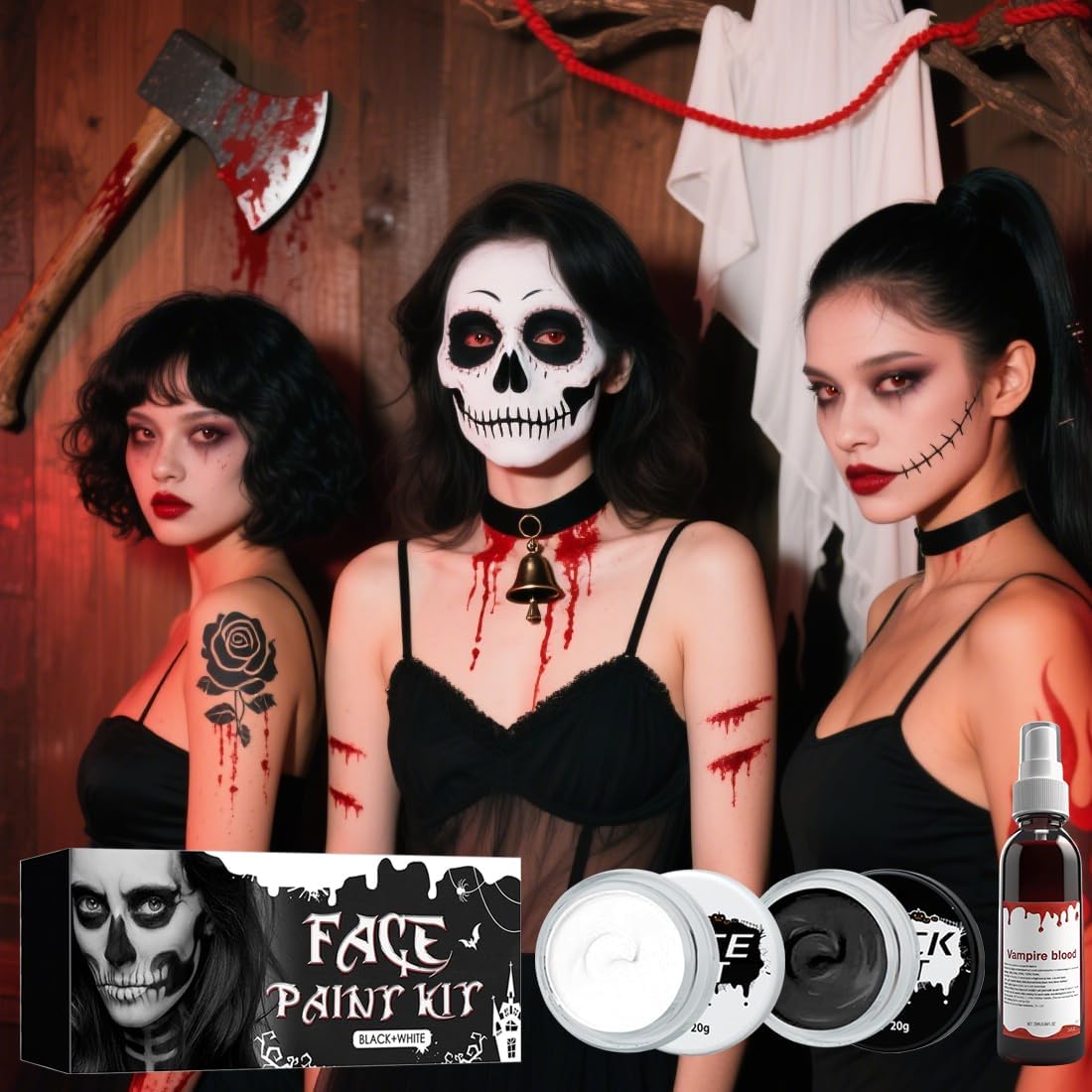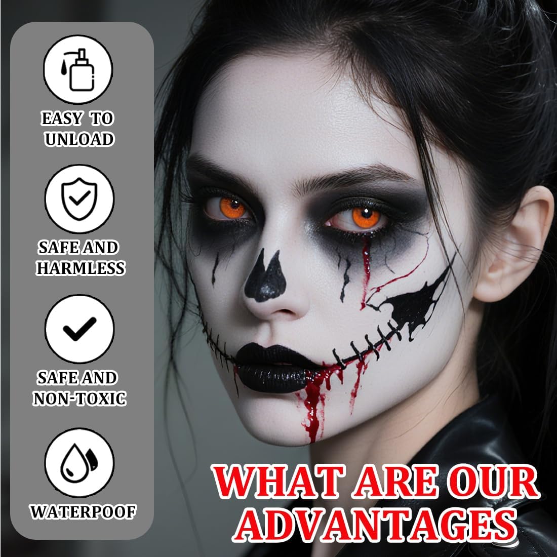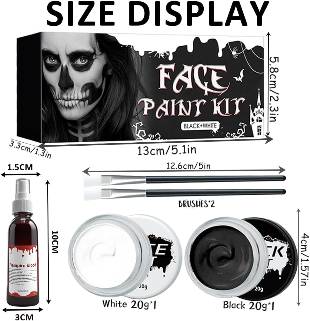 【🎨 Pittura per il viso di Halloween】 Questo kit completo per il trucco professionale include 20 g di vernice nera, 20 g di vernice bianca, 25 g di spruzzo di sangue realistico e 2 pennelli premium, perfetti per applicazioni trasparenti o sfumature creative su tutto il viso e il corpo. 【🌸 Comfort e Morbidezza Eccezionali】Formulata con pigmenti di alta qualità, la texture ultra delicata garantisce una copertura omogenea e confortevole per tutto il giorno, nel rispetto della pelle sensibile (si consiglia un previo test allergico dietro l'orecchio). 【✨ Notevole facilità di applicazione】 La formula speciale si applica intuitivamente con le dita, una spugna o i pennelli inclusi e si rimuove istantaneamente senza sforzo con uno struccante delicato, anche dopo una lunga giornata di utilizzo. 【🎭 Versatilità d'uso】 Ideale per Halloween, carnevali, spettacoli teatrali, convention di cosplay, feste di compleanno a tema, progetti artistici scolastici ed eventi festivi: libera la tua creatività senza limiti! 【♻️Garanzie di sicurezza e qualità】Prodotto certificato non tossico, privo di parabeni e allergeni, dermatologicamente testato per un utilizzo sicuro da parte di adulti e bambini (Non consigliato per bambini sotto i 10 anni).