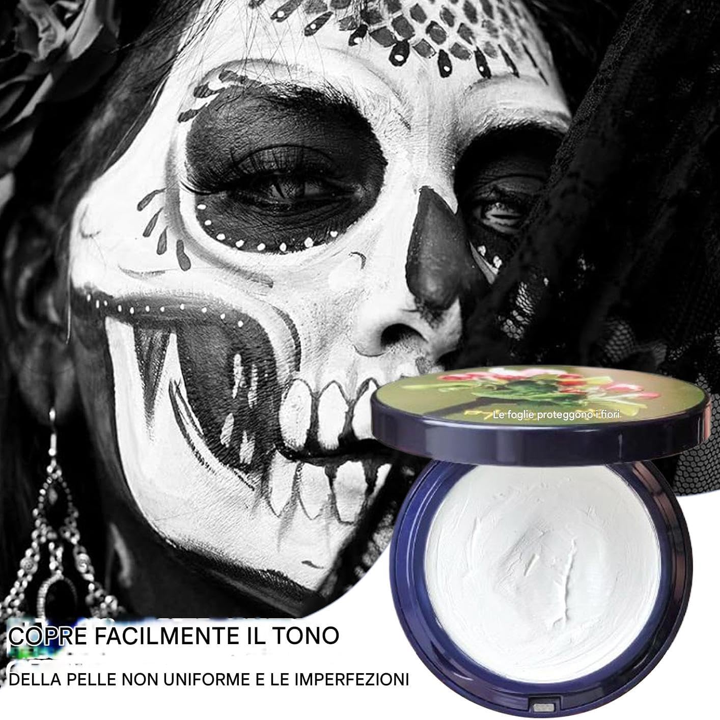 Formula delicata e ipoallergenica: La formulazione traspirante evita effetto appiccicoso o pesante, garantendo una sensazione leggera sulla pelle e un comfort prolungato per tutte le condizioni cutanee, anche le più sensibili Formula Anti-Sudore: Progettato per limitare i ritocchi frequenti, il trucco viso bianco preserva la vivacità cromatica anche con sudore e movimento, ideale per un wear prolungato in diverse condizioni senza compromettere l'effetto visivo nel Formula Coprente: Ottieni risultati eccellenti, grazie al design buildable del correttore che maschera efficacemente le discromie, offrendo un'applicazione adattabile per ogni occasione Rimozione Agevole: Sperimenta una rimozione conveniente di questo colore viso bianco che si via facilmente con acqua, diminuendo lo sforzo aggiuntivo e garantendo una routine di pulizia diretta e efficiente senza complicazioni o prodotti speciali Molteplici Impieghi: Ideale per fotografia e ampiamente utilizzata in costumi da festival, performance teatrali e attività creative di pittura facciale e corporea, assicurando risultati vivaci per varie esigenze artistiche