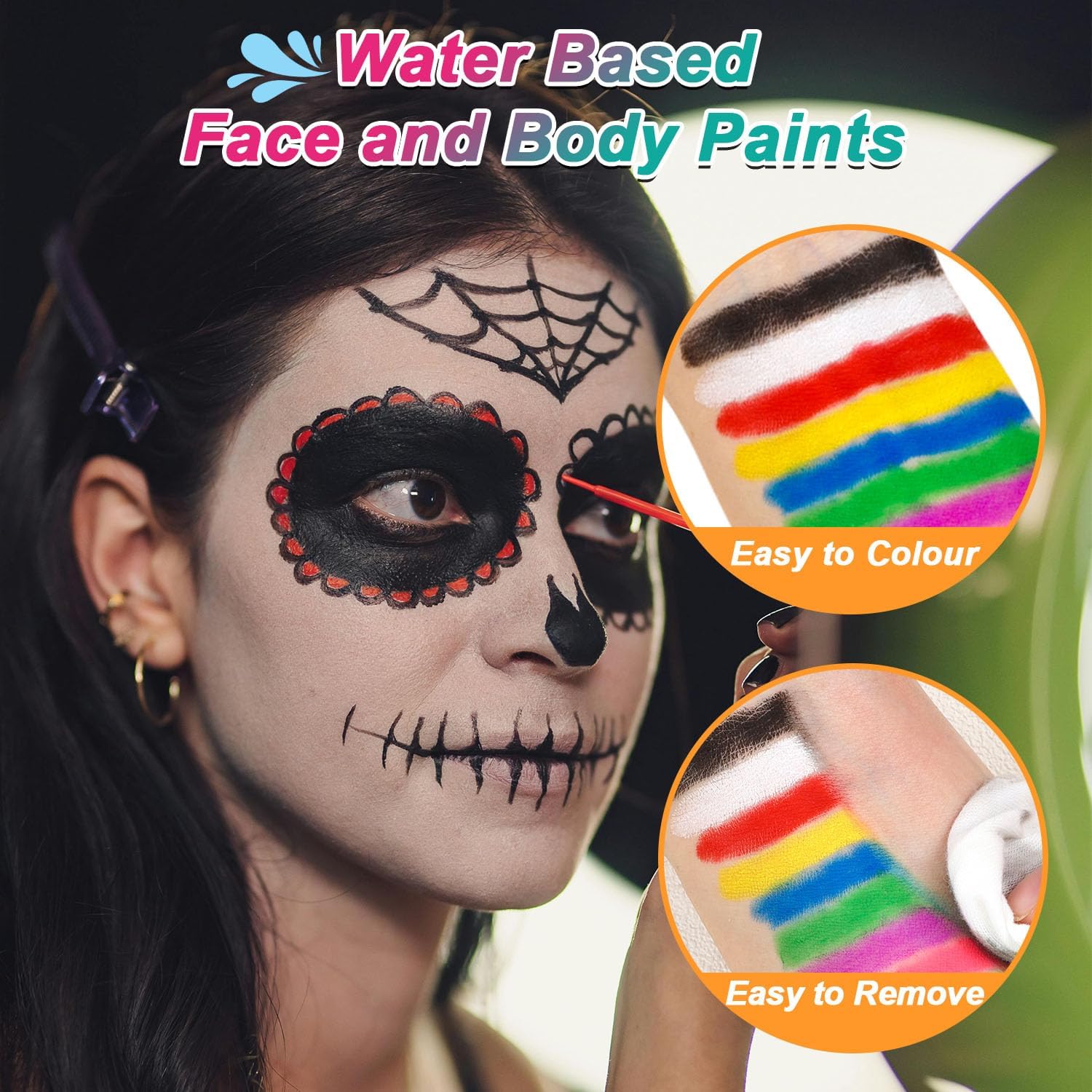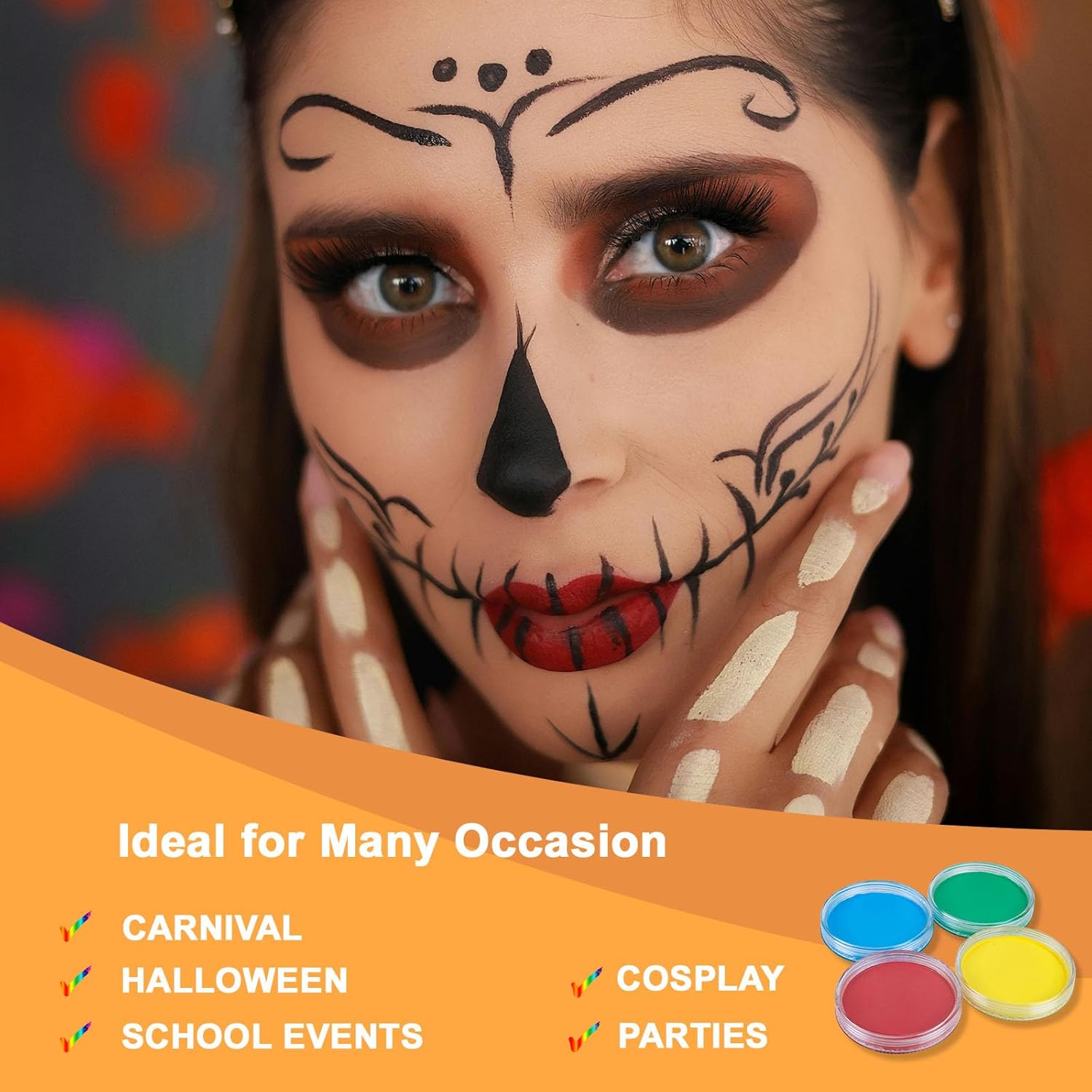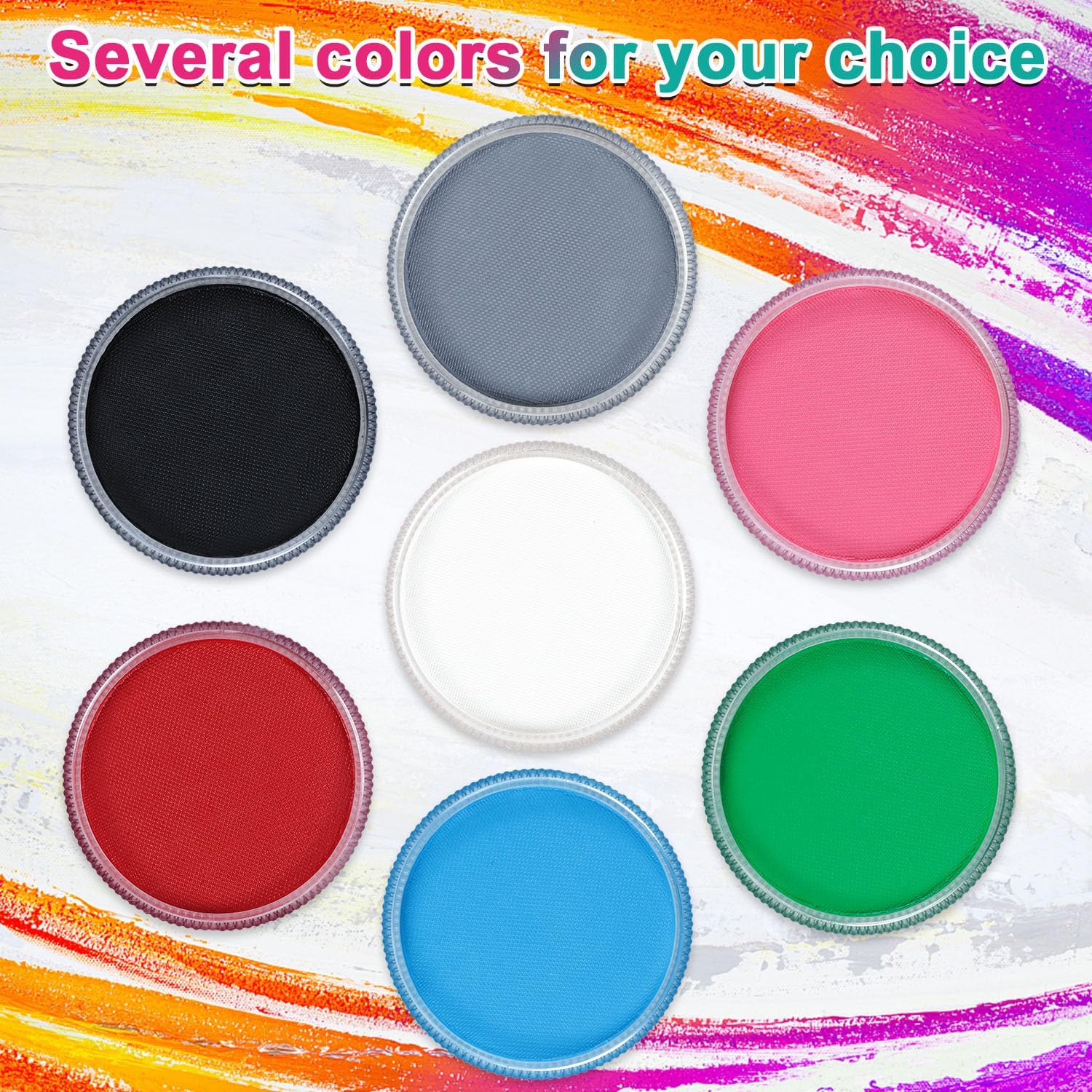 Grande capacità: Il nostro trucco professionale contiene 90 g, una quantità superiore a quella di un normale set di vernici, e ha diversi colori tra cui scegliere. Il nostro trucco di carnevale è a base d'acqua, non tossico e sicuro per la pelle ed è adatto a bambini e adulti. Facile da applicare e da rimuovere: Il nostro trucco professionale ad acqua deve essere mescolato solo con un po' d'acqua ed è altamente pigmentato, con colori brillanti. Il trucco di carnevale si lava facilmente con acqua e sapone e non lascia residui chimici sul viso. Versatile: Il Face Painting ha una grande capacità, per cui è possibile utilizzarlo più volte senza doverlo ricomprare. Il trucco per bambini e adulti può essere utilizzato su capelli, viso, corpo e altro ancora, rendendo il processo di pittura più facile e divertente. Adatto a diverse occasioni: Per feste di Halloween, compleanni, Natale, eventi cosplay o semplicemente quando si ha bisogno di un'attività facile e divertente a casa. Con i nostri trucchi in maschera potrete facilmente creare look divertenti per voi stessi. Creazioni divertenti: Che siate principianti, esperti di make-up o bambini che amano creare, è facile creare disegni divertenti con la nostra pittura per il viso. Nota: poiché ogni tipo di pelle è diverso, si consiglia di effettuare un test della pelle prima dell'uso.