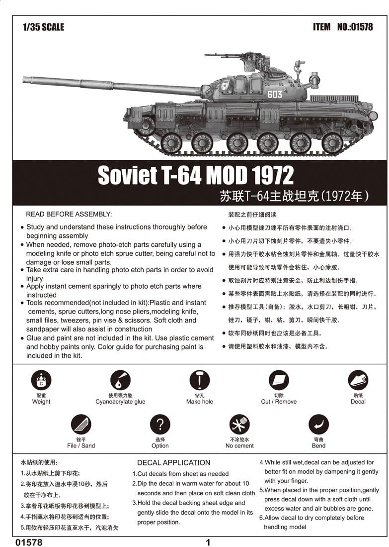 Trumpeter 01578 Kit modello Â? Sovietico 64 Mod 1972