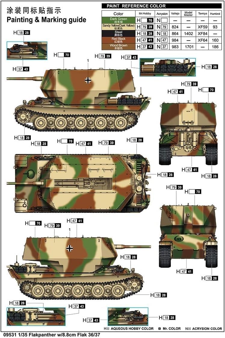 Trombettiere 1:35 - Flakpanther con 8,8 cm Flak 36/37 Kit di modelli in plastica dettagliata Questo non è un giocattolo