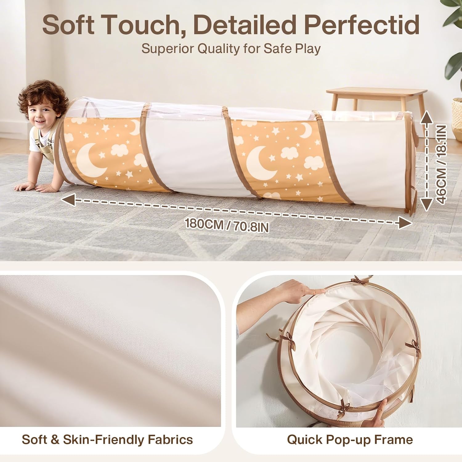 Sicura e durevole: questa tunnel per bambini è realizzata in tessuto Oxford 210D di alta qualità e acciaio flessibile ad alta resistenza, estremamente resistente all'usura. La tenda da gioco soddisfa tutti gli standard di sicurezza UE, garantendo maggiore sicurezza per i vostri bambini. Crescita sana dei bambini – Stimola l'immaginazione dei bambini e promuove le capacità motorie (movimento e gattono), allena le mani e le ginocchia del bambino. Durante il gioco, migliorano il loro indirizzo e liberano la loro energia. Design della finestra di rete sicura: aggiungete finestre in rete traspirante ai tunnel colorati per aumentare la ventilazione dei tunnel e allo stesso tempo facilitare i genitori a prestare attenzione alla sicurezza dei loro bambini. Un clic pop-up – Il design pop-up con un clic in materiale morbido e pieghevole è facile da usare e salvaspazio e viene fornito con una leggera borsa per il trasporto con cerniera per un facile viaggio all'aperto. Regalo per ragazzi e ragazze – ideale per bambini a partire dai 36 mesi. Una grande idea regalo per compleanni, estate, Natale o semplicemente come sorpresa. Il design colorato sarà sicuramente amato dai bambini. Ideale per il gioco fisico e stimola l'immaginazione.