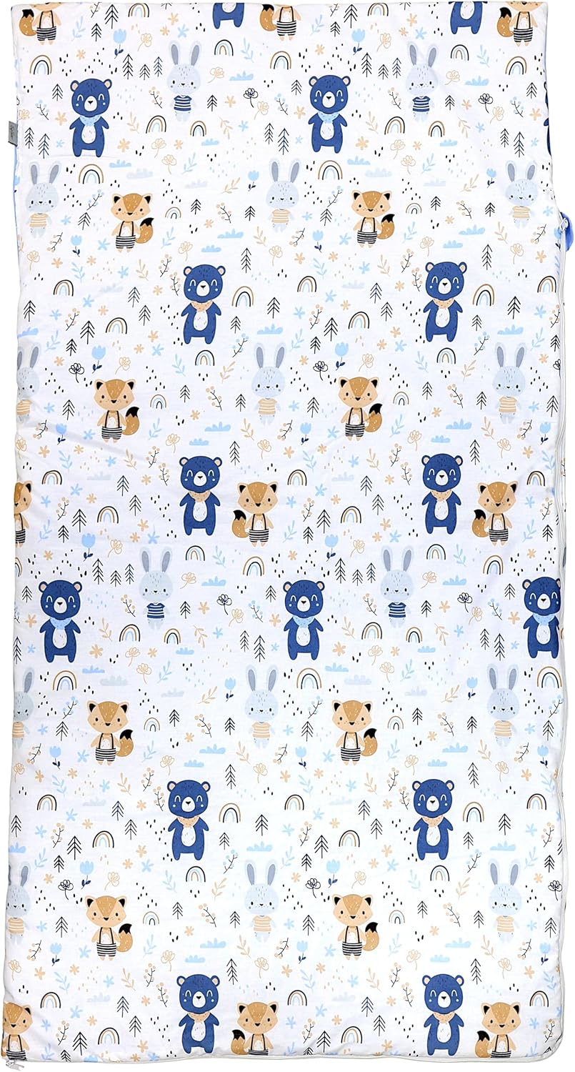 TESSUTO TRASPIRANTE – Cotone delicato sulla pelle, confortevole in ogni stagione CUSCINO INTEGRATO – Supporto morbido per testa e collo; imbottitura che mantiene la forma PRATICO IN VIAGGIO – Si ripone nella sacca inclusa; perfetto per asilo, viaggi, pigiama party e campeggio DESIGN PER BAMBINI – Fantasie colorate per bimbi e bimbe; disponibile in molte varianti FACILE DA LAVARE – Lavabile a 40 °C e ad asciugatura rapida, ideale per l’uso quotidiano