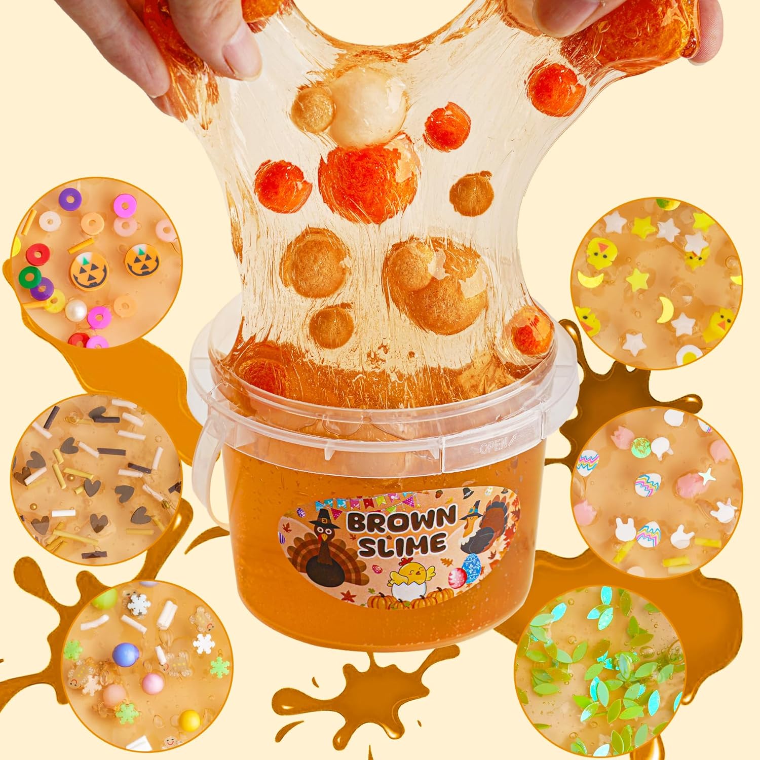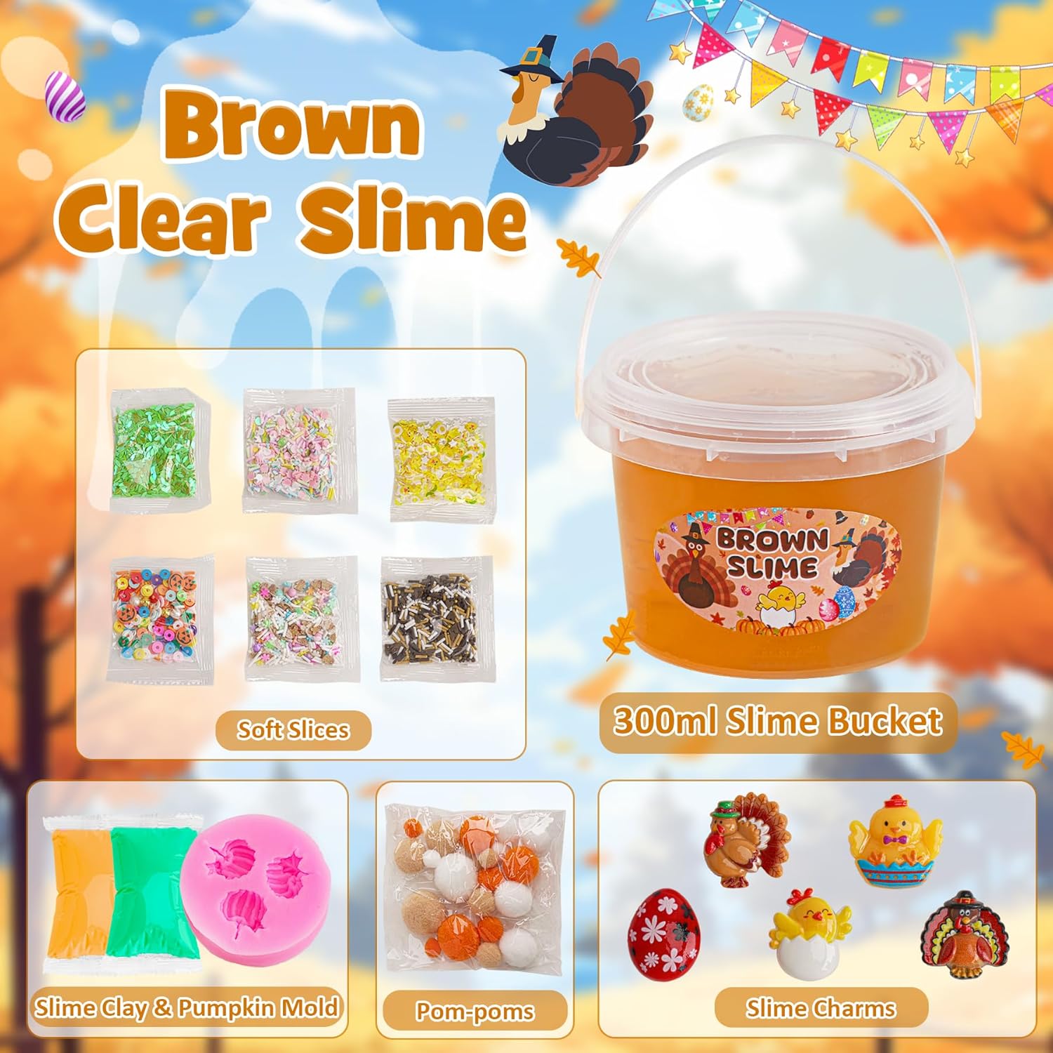 ?Slime trasparente di grande capacità?Ogni secchio è confezionato con una generosa quantità di slime, contenente 300 ml/10 fl oz di pura gioia. Avrai molto da condividere con amici e familiari, oppure tienilo tutto per te: la scelta è tua. ?Varietà di componenti aggiuntivi per slime?Per aumentare il divertimento, abbiamo incluso 10 confezioni di diversi componenti aggiuntivi per slime con il nostro kit per slime. Crea il tuo slime come slime al burro o slime croccante attraverso l'esplorazione e la scoperta pratica. ?Slime per bambini? Realizzato con ingredienti di alta qualità, questo slime marrone è sicuro sia per i bambini che per gli adulti. Nota: si raccomanda la supervisione di un adulto per i bambini di età inferiore ai 3 anni. NON mangiare ?Super morbido, elastico? Lo slime preconfezionato di Okaybee offre una consistenza unica, super morbida al tatto. Grazie alla sua natura facile da usare, puoi immergerti subito e iniziare a goderti la bontà soffice ed elastica. ?Ottimo regalo di slime per bambini?Questo kit di slime a forma di tacchino è un eccellente regalo di compleanno per le feste per bambini e bambine di 6, 7, 8, 9, 10, 11, 12 anni. Bomboniere di slime per feste, scuola o ognissanti, persino riempitivi per calze di Natale.
