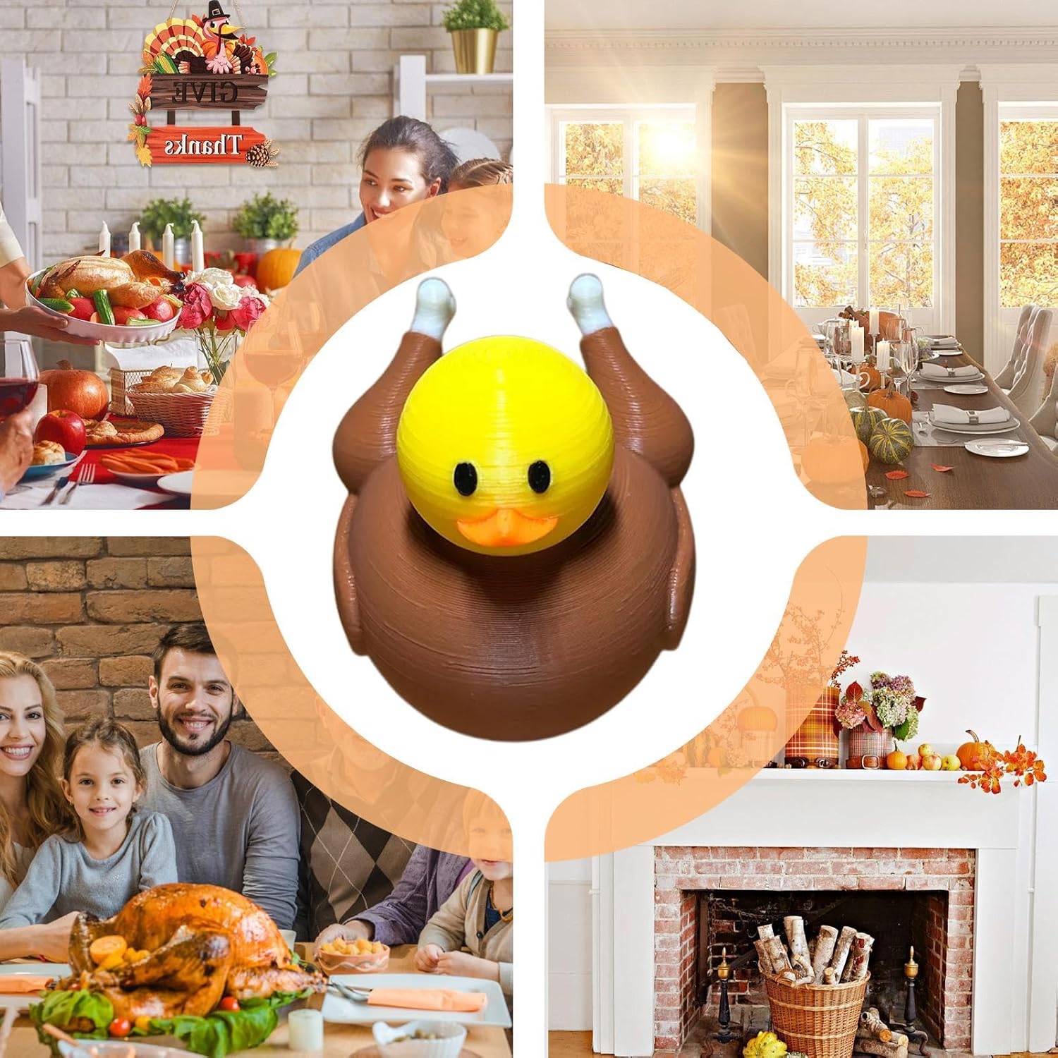 Printed Thanksgiving Ducks: These Turkey Ducks are creatively designed using printing technology, making each piece unique and highly detailed. The Thanksgiving-themed ducks feature vibrant colors and a fun, whimsical design that adds a playful touch to your holiday decor. Perfect Fall Table Centerpiece: These adorable printed ducks make a charming addition to any Thanksgiving table. Their colorful and festive design instantly enhances the atmosphere, making them ideal for use as a table centerpiece during fall gatherings, family dinners, or Thanksgiving celebrations. Holiday Favors for Guests: These Turkey Ducks are not only decorative but also make delightful holiday favors for guests. Whether used as place settings or small gift items, they bring a cheerful and memorable touch to your Thanksgiving festivities, making them perfect for family and friends of all ages. Fun Toddler Toys: Safe for , these Thanksgiving-themed ducks make fun, interactive toys for young children. Their colorful appearance and playful design kids, helping to foster imaginative play during the holiday season. A great way to keep entertained while celebrating. Sturdy & Lightweight: Made from durable, lightweight materials, these printed ducks are designed to last for many Thanksgiving celebrations to come. Their sturdy construction ensures they remain in good condition while being light enough for easy handling and placement anywhere in your home.