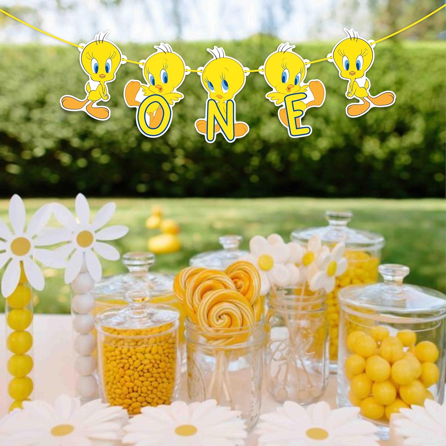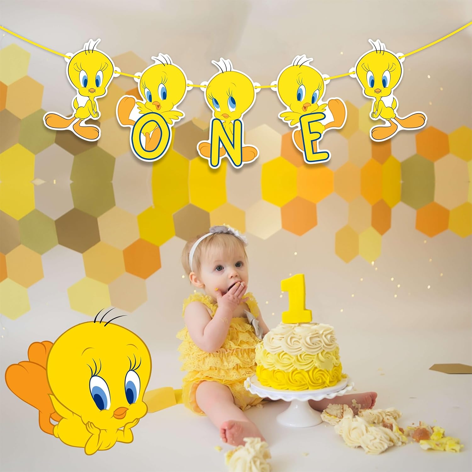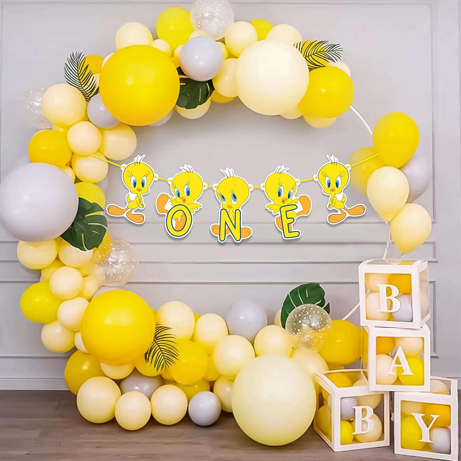 ADORABILE DESIGN TWETY: con i personaggi iconici di Twety e altro ancora, questo striscione delizierà sicuramente bambini e adulti. I colori vivaci ispirati all'oceano e le illustrazioni affascinanti rendono questa decorazione perfetta per il primo compleanno del tuo bambino. MATERIALI DI ALTA QUALITÀ: Realizzato con un pannello artistico 260 premium ed ecologico, questo banner è robusto, leggero e durevole. È progettato per resistere all'eccitazione della tua festa mantenendo i suoi colori vivaci. DIMENSIONE PERFETTA: il banner di misurazione è ideale da appendere a pareti, porte o come sfondo per le foto. Le sue dimensioni sono perfette per creare un centrotavola di grande impatto visivo alla tua festa. Facile da appendere: lo striscione deve essere legato insieme e pronto per essere appeso. Con il necessario assemblaggio, puoi configurarlo rapidamente e facilmente per creare un'atmosfera istantanea a tema Twety. Decorazione versatile: perfetta per una festa di compleanno a tema anni Venti o Venti o per il primo compleanno di un bambino. È un ottimo modo per dare il tono a un'atmosfera divertente e magica. Ottimo per le foto: cattura momenti speciali con uno striscione che aggiunge fascino e colore a ogni foto. È lo sfondo perfetto per creare ricordi indelebili nel grande giorno del tuo bambino. Festeggia il primo compleanno del tuo piccolo con un tocco di divertimento e avventura Twety Lo striscione Twety One è la decorazione perfetta per rendere questo giorno speciale ancora più indimenticabile. Tuffati nel divertimento con lo striscione Twety One, perfetto per qualsiasi celebrazione a tema Twety