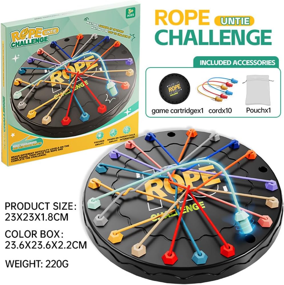 Impostazione di sfida multilivello: copre tre livelli di difficoltà da semplice a complesso, adatto a giocatori di tutte le età e diversi livelli di abilità, aiutando a migliorare gradualmente le capacità di risoluzione dei problemi Struttura elastica con coulisse: adottando un design di elasticità moderata, è resistente alla trazione e non facile da rompere, offrendo una nuova esperienza di rilascio della corda e garantendo un a lungo termine del gioco Strumento di esercizio mentale: il gioco di rottura della corda esercita l'immaginazione spaziale e il ragionamento logico, combina l'istruzione con l'intrattenimento e promuove il pensiero divergente Eccellente prodotto di interazione familiare: adatto per sfide da solista o gioco in famiglia, approfondimento delle relazioni genitore-figlio e condivisione della felicità della risoluzione dei puzzle Design di archiviazione portatile: dotato di una borsa di archiviazione dedicata, facile da organizzare gli accessori di gioco, prevenire la perdita e renderlo facile da trasportare