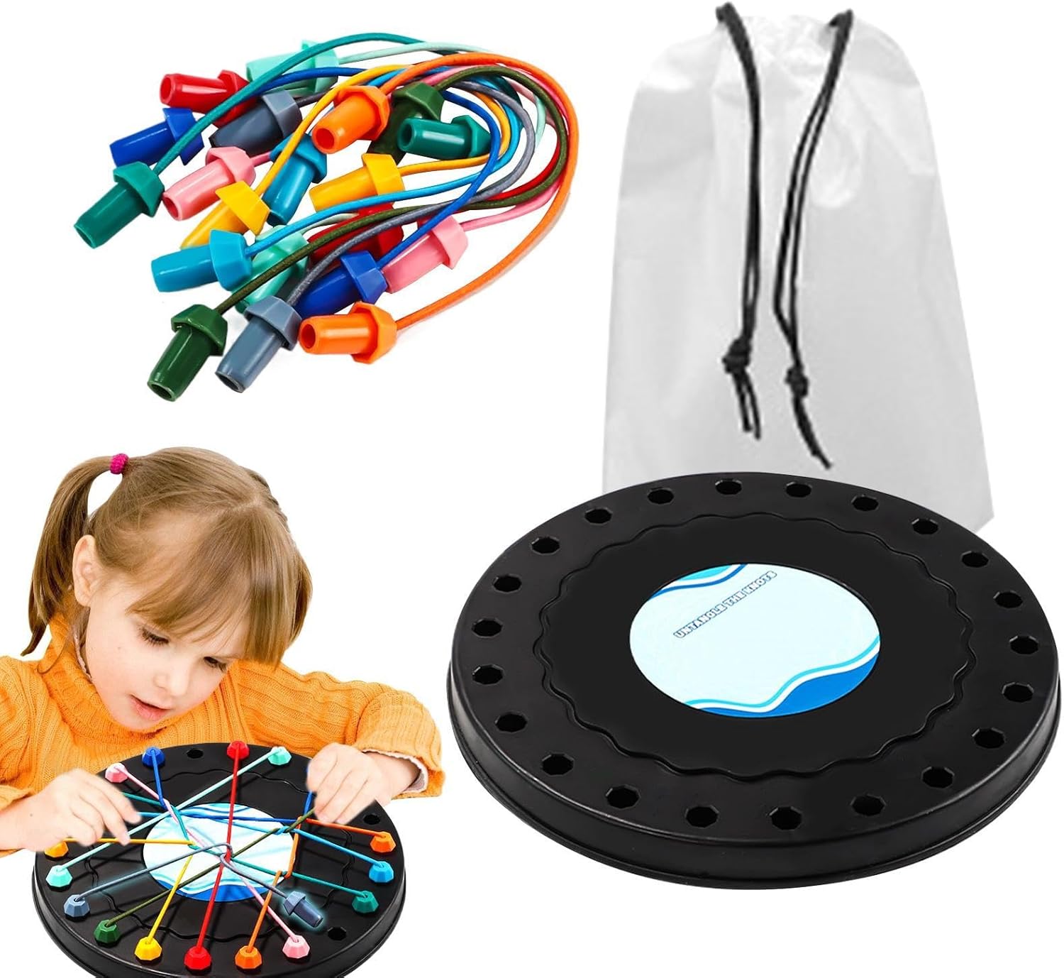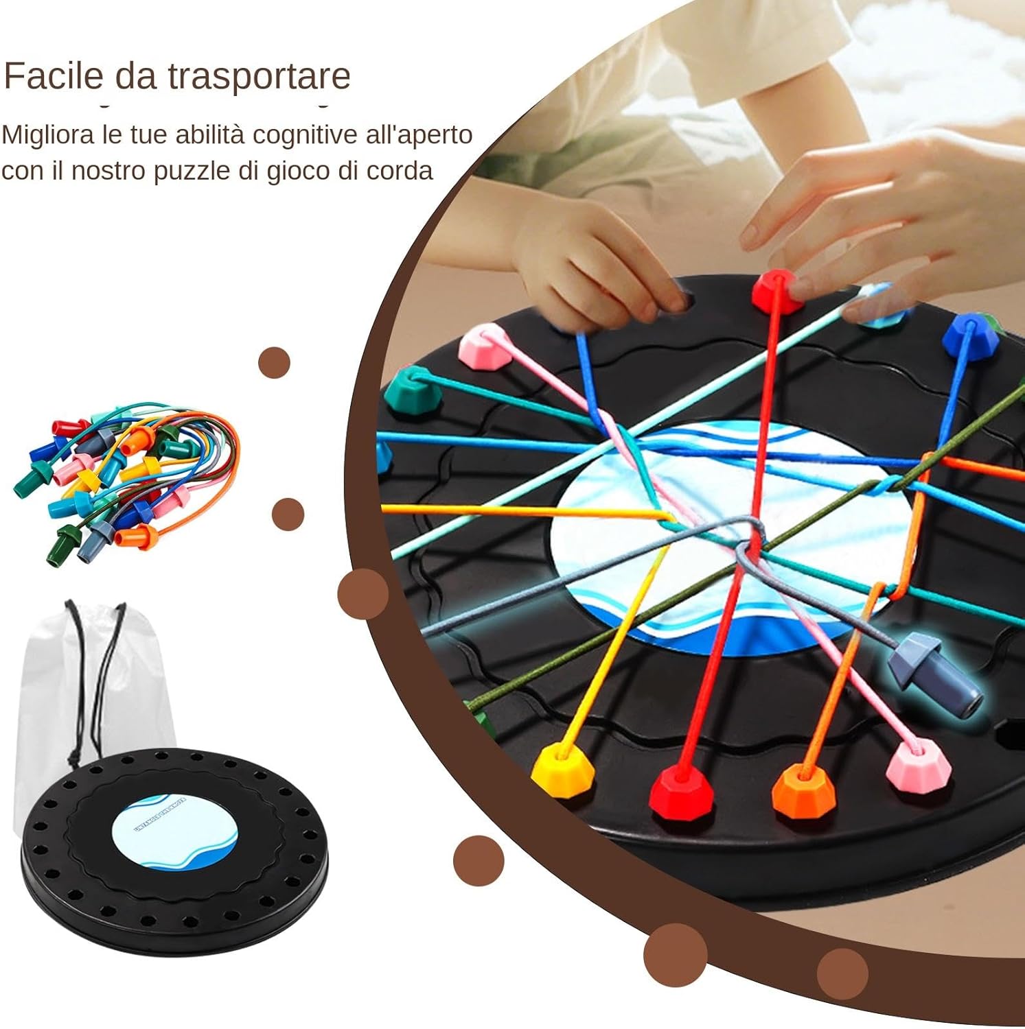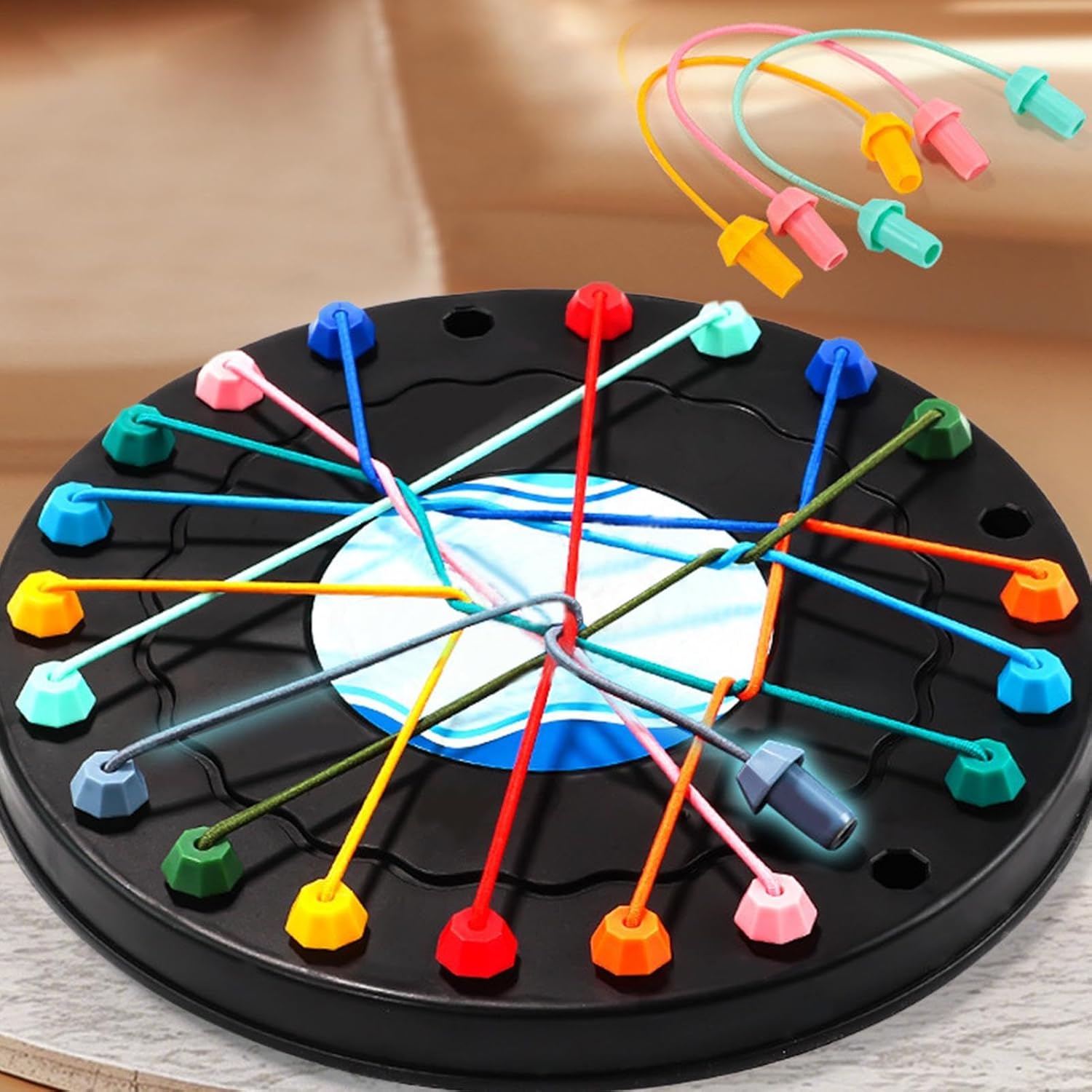 Challenging Rope Knot Puzzle: The Twisted Rope Puzzle a fun and engaging way to challenge your mind. With 10 ropes and 20 chess pieces, this game tests your problem-solving abilities as you untangle and sort the knots the game board Educational Brain Teaser: Perfect for kids and adults alike, this puzzle promotes critical thinking, hand-eye coordination, and concentration. It’s an educational game that makes learning fun, ideal for birthday parties, Easter activities, or group Interactive Sorting & Untangling Fun: The game includes 10 ropes and 20 chess pieces, offering endless untangling challenges. It’s a great activity to improve teamwork, enhance problem-solving skills, and encourage among players Portable & Easy to Store: The game board measures 7.87x7.87 inches, making it compact and easy to store. The included storage bag helps keep all the components organized, making it convenient to take along for trips or gatherings Complete Puzzle Set with Accessories: This puzzle set includes everything you need for hours of interactive fun: a game board, ropes, chess pieces, stickers, and a storage bag. Packed in a colorful English color box, it’s an excellent gift for any occasion