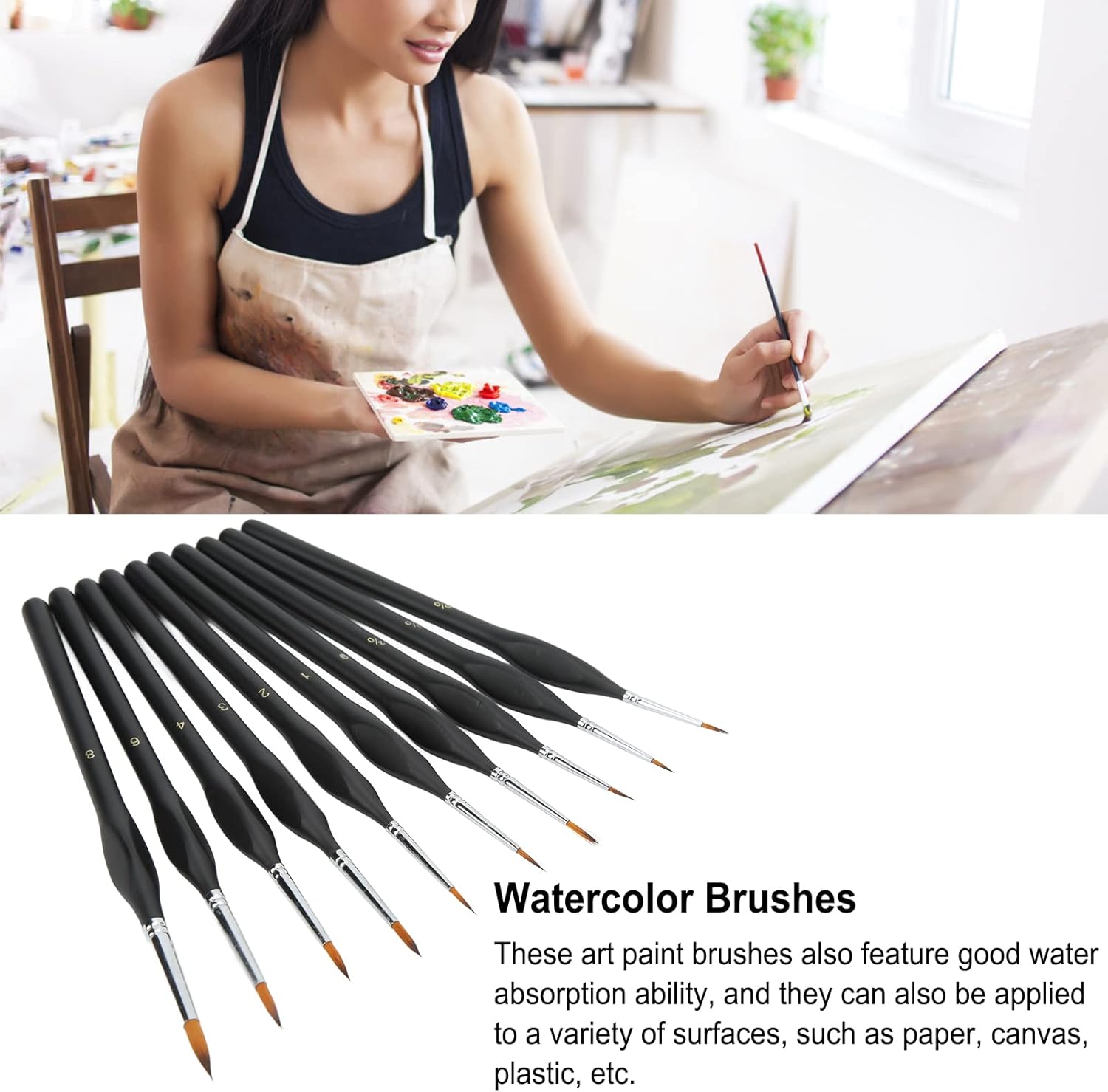 Forte compatibilità: questi pennelli sono adatti a diversi mezzi di pittura come acquerello, guazzo, acrilico, Windsor e soprattutto mezzi di pittura ad acqua. Manico ergonomico: questi pennelli per dettagli sono dotati di manici ergonomici appositamente progettati per gli artisti, che garantiscono una presa comoda. Buona capacità di assorbimento: questi pennelli artistici presentano anche una buona capacità di assorbimento 'acqua e possono anche essere applicati su una varietà di superfici, come carta, tela, plastica, ecc. 10 pezzi: riceverai 10 pezzi di pennelli trattenuti di diverse dimensioni, per soddisfare le tue diverse esigenze di pittura e disegno. Regalos ideale: questi pennelli per acquerello dal design ergonomico sono il Regalos ideale per principianti, professionisti, artisti, studenti.