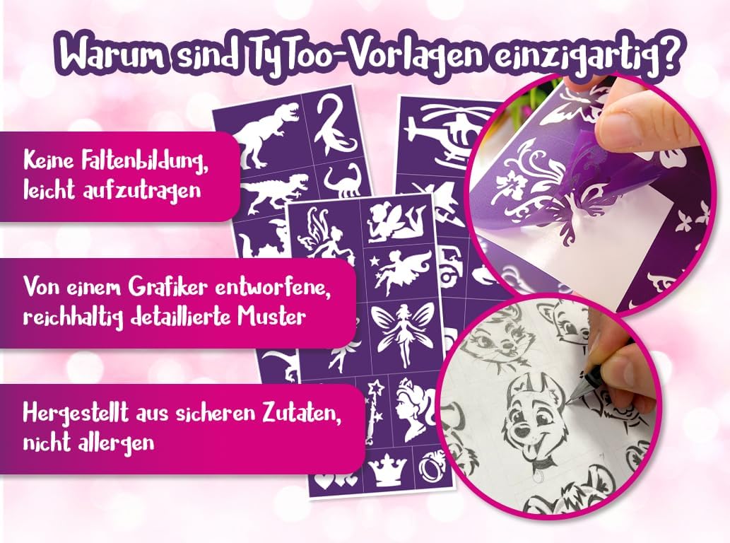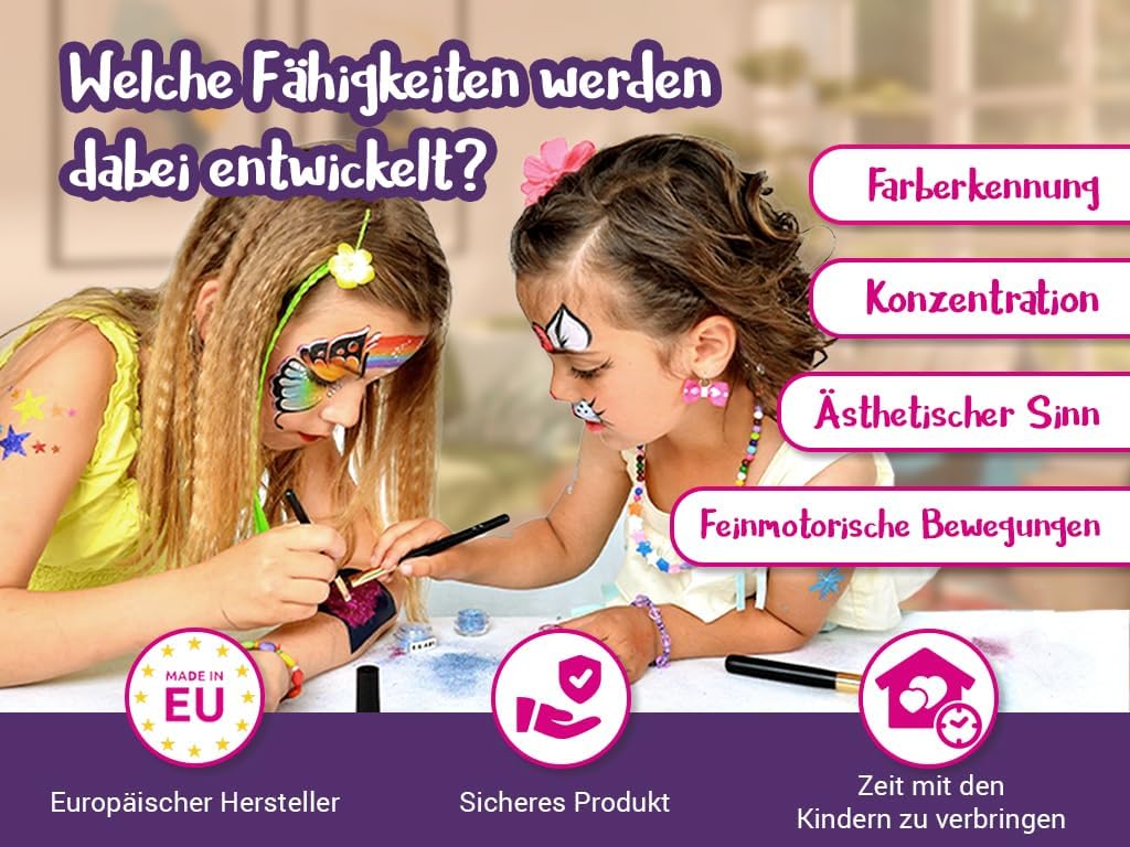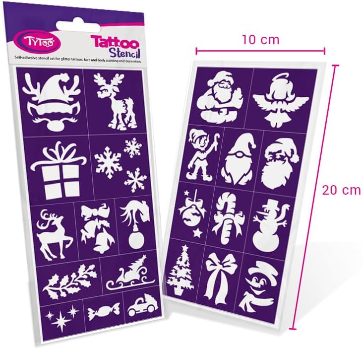 Design unico: creato esclusivamente dai nostri designer, non troverai questi motivi da nessun'altra parte! Multiuso: il materiale resistente assicura che ogni stencil possa essere utilizzato più volte. Delicato sulla pelle: sicuro per la pelle sensibile dei bambini, comodo da indossare. Ideale per i principianti: facile da applicare, anche senza alcuna conoscenza preliminare. Design a doppio strato: aderisce perfettamente alla pelle o alla superficie, non scivola. Perfetta per feste ed eventi: un tocco di classe per compleanni, eventi scolastici o feste estive.