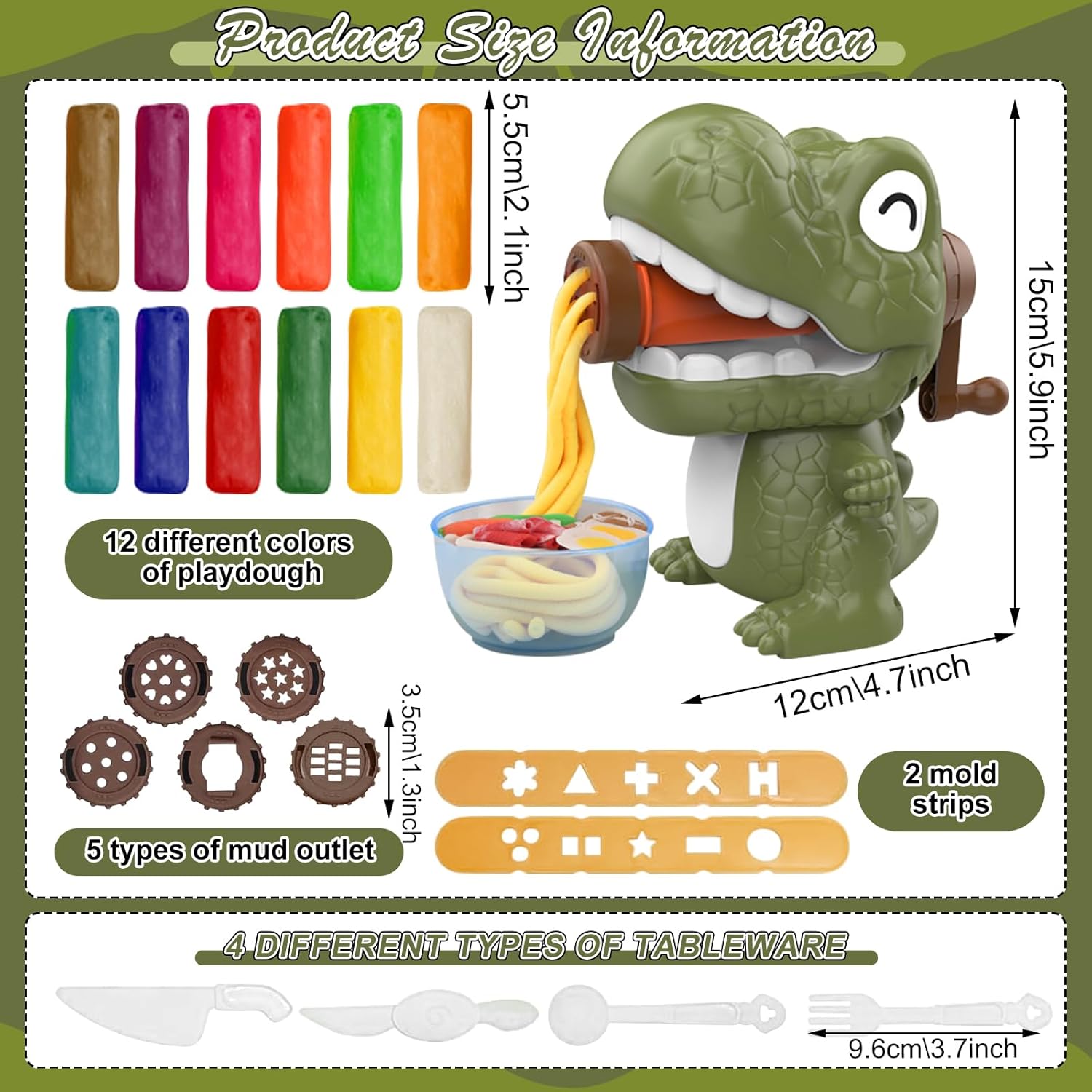 Accessori per plastilina Set di strumenti per plastilina: set di giocattoli da modellare con 47 pezzi Accessori per plastilina Il set è composto da 12 tipi di plastilina (in colori casuali), una macchina per la pasta e 35 strumenti per modellare, inclusi accessori per plastilina come uno strumento per modellare e un'impronta di uovo di dinosauro, sufficiente per consentire ai bambini di fare lavoretti. È molto facile da modellare ed è particolarmente adatto ai bambini dai 3 anni in su. MATERIALE DI ALTA QUALITÀ: Ogni stampo per impastare è realizzato in ABS, leggero e resistente, con bordi lisci e senza sbavature, riutilizzabile. L'argilla da modellare è molto morbida e flessibile, facile da modellare per i bambini e non richiede cottura. (Ricordati di conservare la nostra argilla in un sacchetto per il congelatore dopo l'uso, altrimenti si indurirà). Migliora le tue abilità artigianali: porta questa plastilina a casa come accessorio e mantieni i tuoi bambini occupati a giocare con la plastilina lontano dai dispositivi elettronici. imparare e scoprire attraverso il gioco. Incoraggiare l'apprendimento attraverso il gioco e sviluppare le capacità motorie. Migliora la coordinazione occhio-mano. Scenari multipli: il set di pasta da gioco può essere giocato all'interno e all'esterno, facile da trasportare e camminare, può essere utilizzato come giocattolo da tavolo, giocattolo tattile, sviluppo del linguaggio, strumento di apprendimento, perfetto per far giocare insieme genitori e figli, migliorare la relazione genitore-figlio divertendosi. Il miglior regalo: questo set di accessori per pasta da gioco per bambini è il regalo perfetto per i bambini che è divertente e consente loro di costruire tutto ciò che desiderano. Perfetto per giocare in ogni occasione, perfetto per compleanni, vacanze, Natale o qualsiasi altra occasione! Tuo figlio, figlia, nipote, nipote o nipote lo adoreranno sicuramente.