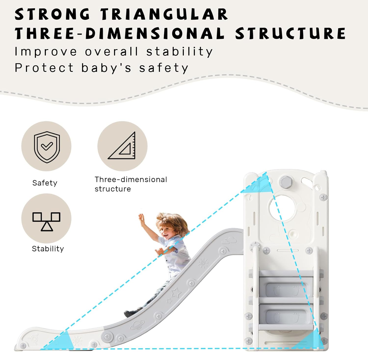 【Scivolo 4 in 1】 Il nostro scivolo per bambini è dotato di un arrampicatore con corrimano protettivo, uno scivolo, una recinzione di sicurezza, un contenitore e un canestro da basket. Può esercitare l'abilità sportiva del bambino e fornirgli un corpo sano e un'infanzia felice. 【Struttura sicura】Adotta una struttura triangolare stabile per garantire la stabilità dello scivolo pieghevole. Tre livelli di spazio per lo scivolo, accelerato, liscio e con ammortizzatori, consentono al bambino di atterrare in modo sicuro. Lasciate che il vostro bambino giochi felicemente e garantite che non ci siano incidenti. 【MATERIALE SANO】Lo scivolo pieghevole per bambini è realizzato in polietilene ad alta densità di alta qualità e durevole, il materiale ha spessore, superficie liscia senza bave, sicura e non facile da deformare, lunga durata. 【DESIGN DI QUALITÀ】 Scaletta di arrampicata con corrimano e un cesto da basket che può lanciare palloni da basket, mentre esercita la forza delle braccia del bambino, fornisce maggiore sicurezza per il bambino ed è più pratico per i bambini piccoli. Il design della scatola portaoggetti consente ai bambini di sviluppare buone abitudini di conservazione fin dall'infanzia e riduce l'onere di pulizia dei genitori. 【REGALO PERFETTO PER I BAMBINI】Lo scivolo pieghevole leggero per bambini permette al bambino di avere un'infanzia felice e sicura. Il design leggero consente di utilizzare lo scivolo sia all'interno che all'esterno, facile e veloce da caricare, scaricare e piegare, consentendo a tutta la famiglia di partecipare all'infanzia felice del bambino.