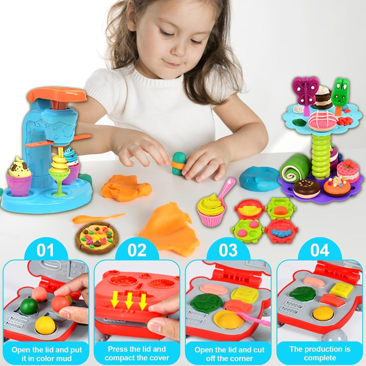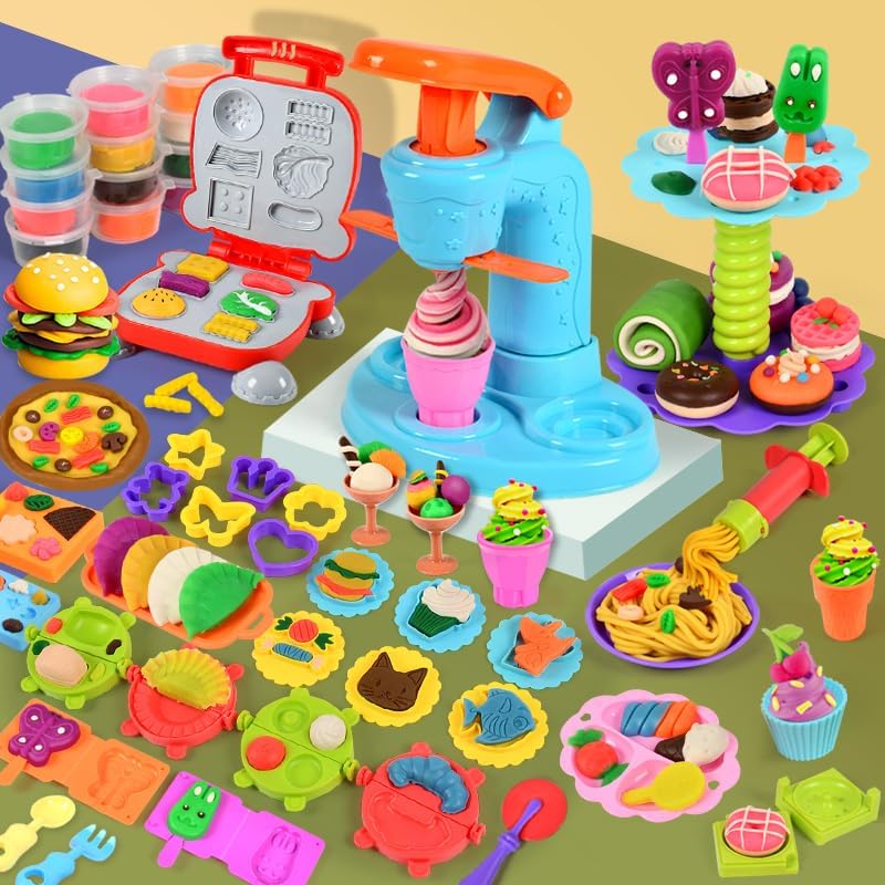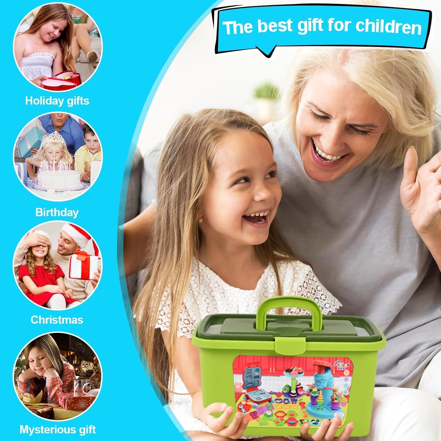 🍜【65 Accessori Giocattolo】- Il set da gioco per la macchina per la pasta da cucina contiene: 12 pezzi di pasta da gioco, grembiuli e maniche, una macchina per impastare, una gelatiera, giocattoli per hamburger e strumenti da gioco come un mattarello per bambini, un mattarello, un estrusore, un set di forbici e tagliapasta. Kit di modellazione completo, non è necessario acquistare accessori aggiuntivi 🧁【Forme per Impastare】- Gli strumenti per impastare l'argilla hanno colori brillanti, forme diverse e sono perfetti per le mani dei più piccoli. L'argilla può essere facilmente modellata in qualsiasi forma. Offri ai bambini strumenti per tagliare, modellare, stirare, modellare e arrotolare, creare infinite creazioni a casa o a scuola. ✅【Alta Qualità】 - Ogni accessorio Playdough è realizzato in plastica sicura e di alta qualità, molto robusta e colorata, non tossica. Il modello è realizzato con farina di grano commestibile, non grasso, non appiccicoso, riutilizzabile, sicuro al 100%. Dopo l'uso, conservare la pasta nella scatola prevista a tale scopo. Se temi che la pasta si secchi, aggiungi acqua per ammorbidirla. 🌮 【Migliora la creatività】 - Macchina per plastilina: versa semplicemente la plastilina e gira la maniglia per preparare i ramen noodles! I bambini hanno a disposizione strumenti per tagliare, modellare, stirare, modellare e arrotolare per realizzare innumerevoli creazioni a casa o a scuola e giocare con tutti i loro amici. 🧑🤝🧑🎁【Regalo perfetto】- Regalo giocattolo, squisita confezione regalo, sviluppa le abilità pratiche dei bambini, adatto per regali di compleanno, regali di Natale, Halloween, feste, festival, scuole. Perfetto per i bambini che amano giocare allo chef e diventare creativi con gli strumenti di argilla. Le varietà sono ricche e colorate e stimolano la fantasia e la creatività di innumerevoli bambini.