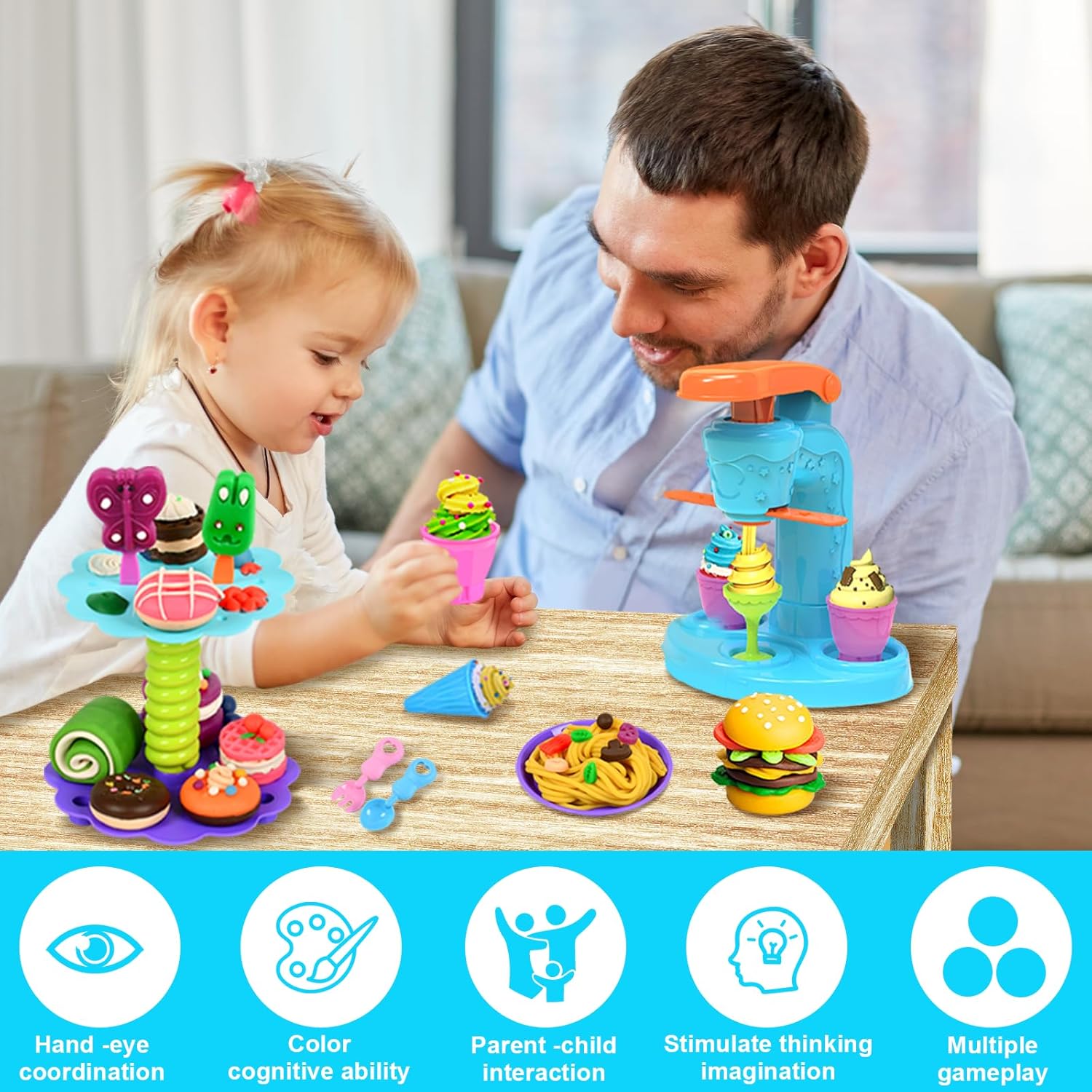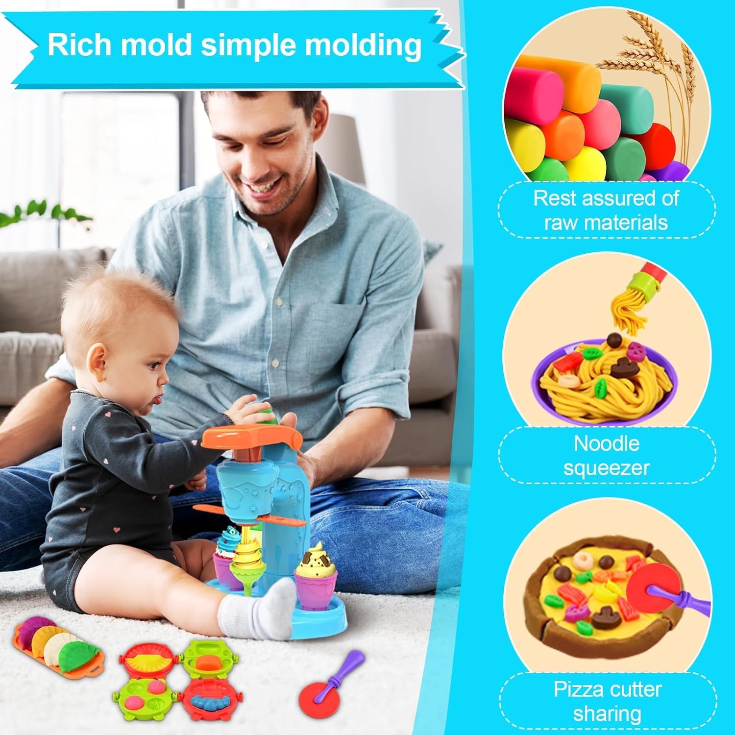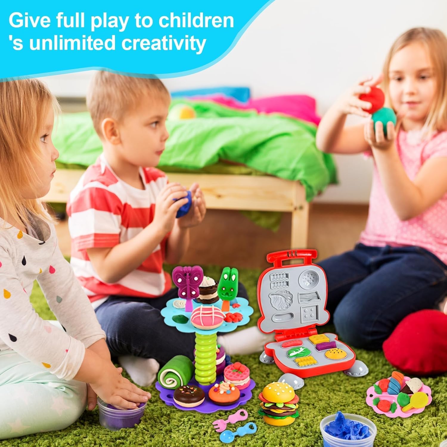 🍜【65 Accessori Giocattolo】- Il set da gioco per la macchina per la pasta da cucina contiene: 12 pezzi di pasta da gioco, grembiuli e maniche, una macchina per impastare, una gelatiera, giocattoli per hamburger e strumenti da gioco come un mattarello per bambini, un mattarello, un estrusore, un set di forbici e tagliapasta. Kit di modellazione completo, non è necessario acquistare accessori aggiuntivi 🧁【Forme per Impastare】- Gli strumenti per impastare l'argilla hanno colori brillanti, forme diverse e sono perfetti per le mani dei più piccoli. L'argilla può essere facilmente modellata in qualsiasi forma. Offri ai bambini strumenti per tagliare, modellare, stirare, modellare e arrotolare, creare infinite creazioni a casa o a scuola. ✅【Alta Qualità】 - Ogni accessorio Playdough è realizzato in plastica sicura e di alta qualità, molto robusta e colorata, non tossica. Il modello è realizzato con farina di grano commestibile, non grasso, non appiccicoso, riutilizzabile, sicuro al 100%. Dopo l'uso, conservare la pasta nella scatola prevista a tale scopo. Se temi che la pasta si secchi, aggiungi acqua per ammorbidirla. 🌮 【Migliora la creatività】 - Macchina per plastilina: versa semplicemente la plastilina e gira la maniglia per preparare i ramen noodles! I bambini hanno a disposizione strumenti per tagliare, modellare, stirare, modellare e arrotolare per realizzare innumerevoli creazioni a casa o a scuola e giocare con tutti i loro amici. 🧑🤝🧑🎁【Regalo perfetto】- Regalo giocattolo, squisita confezione regalo, sviluppa le abilità pratiche dei bambini, adatto per regali di compleanno, regali di Natale, Halloween, feste, festival, scuole. Perfetto per i bambini che amano giocare allo chef e diventare creativi con gli strumenti di argilla. Le varietà sono ricche e colorate e stimolano la fantasia e la creatività di innumerevoli bambini.