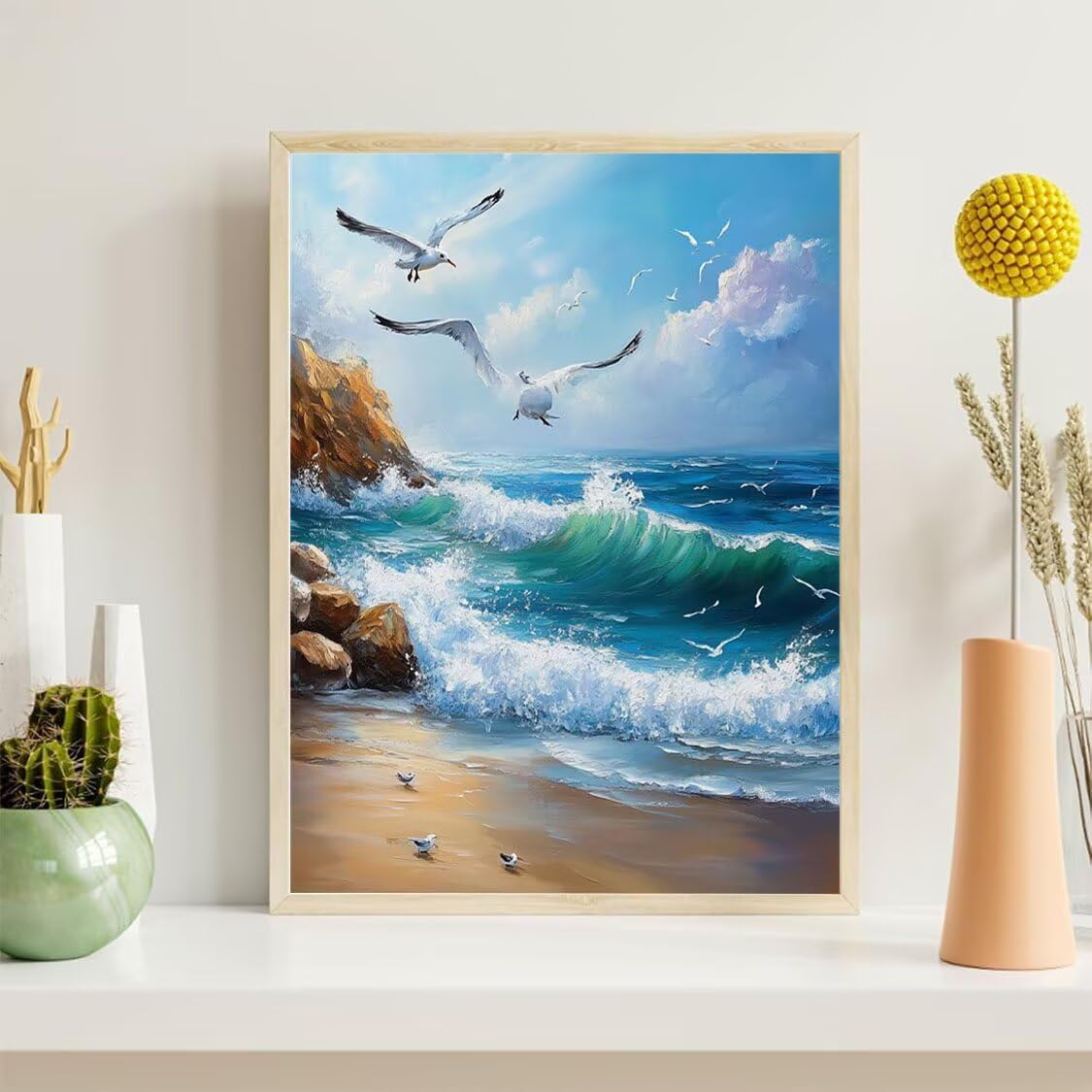 uccelli Diamond Painting Kit Completo, ondate Diamond Painting Adulti, 5D Pittura a Diamante Artigianale, Principianti Kit Pittura Diamante, Regalo Creativo, Decorativi per Casa 80x110cm f-443