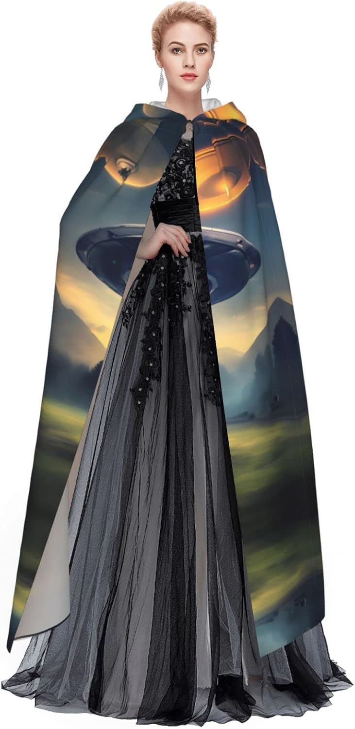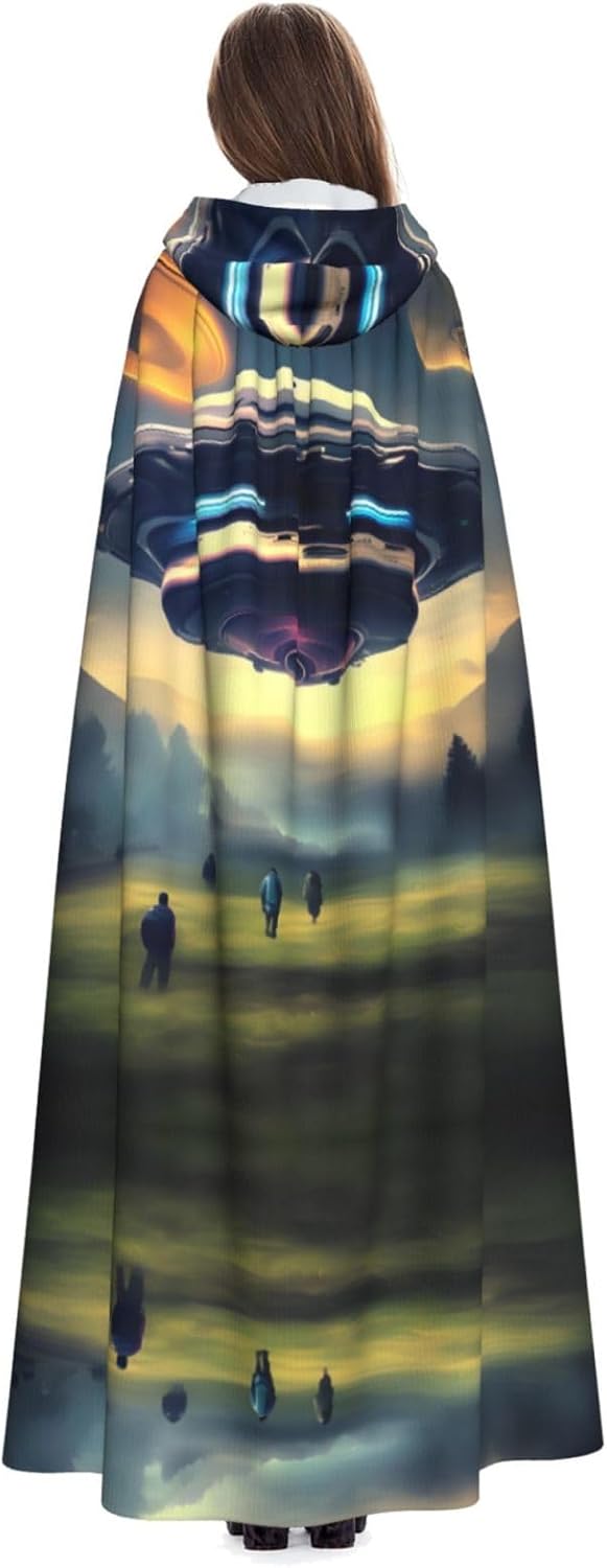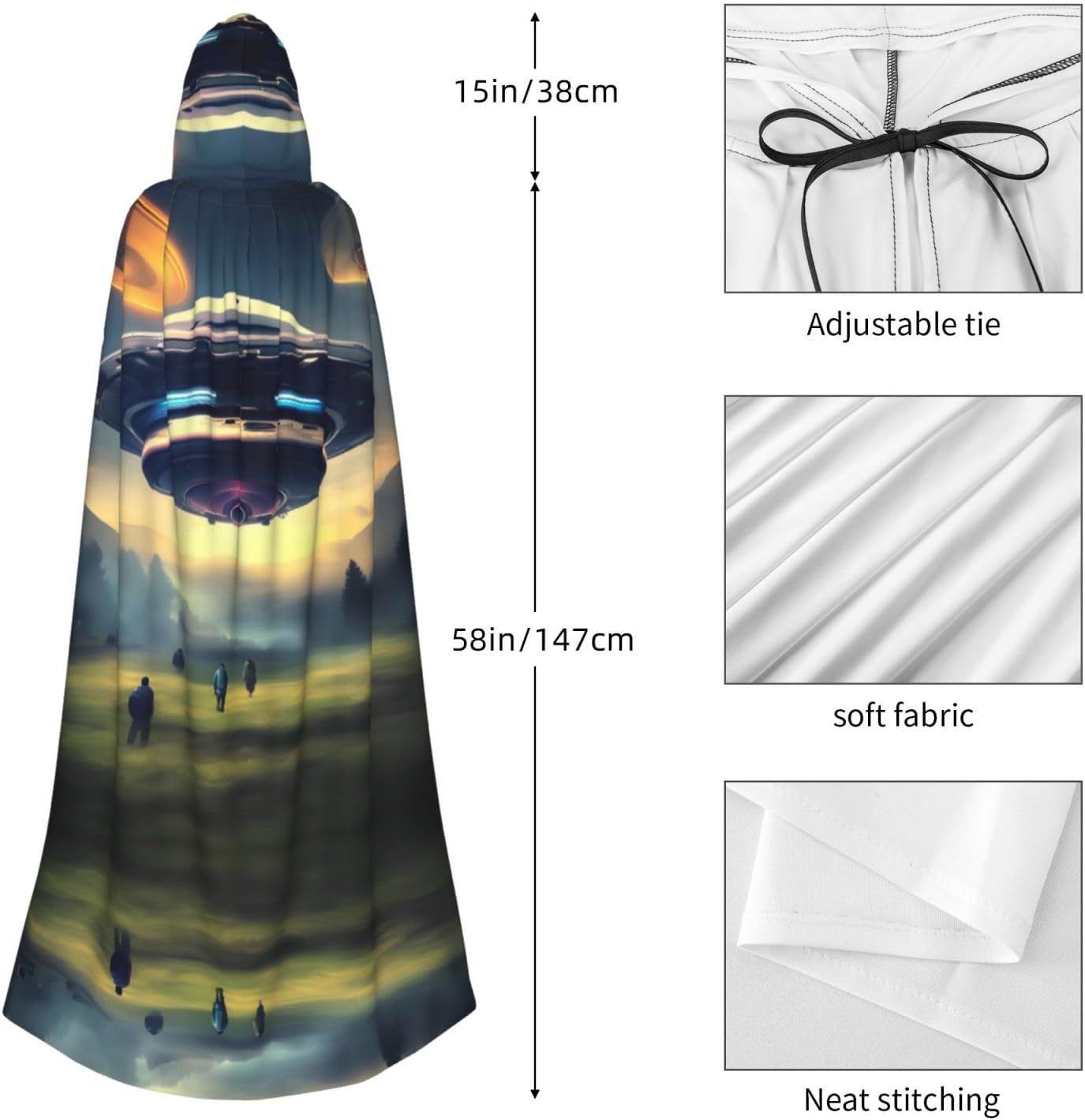 Ufo Landing Cloakfull con cappuccio stampa larghezza \r Descrizione del materiale: 100% fibra di poliestere (poliestere). \r Prestazioni del prodotto: il mantello con cappuccio oversize è realizzato in tessuto lungo, resistente e non pruriginoso, senza cravatta, senza cerniera, comodo mantello con cappuccio e tessuto lungo, resistente e non prurito) \r Scenari applicabili adatti per Halloween, costumi cosplay, costumi da palco, feste in maschera, feste a tema, balli, convegni di fumetti, ecc. Può essere utilizzato per feste, carnevale, Halloween, feste in costume, ecc. \r Istruzioni di lavaggio: lavabile in lavatrice a mano, facile da pulire e durevole