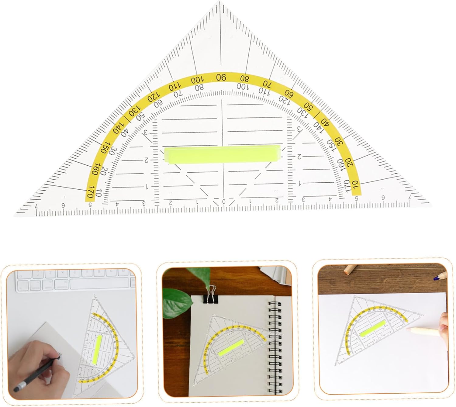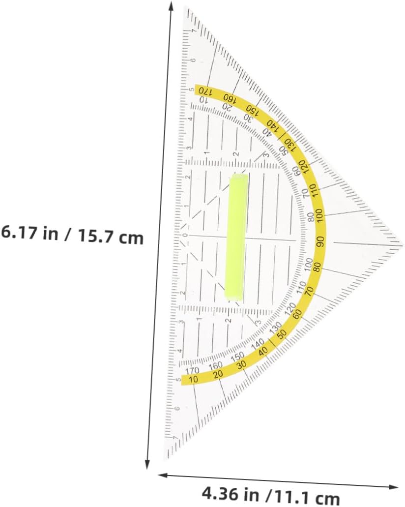 Utilizzo versatile: ogni righello da disegno in questo kit di geometria funge anche da righello in scala e goniometro, soddisfacendo tutte le esigenze del set di righelli geometrici per il disegno scolastico o in ufficio e le misurazioni degli angoli, forniture per il disegno, scala ingegneristica Innovazione a doppio uso: passa senza problemi dal righello triangolare al goniometro per la scuola con il set di righelli geometrici, soddisfacendo le diverse esigenze di classe, progettazione o architettura, righello per disegno, righello angolare per disegno Impugnatura ergonomica: il righello triangolare in plastica è dotato di un'impugnatura multifunzionale che consente movimenti e stabilità senza sforzo, supportando le attività in classe, l'ingegneria e le attività di misurazione accurate, goniometro per la scuola, forniture per misurazioni in ufficio Design portatile: il righello triangolare trasparente è leggero e facile da trasportare, il che lo rende ideale per studenti, architetti e ingegneri che necessitano di strumenti di disegno per lavori di geometria, kit di geometria, righello scolastico Struttura robusta: il righello con manico è realizzato con materiali di alta qualità, garantendo un'affidabilità a lungo termine che venga utilizzato come righello scolastico, strumento da disegno o materiale per ufficio, piccolo righello, righello in scala