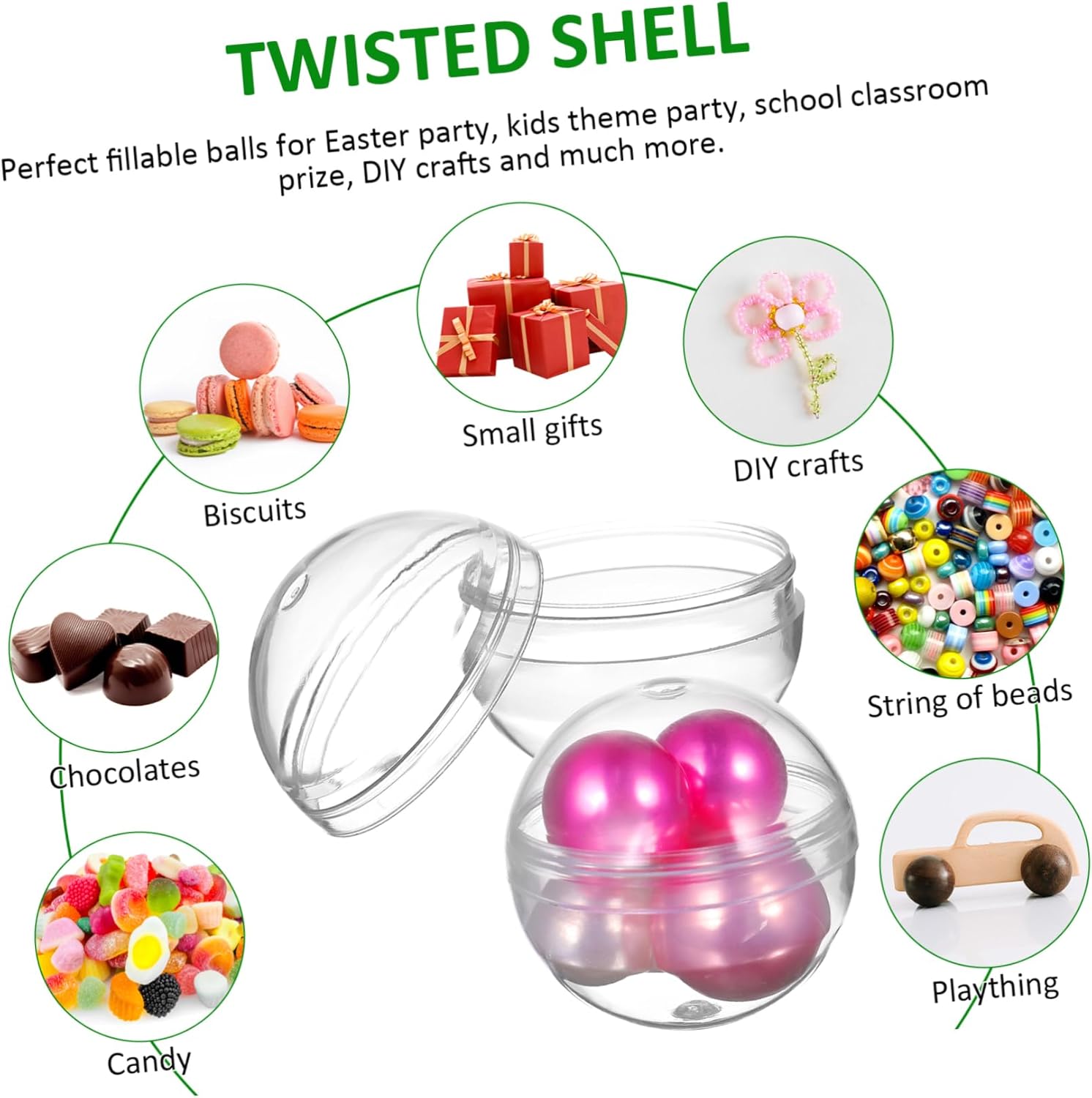 Gomma da masticare trasparente: non solo può essere utilizzata come scatola per caramelle, ma può anche essere utilizzata per creare confezioni creative di bomboniere, palline per distributori automatici Palline di plastica trasparenti per macchinetta delle gomme da masticare: hanno un aspetto grazioso, un design semplice e sono pratiche da usare, ti regalano un'esperienza di gioco piacevole. Palline rotonde riempibili da un pollice: anche un'eccellente decorazione per feste, banchetti e matrimoni. puoi usarle per decorare la tua festa, palline di plastica per l'artigianato. Palla per distributore automatico: lavorazione eccellente, massima attenzione a ogni dettaglio per conferirgli un aspetto grazioso e accattivante, palla Palline di plastica trasparenti: una fantastica scelta per i vostri bambini e bambine per la festa dei bambini, il compleanno, natale e altri giorni speciali, palline riempibili per macchine a gancio