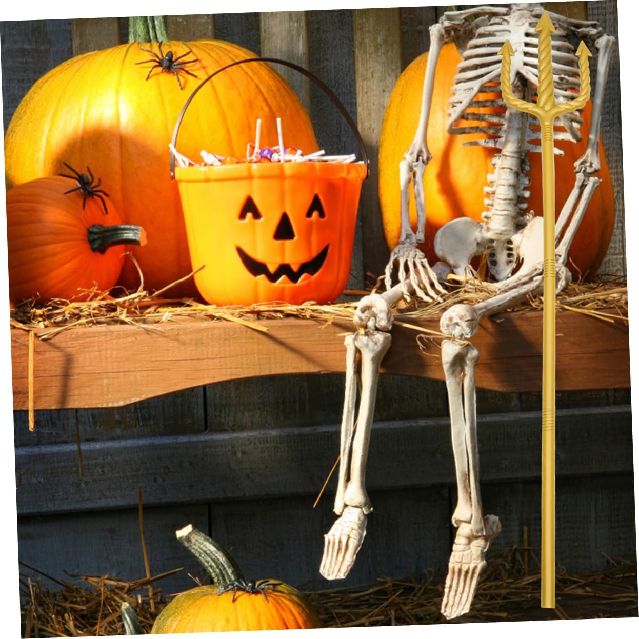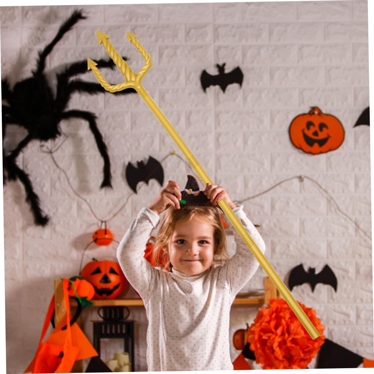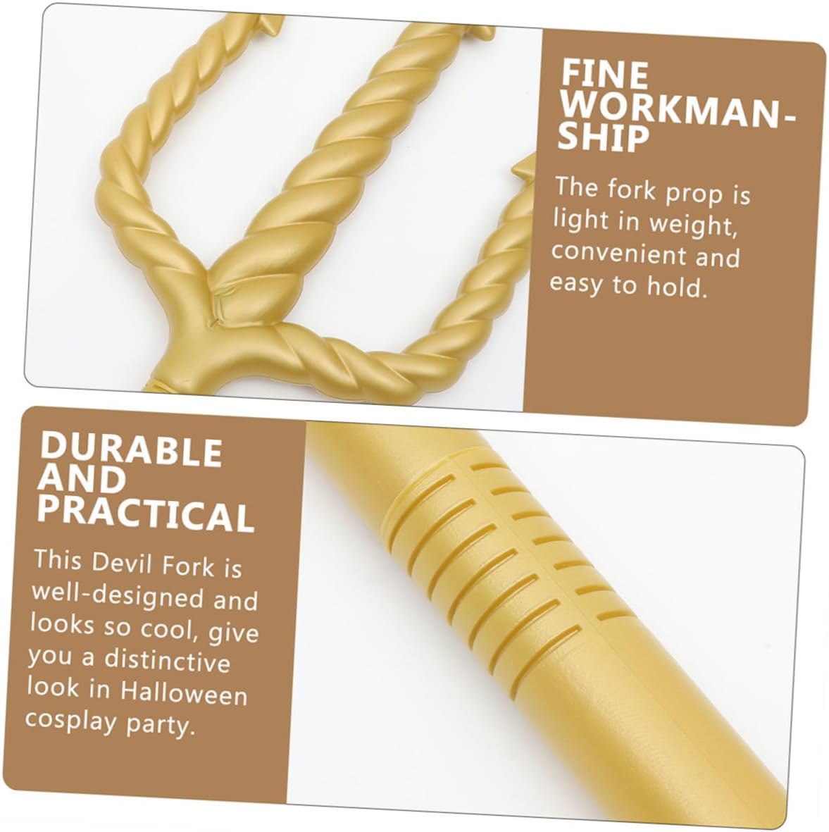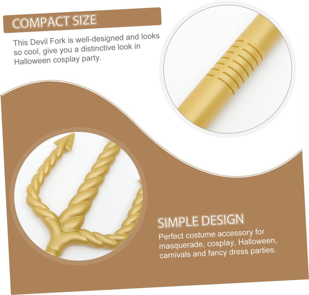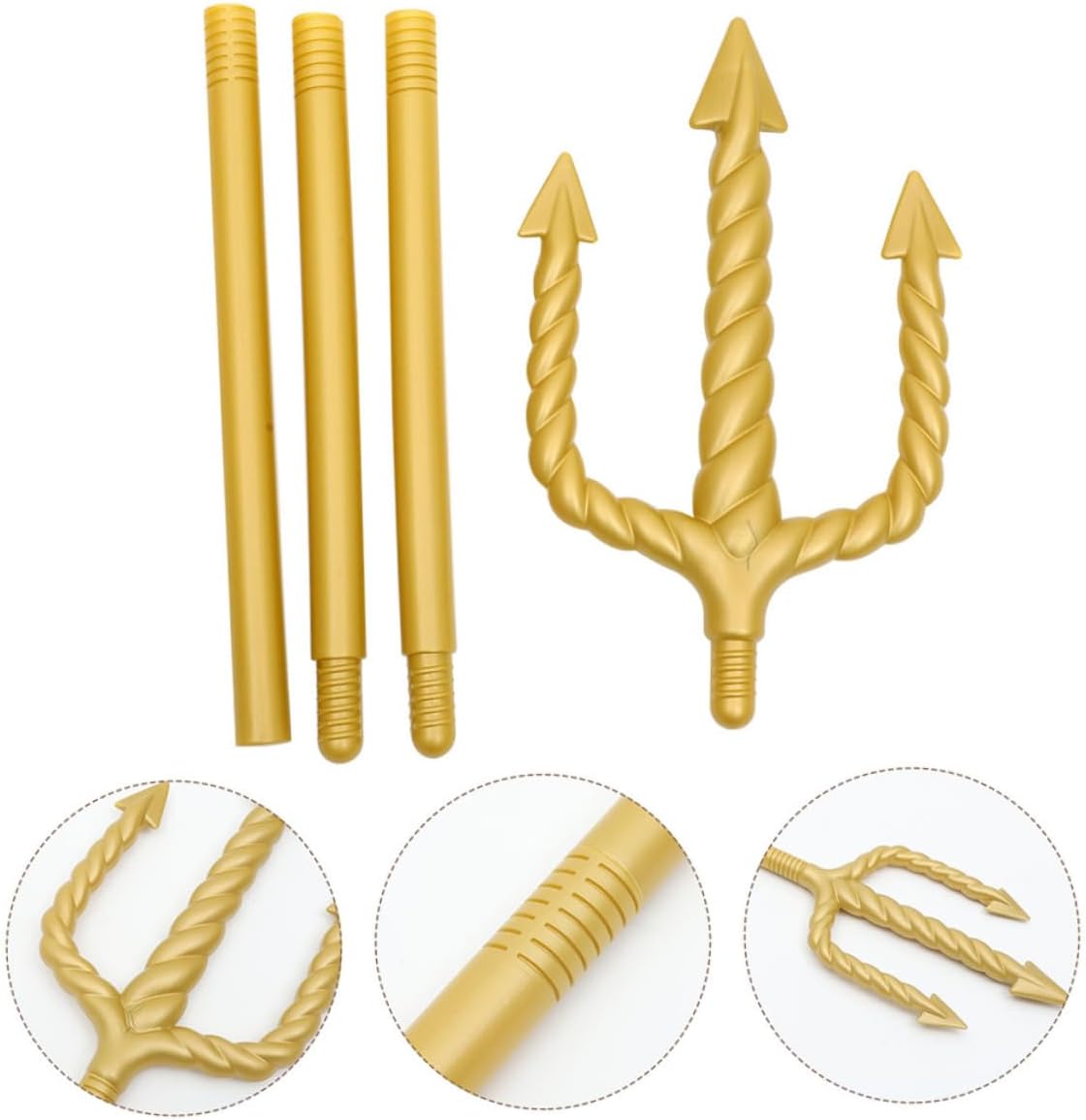 Finitura dorata: presenta una lussuosa finitura dorata, che lo rende un accessorio stimolante per qualsiasi costume di Poseidone o Poseidone Design intricato: con il suo design complesso, aggiungerà un tocco autentico ai tuoi eventi mitici o fantastici Suggerimenti sicuri: le punte del tridente sono arrotondate per motivi di sicurezza per garantire che sia adatto a tutte le età Facile da montare: il campo può essere facilmente assemblato con connessioni filettate Uso versatile: ideale per feste di Halloween, cosplay, feste in costume, spettacoli teatrali e altro ancora per creare rapidamente un look da regina o re gotico