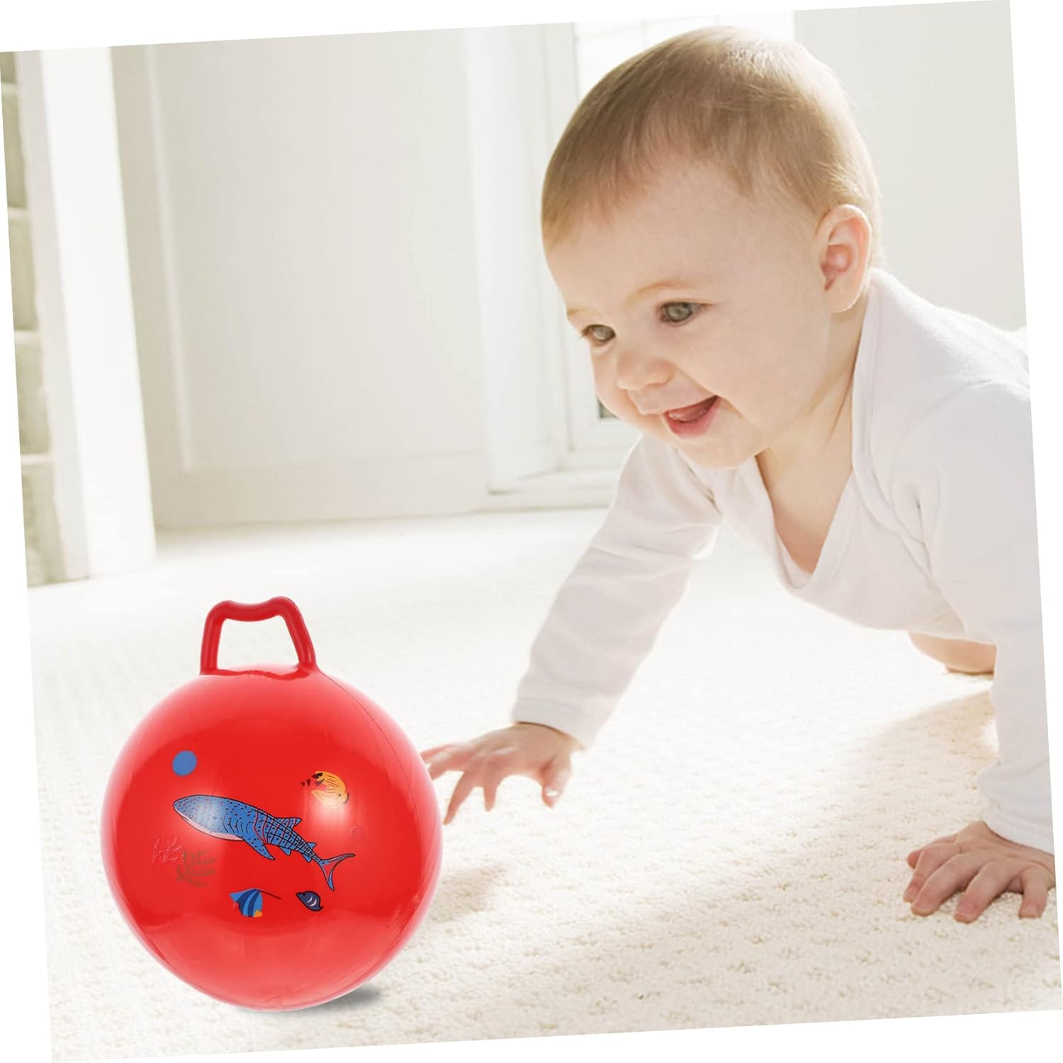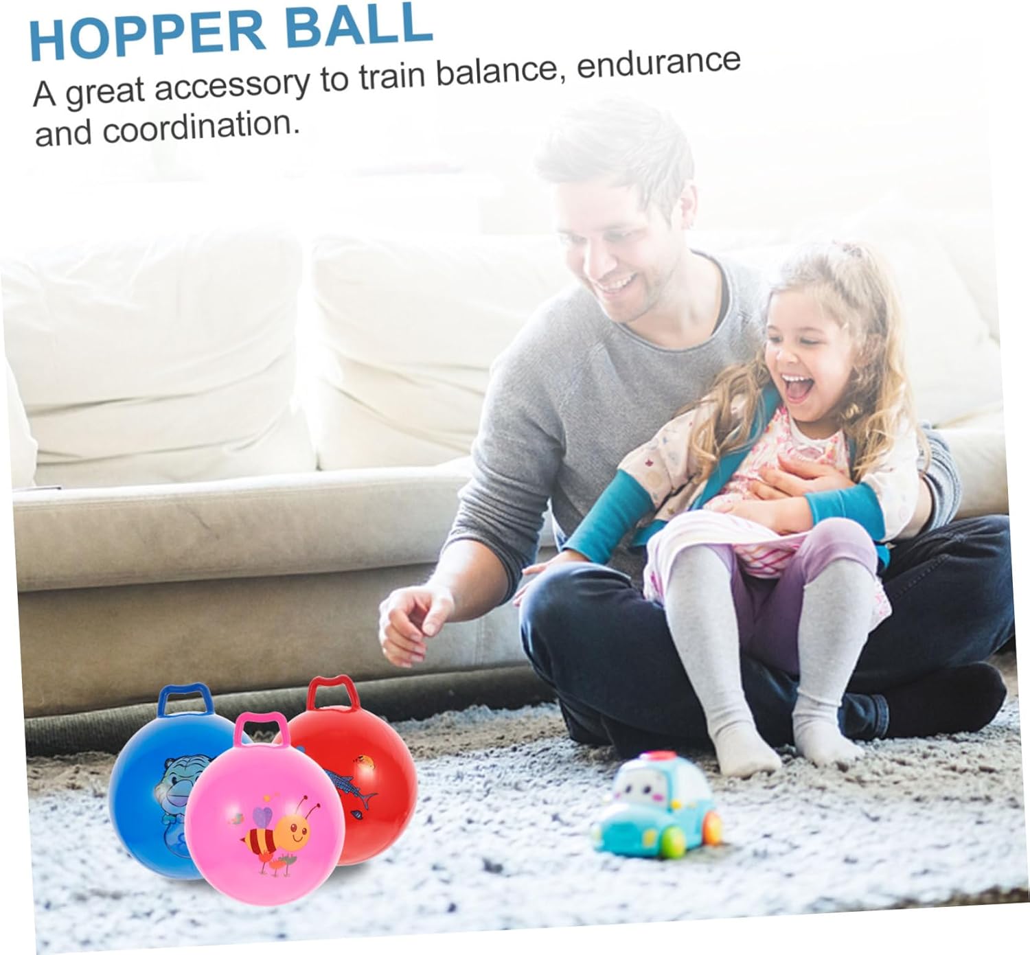 Aiuta ad allenare la coordinazione occhio-mano dei e l'interazione genitore-figlio Realizzato in materiale pvc, resistente e pratico da usare Palla giocattolo : un ottimo accessorio per allenare l'equilibrio, la resistenza e la coordinazione, palla che salta con maniglia Palla giocattolo rimbalzante: facile da gonfiare, per interni ed esterni, palla giocattolo Palla da salto con maniglia: la maniglia è facile da afferrare e impugnare, giocattolo educativo con palla