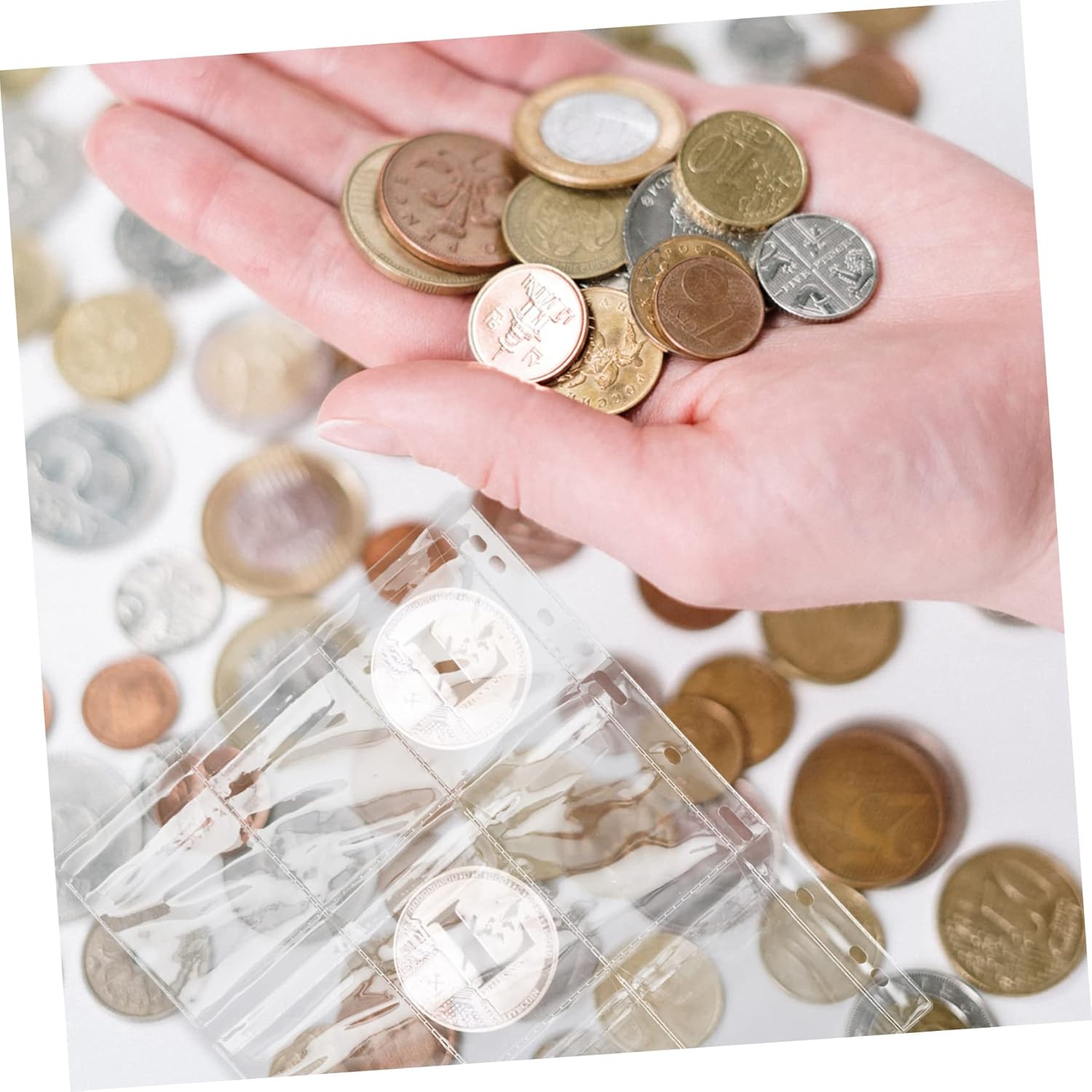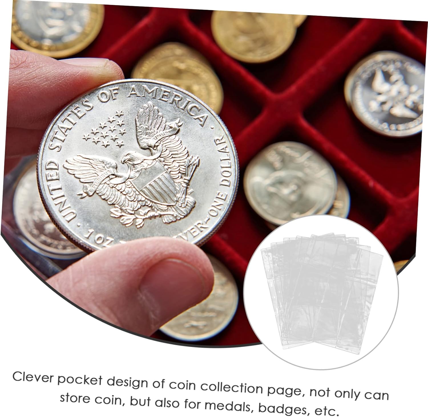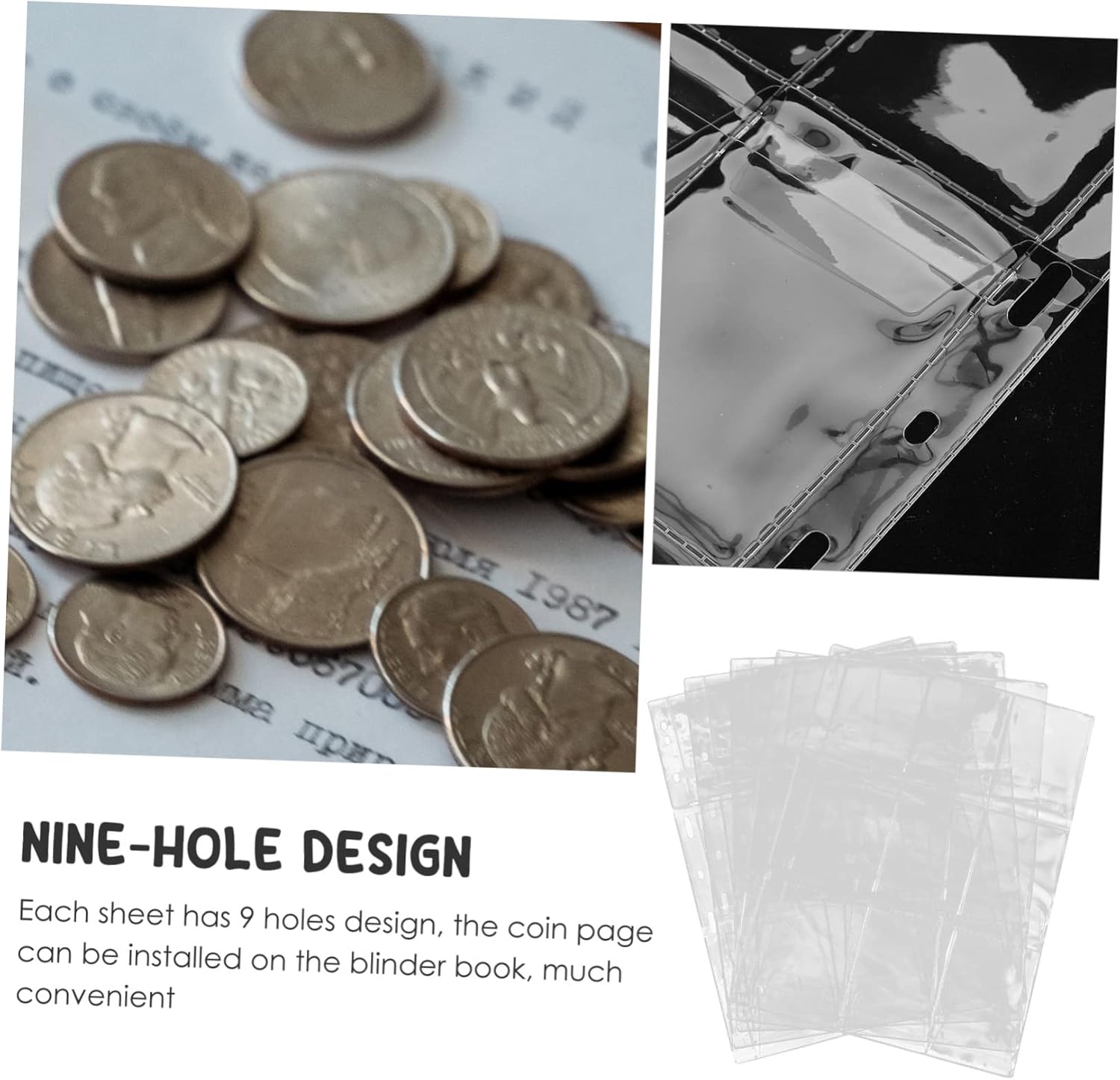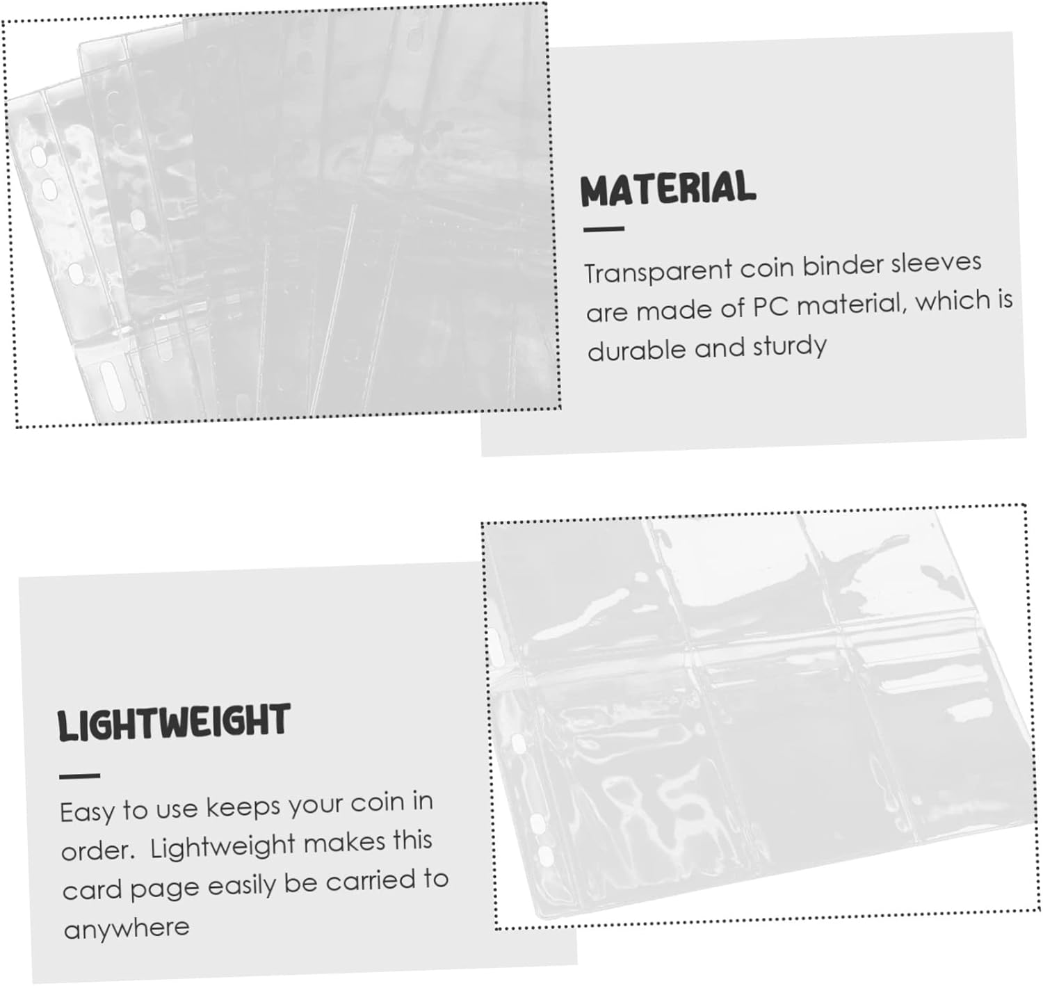 Pagine portamonete: le pagine di protezione delle monete sono realizzate in materiale PC e non si rompono facilmente, custodie in plastica per cartelle Album portamonete: la tasca separata per le carte impedisce alle monete di scontrarsi e graffiarsi, raccolta monete Album per collezione monete: il design trasparente fornisce completo per una facile visualizzazione, la cartella portamonete è riutilizzabile e cancellabile, pagine per collezionare monete Cartella portamonete: le pagine portamonete sono perfette per tenere le monete o altri oggetti da collezione al sicuro e organizzate per riporre accessori numismatici: le pagine portamonete altamente trasparenti, mostrano chiaramente la moneta, facilitano la visualizzazione e cambio, protezione della valuta in plastica
