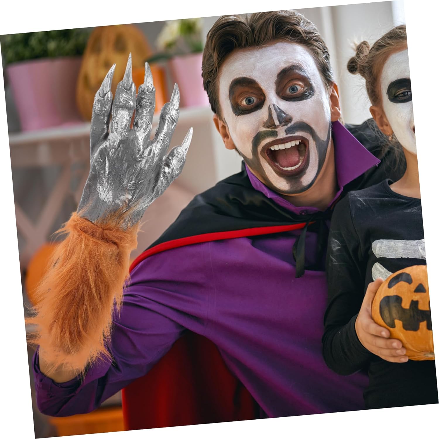 Guanti zombi realistici: gli esclusivi guanti insanguinati ti permettono di ritrarre in modo convincente un lupo mannaro o uno zombi, creando un'atmosfera davvero terrificante. Mani di lupo di Halloween, mani pelose Guanti horror realistici: il sangue unico consente una rappresentazione realistica di lupi mannari o zombi e migliora l'atmosfera spettrale. Guanti per costume di Halloween, artigli di lupo mannaro per uomo. Indispensabili per le feste: questi guanti sono adatti per feste in costume, eventi di Halloween e altro ancora. Aggiungono un elemento divertente e ti fanno distinguere dalla massa. Guanti costume zampa di gatto, guanti horror di Halloween insanguinati. Comodi e resistenti: questi guanti sono realizzati con materiali morbidi e confortevoli, sono facili da indossare, non scivolano via facilmente e sono progettati per durare. Accessori per lupi mannari, guanti decorativi di Halloween Design spaventoso: il design horror e sanguinoso di questi guanti esalta l'atmosfera di Halloween e li rende al centro dell'attenzione in ogni evento. guanti da costume da lupo, guanti da lupo spaventosi