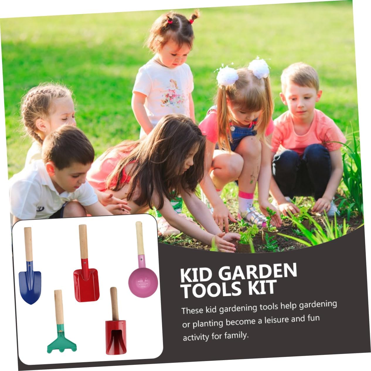 Attrezzi da giardinaggio per bambini: accompagna il tuo bambino a giocare con questo set di attrezzi da giardinaggio per bambini per migliorare il rapporto genitore-figlio. Attrezzi da giardinaggio per bambini con manico in legno: questi attrezzi da giardinaggio per bambini aiutano il giardinaggio o la piantagione a diventare un'attività ricreativa e divertente per la famiglia, pala da giardinaggio per bambini. Pala per attrezzi da giardino per bambini: superficie lucidata con cura, la superficie è liscia e non farà male al tuo bambino, sicura e affidabile, attrezzo da giardino per bambini con manico in legno Divertenti attrezzi da giardino per bambini: perfetti per le manine dei più piccoli, non troppo affilati, non troppo pesanti e senza bordi, kit di attrezzi da giardino per bambini Attrezzi da giardinaggio per bambini: con manico in legno, questi giocattoli da giardinaggio per bambini possono alleviare l'affaticamento delle mani, rastrello da giardinaggio per bambini