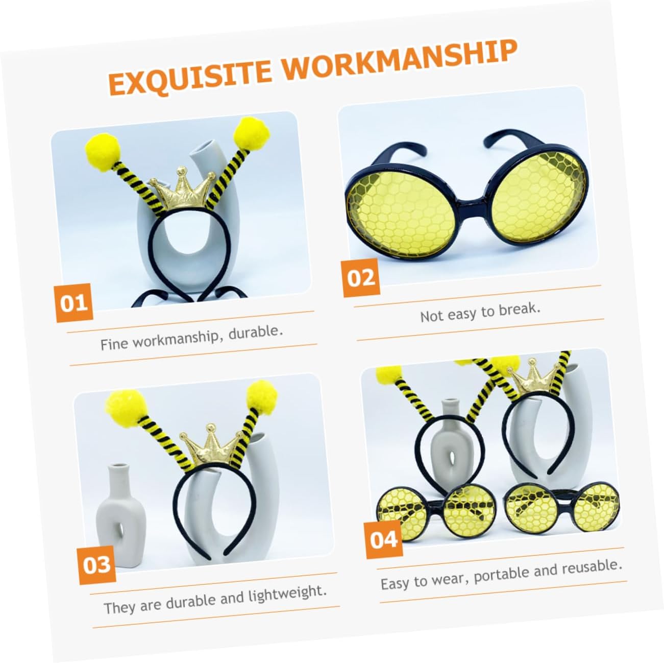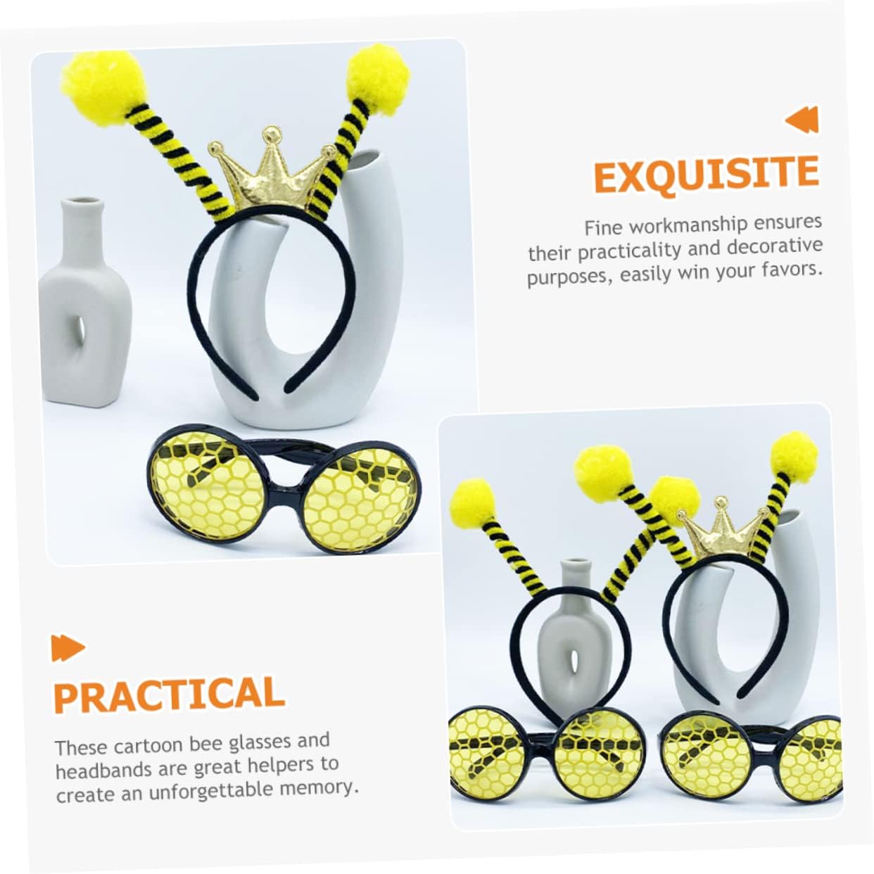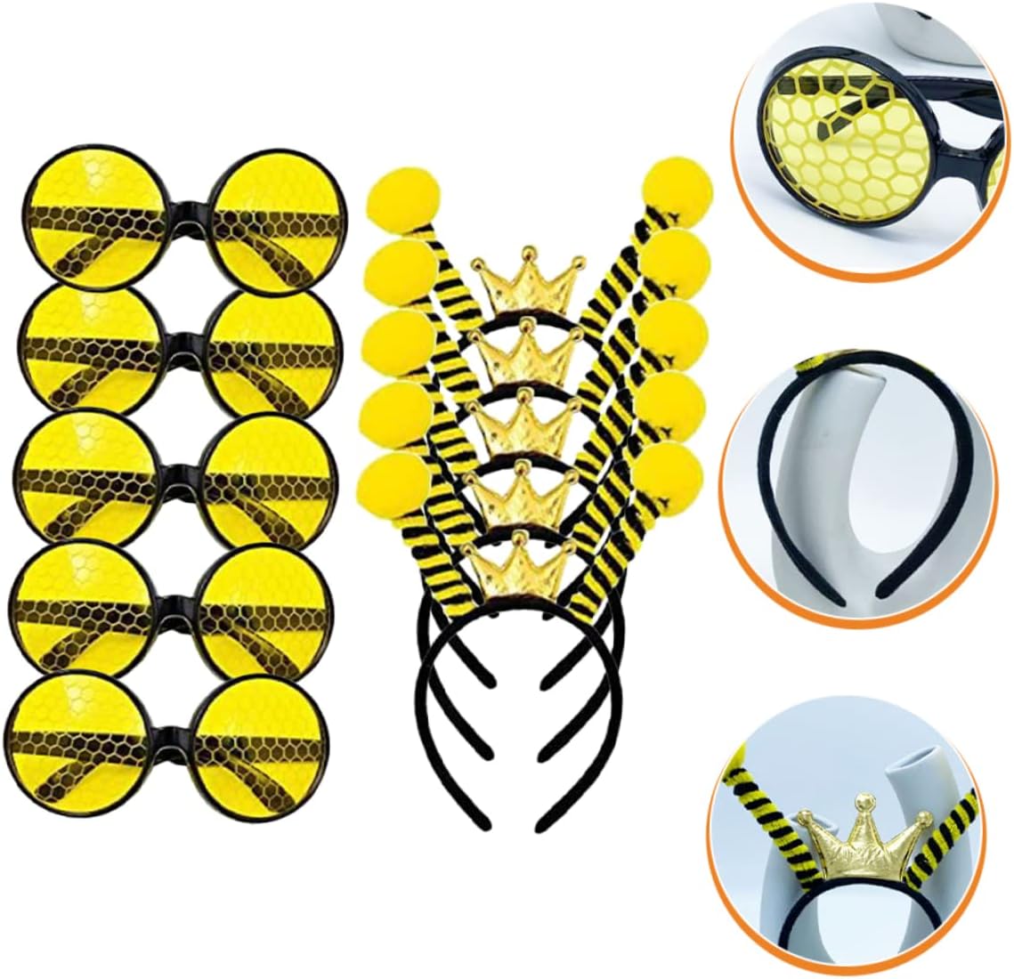 Fasce per capelli con api: questi occhiali e fasce per capelli sono adatti per feste di Halloween, feste a tema api, compleanni, carnevali, balli in maschera, feste in costume, cosplay ecc., fascia per api Fascia per capelli ape cartone animato: fornisce abbastanza da usare, sostituire o condividere con i tuoi amici e familiari, fascia per feste ape Accessori per capelli Halloween: queste fasce e occhiali per api possono aiutarti a vestirti, attirare facilmente l'attenzione e portare più divertimento, fascia per capelli ape cartone animato Fascia per capelli Halloween: usa questi occhiali e fasce come oggetti di scena per cosplay, contribuiscono a creare un'atmosfera di festa più allegra, fascia per api per bambini, accessori per capelli ape: sono leggeri e facili da indossare, portatili e riutilizzabili, costumi di api di Halloween per bambini