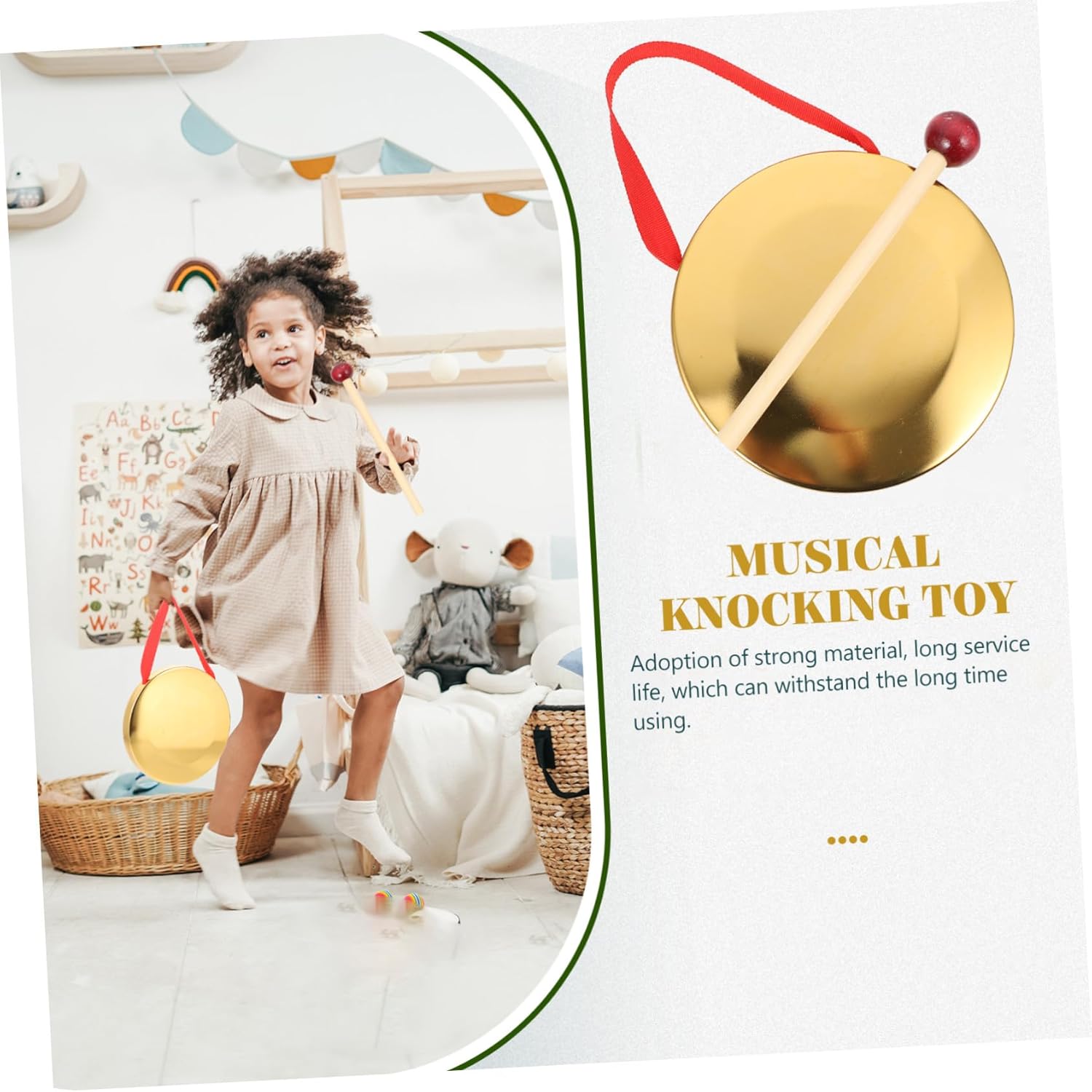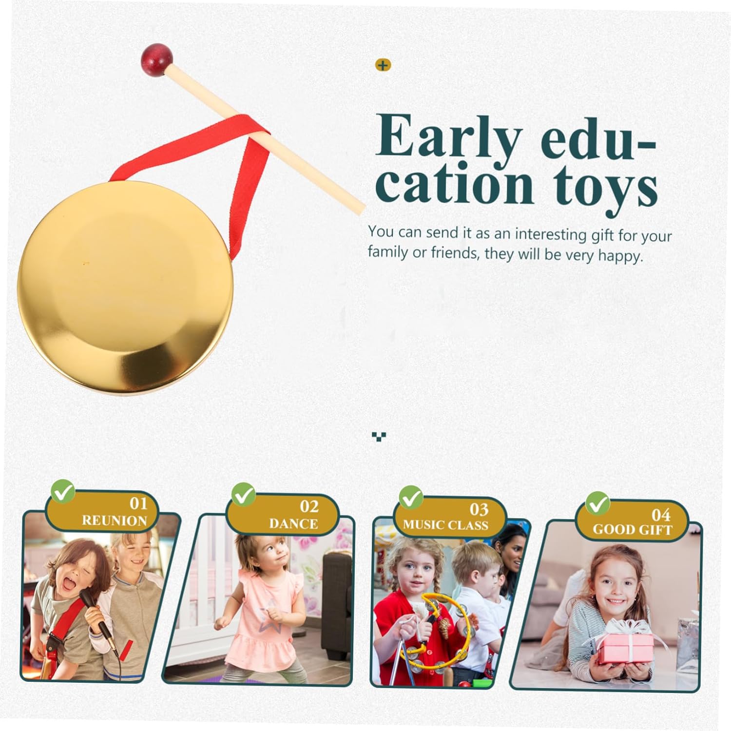 Gong portatile: il suono può essere diffuso lontano, più forte è il colpo, più lontano si diffonde il suono, strumento musicale cinese Mini gong: con le caratteristiche di uno strumento musicale cinese nitido, rumoroso, semplice e suonabile, e facile da trasportare Gong in rame per strumento a percussione: con una corda sospesa, può essere appeso per l'uso e lo stoccaggio senza occupare troppo spazio, gong Gong: lucidato manualmente e liscio, la superficie ha linee chiare e una buona consistenza, gong tenuto in mano Giocattoli a percussione cinesi: strumento musicale creativo per sviluppare il senso musicale dei e renderli più divertenti, hand gong