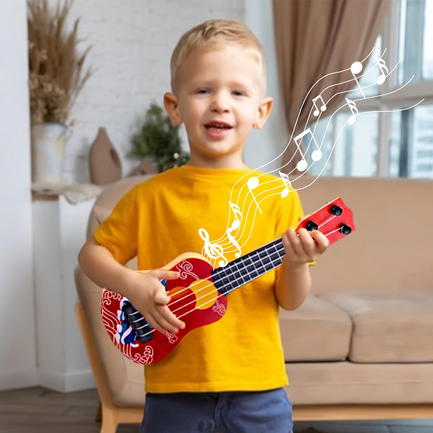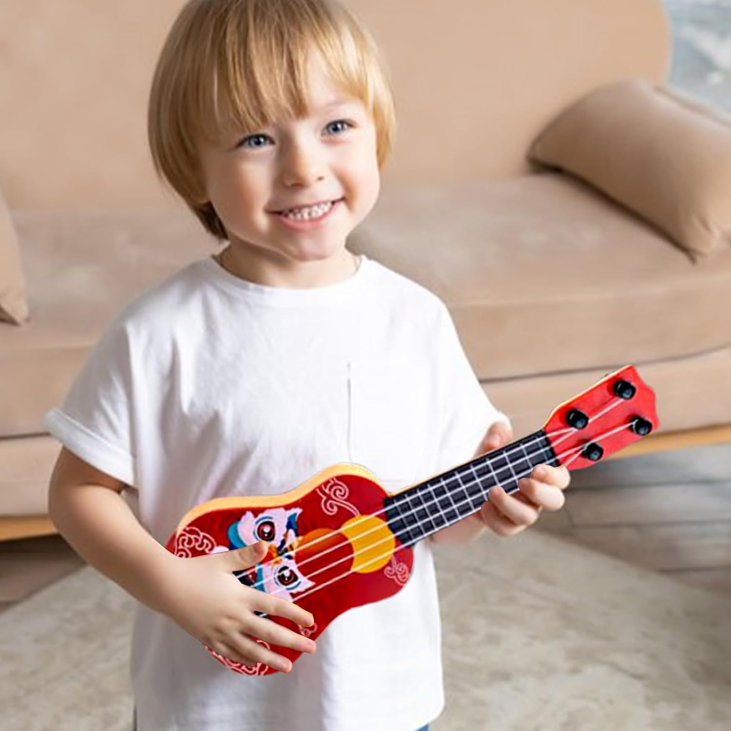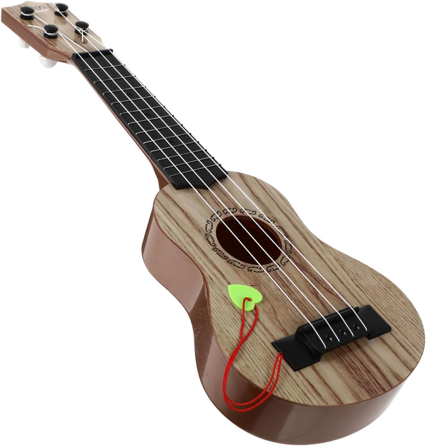 Vero look strumentale: con le sue realistiche venature del legno, questo ukulele per bambini imita la creatività dei bambini e li ispira a esplorare il mondo della musica e dell'arte in modo emozionante. Si adatta alle mani dei bambini: questo mini ukulele progettato per bambini è dotato di corde in nylon soft touch che proteggono le dita sensibili. Le sue dimensioni compatte e il design ergonomico facilitano la maneggevolezza dei bambini. Materiali resistenti: questo ukulele per bambini realizzato con materiali ecocompatibili, offre un divertimento affidabile con una struttura robusta che può resistere all'uso quotidiano. Le sue superfici resistenti all'abrasione garantiscono una lunga durata. Arricchimento dell'educazione musicale: risveglia la passione dei bambini per la musica con teoria di base e repertorio semplice, migliorando al contempo la coordinazione, la costruzione del ritmo e della sensibilità del suono. Regalo pratico: il nostro ukulele per bambini viene fornito in una bella confezione regalo che facilita l'interazione genitore-figlio e crea calde esperienze musicali in famiglia. Perfetto per festeggiare compleanni e festività.