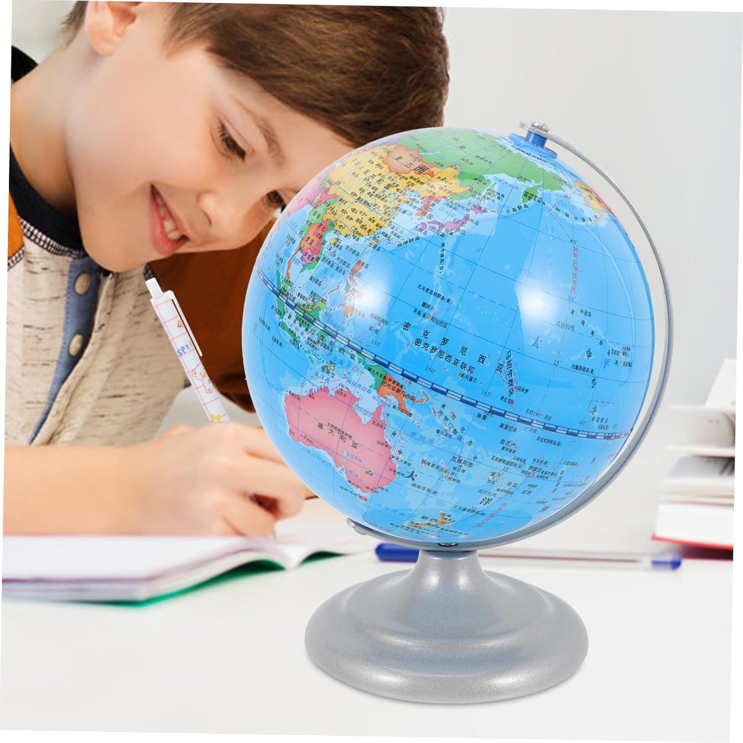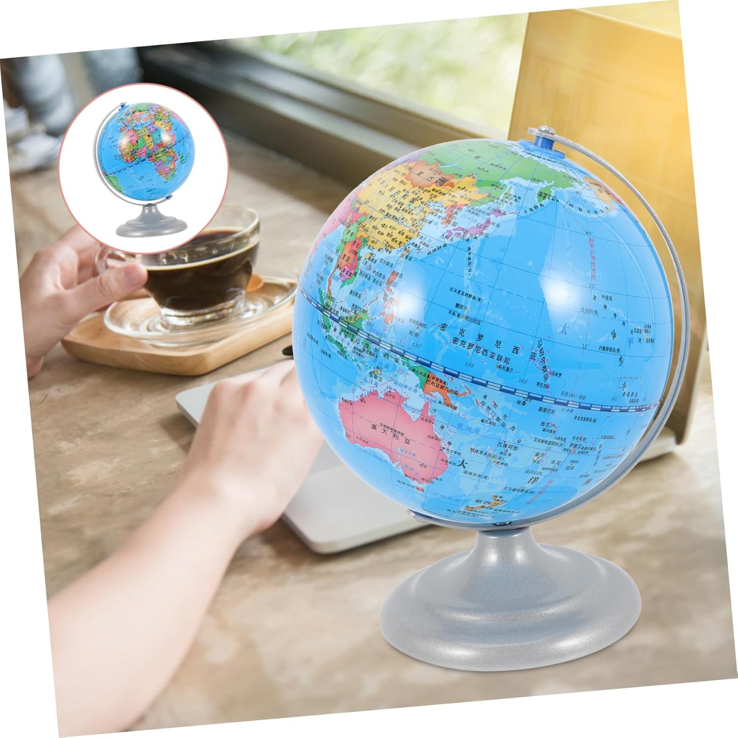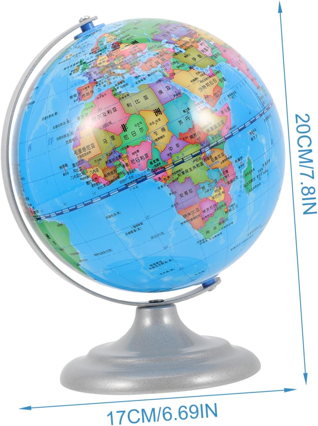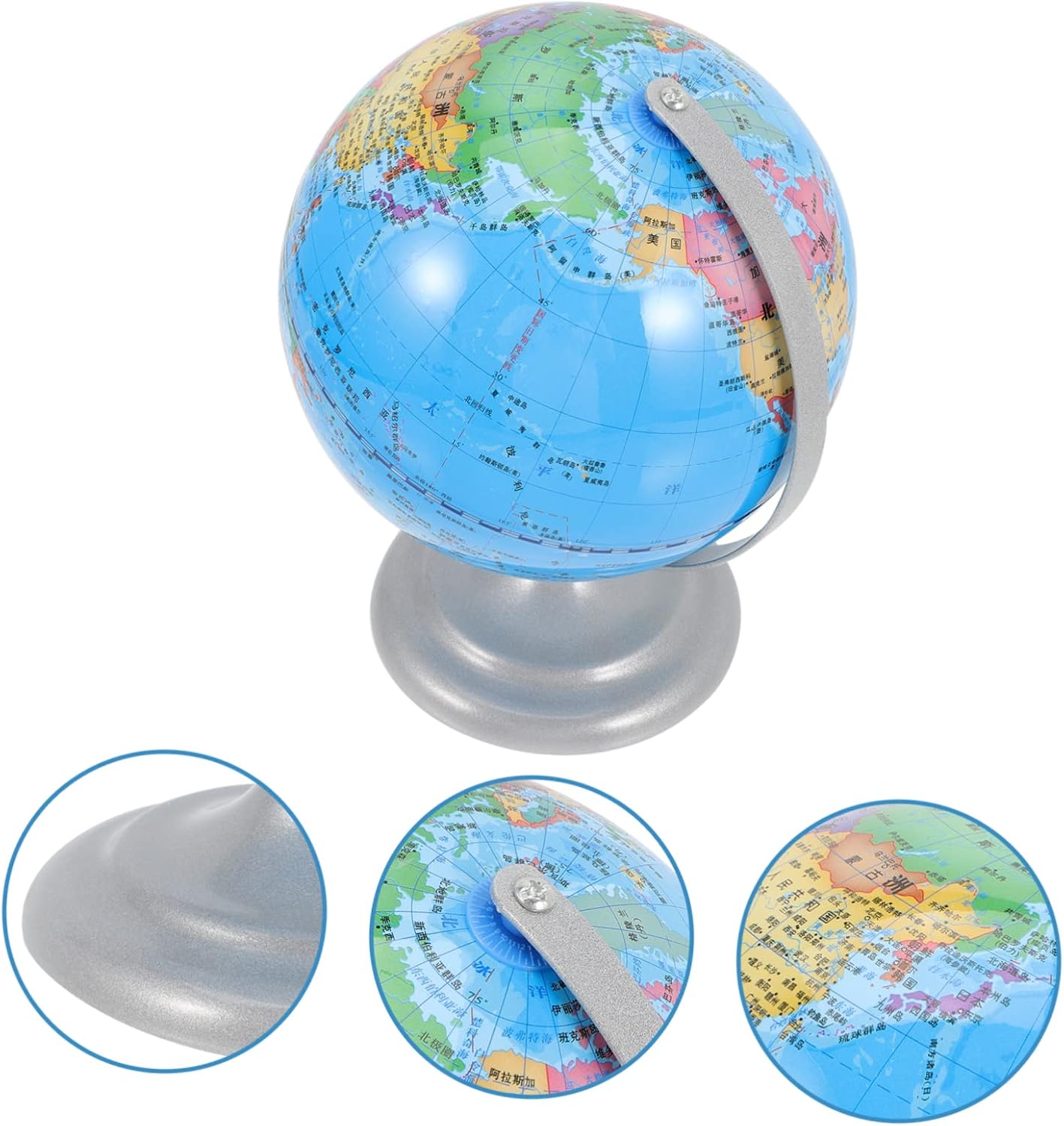 Globo per bambini: il mappamondo può essere un supporto fotografico per scattare foto indimenticabili con la famiglia o gli amici, strumento didattico scolastico Globo decorativo: squisita fattura, crea con cura ogni dettaglio, fallo sembrare, globo terrestre decorativo per la casa Ornamento del globo: questo ornamento al tellurione ha dimensioni compatte e non occupa molto spazio, ornamento del mappamondo scolastico Artigianato da tavolo: con un fondo piatto, può stare saldamente su una scrivania liscia, non c'è bisogno di preoccuparsi che cada, palla telluriana Decorazioni decorative per la casa: con una base e una cornice, il contatore a sfera rotante può essere esposto in l'ufficio, o utilizzato nelle dimostrazioni in classe, nei programmi delle lezioni, nell'arredamento del globo rotante