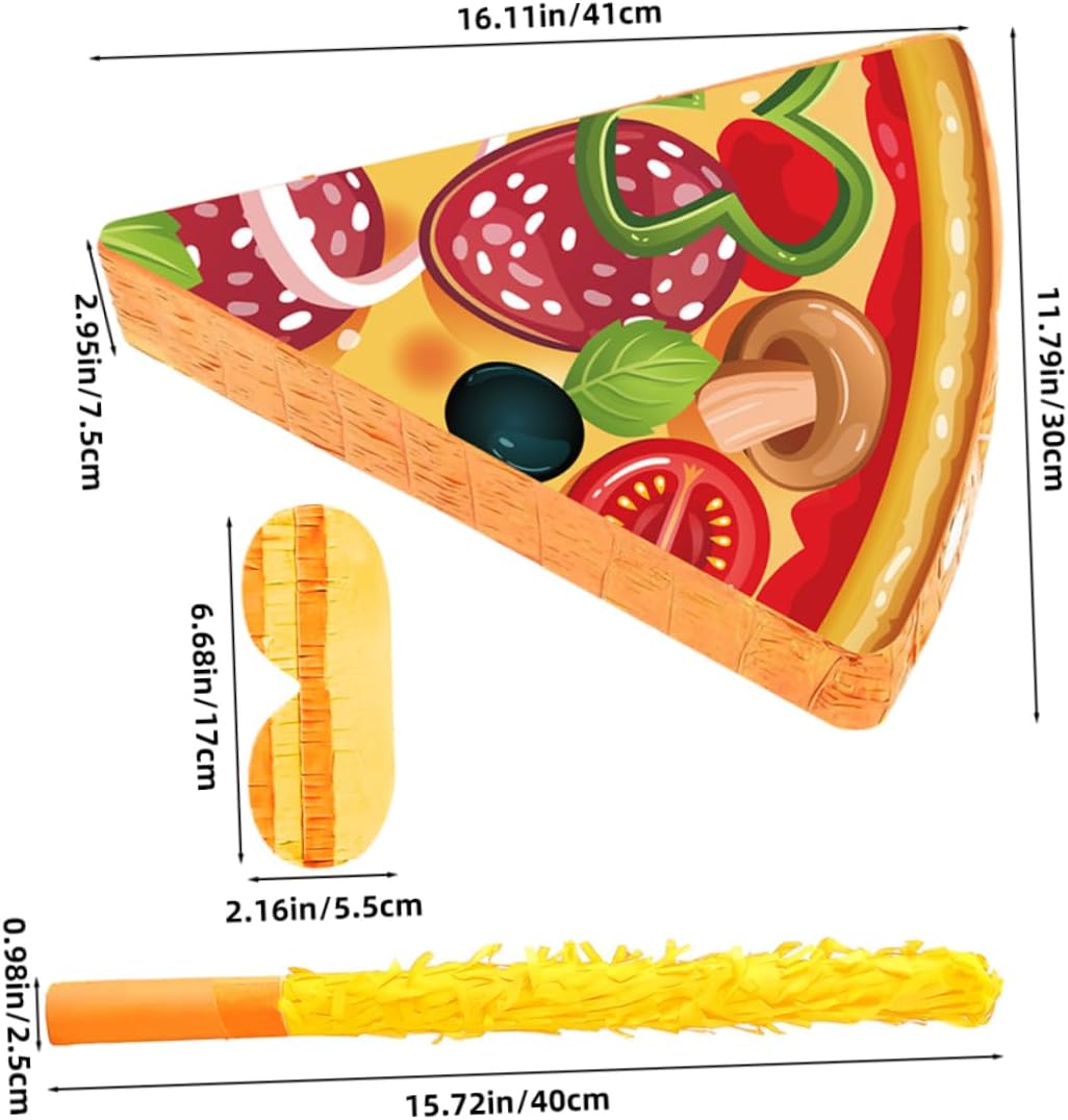 Design riempibile: presenta un comodo foro di riempimento coperto da adesivo in modo da poter aggiungere coriandoli, caramelle, cioccolato o mini per una meravigliosa sorpresa, giochi di pizza party o decorazioni per feste con tranci di pizza Costruzione dettagliata: realizzata in cartone e decorata con carta crespa, questa piñata resisterà a giochi di società entusiasti, decorazioni di coriandoli per feste di compleanno e regali per feste di compleanno di coriandoli Design: questa Piñata ha la forma di una fetta di pizza e aggiunge un tocco umoristico e culinario alla tua festa. È una decorazione eccezionale e un pezzo da gioco. Regali per feste Cinco de Mayo, giochi gastronomici Cinco de Mayo Decorazione versatile: appendilo a pareti, finestre o soffitti per migliorare il tema della tua festa e creare un'atmosfera festosa, decorazioni per feste a tema pizza, decorazioni per feste pizza coriandoli Set completo: include una benda e un bastone, aggiungendo ulteriore eccitazione per i bambini mentre, a turno, cercano di rompere la piñata, piñata con tranci di pizza, divertente piñata con tranci di pizza.