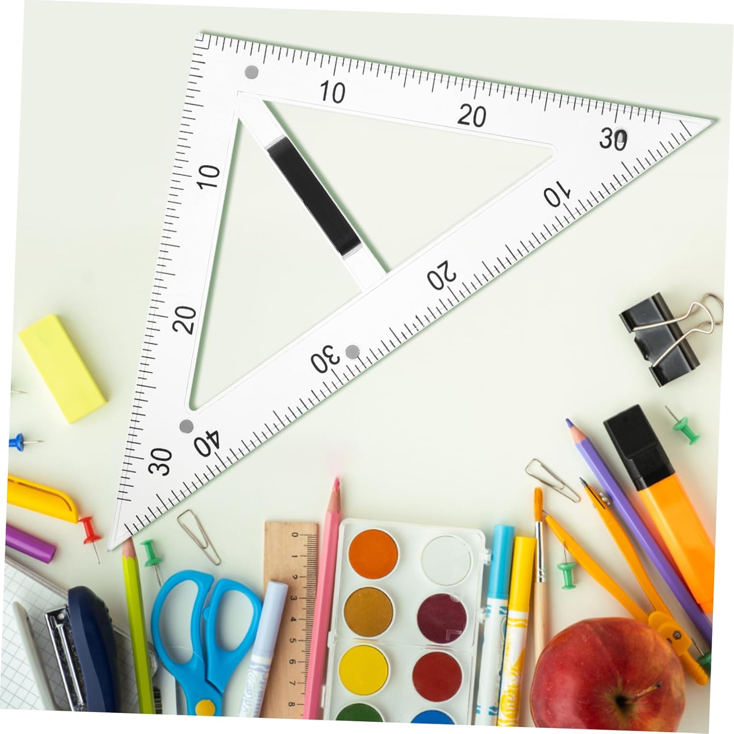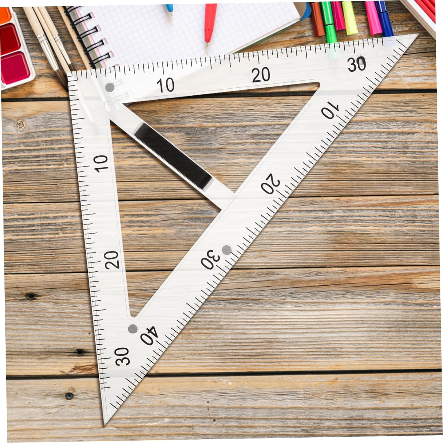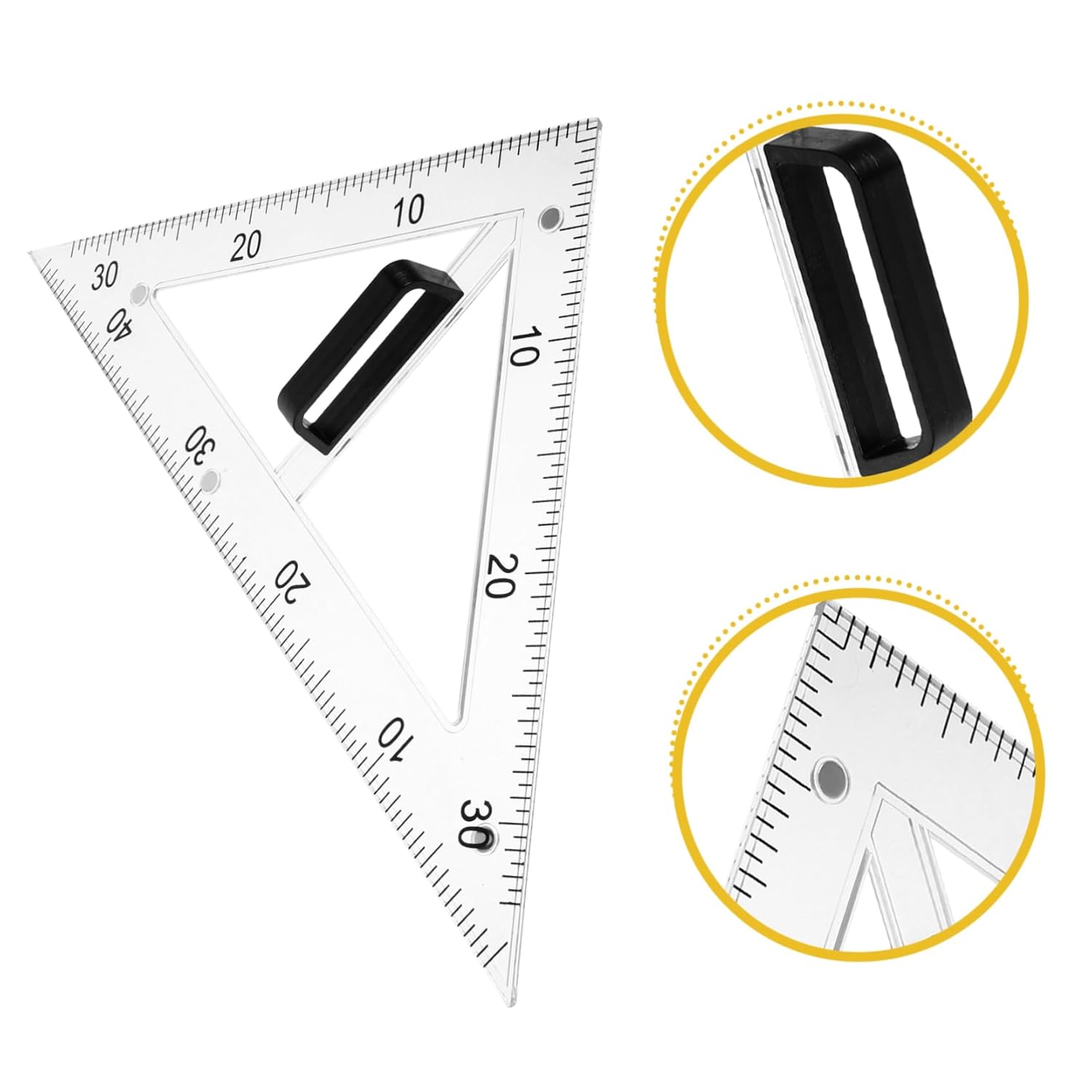Righello didattico: presenta un design conveniente con una struttura triangolare a 45 gradi per creare angoli retti e triangoli equilateri precisi, righello triangolare didattico. Piastra triangolare didattica: il righello triangolare da disegno è adatto sia agli studenti che agli insegnanti durante le lezioni di disegno, il righello didattico della geometria. Materiali didattici: l'uso di materiali abs e magnetici garantisce la durata dello strumento di disegno e una facile pulizia, righelli triangolari in plastica. Righello triangolare da disegno: realizzato in abs e materiali magnetici, garantisce durata e facile pulizia, insegnando il righello triangolare da disegno. Goniometro didattico: il righello triangolare da disegno didattico presenta un design a triangolo di 45 gradi, utile per disegnare angoli retti e triangoli equilateri, righelli geometrici multifunzionali.