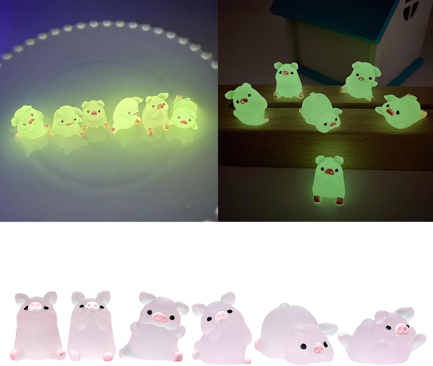 Illumina le decorazioni: possono anche essere un regalo perfetto per i tuoi bambini che amano il maiale e amano le decorazioni in miniatura Decorazioni per torte auto: le nostre figure di maiale luminose ti porteranno felicità e divertimento e creano un'atmosfera allegra Per ornamento da auto: viene fornito con design alla moda per modellare il maiale che aggiunge più dinamismo al vostro arredamento della scena Miniature da tavolo: queste decorazioni di maiale hanno una quantità sufficiente, molto delicata e adorabile, che può soddisfare le tue diverse esigenze Portachiavi per auto: 6 decorazioni per maiali in resina. Viene fornito con un design modellante di maiale per dare più dinamismo alle vostre scene