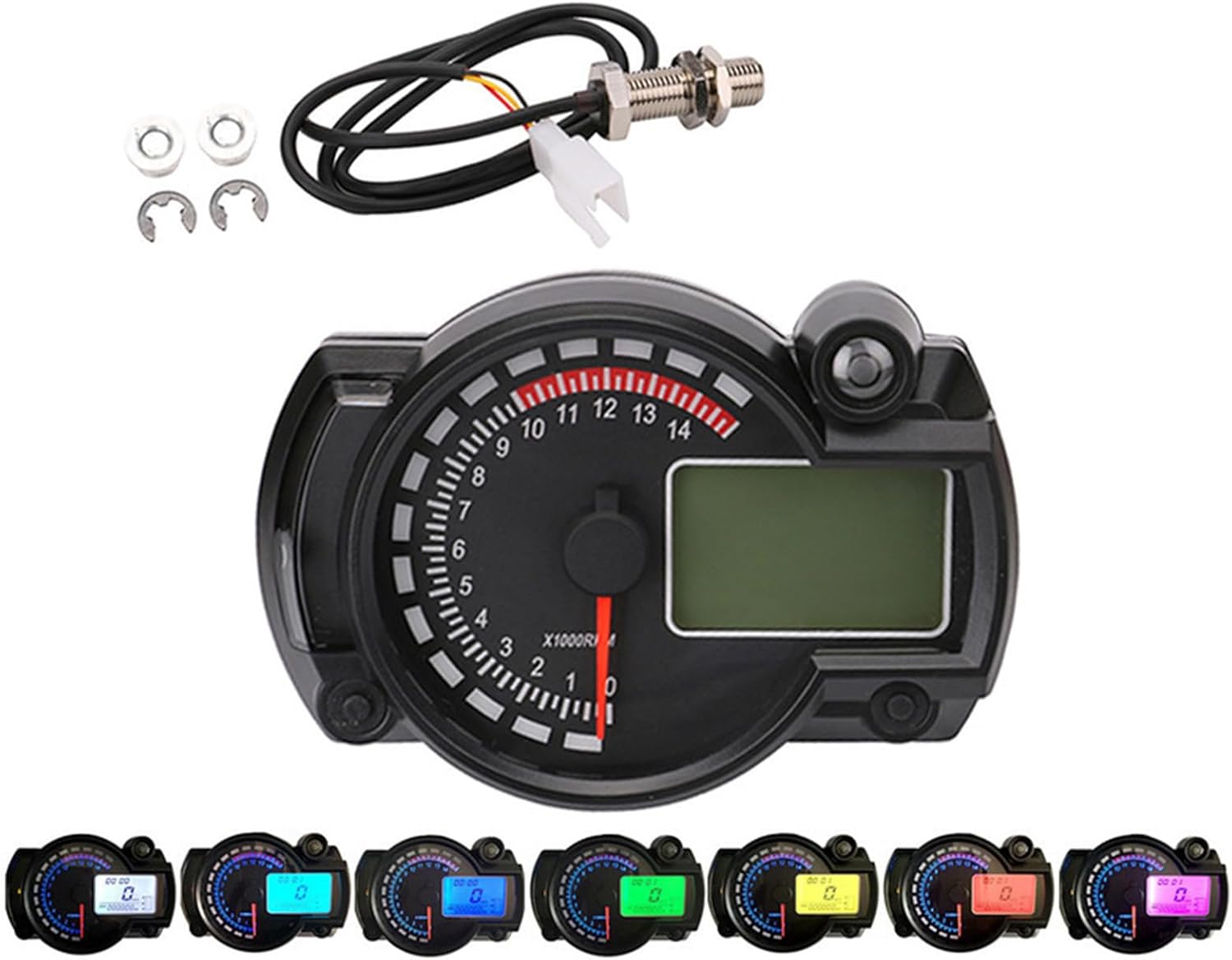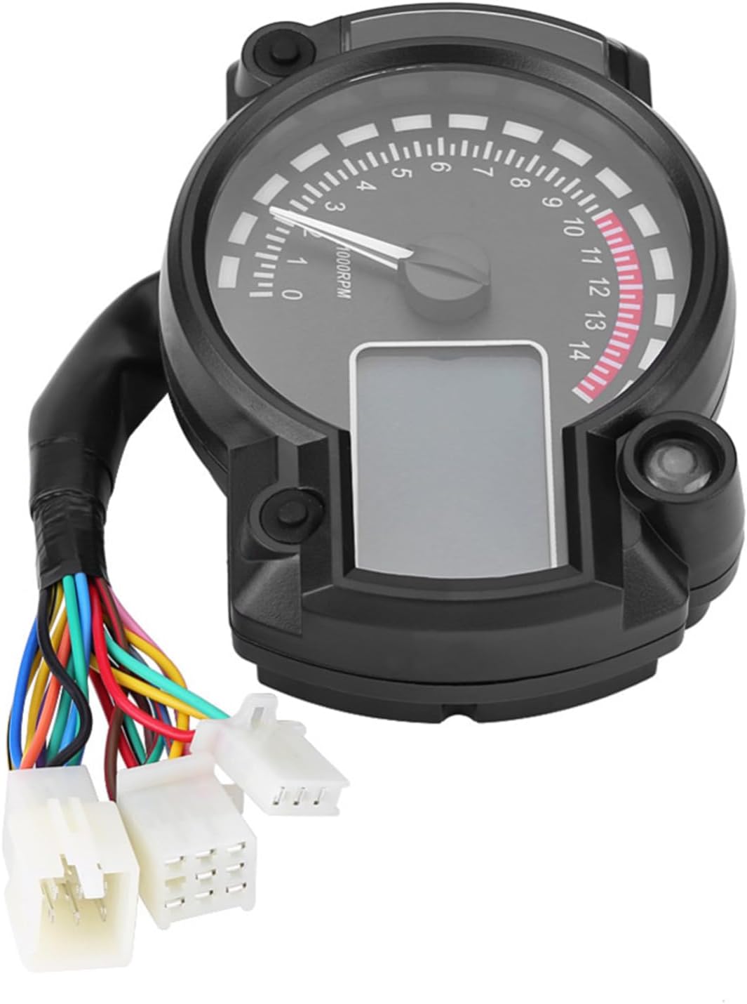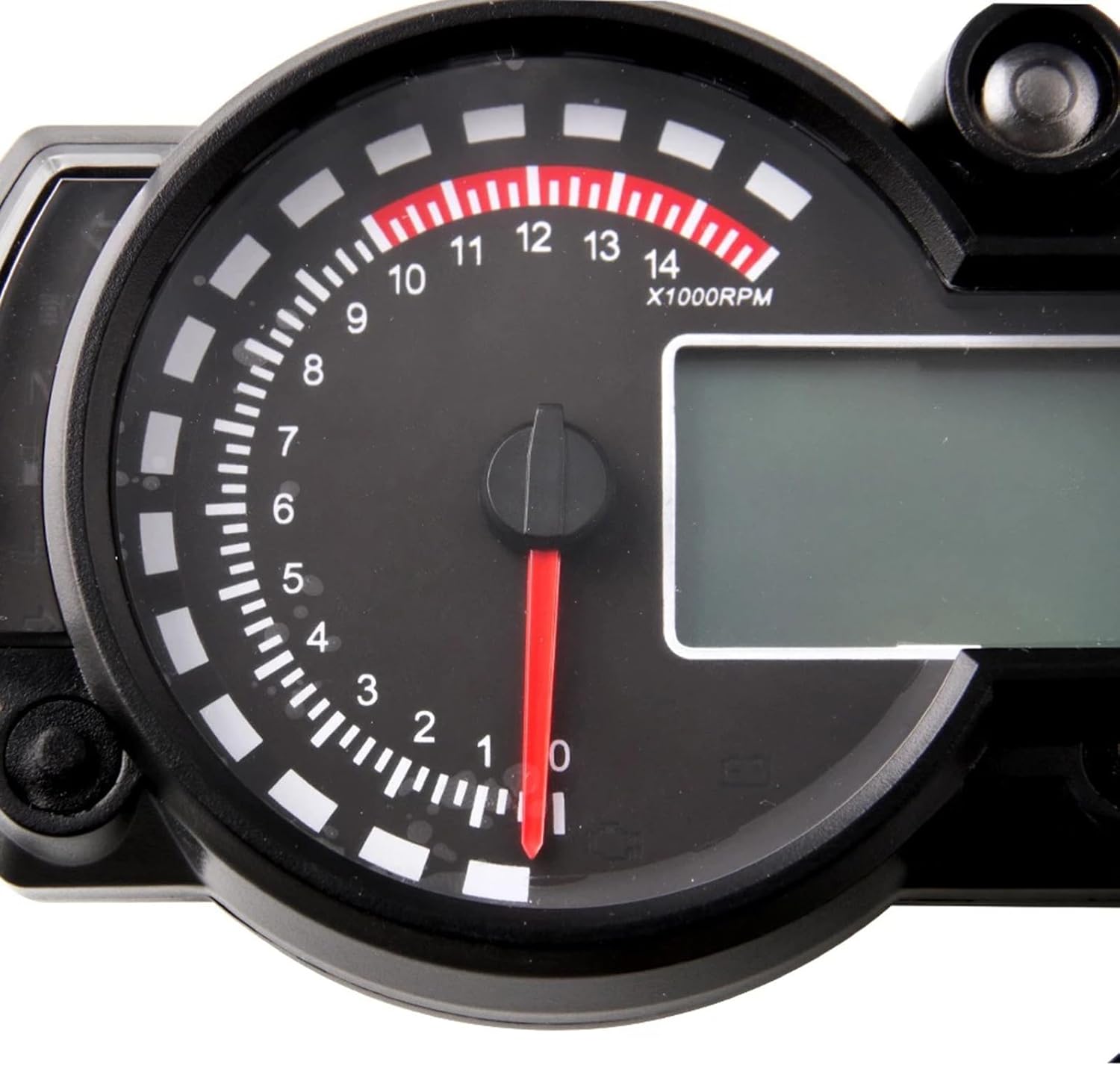 Progettato con capacità impermeabili superiori, questo cruscotto per motociclisti resiste a tutte le condizioni delle condizioni alterazione, rendendolo buono per le giostre piovose senza timore danni Sperimenta chiarezza senza pari con nostro indicatore LCD per motociclette, con un display risoluzione che garantisce facile leggibilità della velocità e del chilometraggio in qualsiasi condizioni illuminazione Perfetto per appassionati motociclette, i pendolari quotidiani, i viaggiatori a lunga e i corridori che richiedono velocità precisa e un monitoraggio del chilometraggio per prestazioni e sicurezza Display cristalli liquidi: velocità, contachilometri, viaggio, strumento, posizione ingranaggio livelli olio e orologio in reale. Premere pulsante per controllare la conversione tra contachilometri e contachilometri Realizzato in ABS e materiali in metallo, questo accessorio per promette longevità e resilienze, mescolando perfettamente con l'estetica della tua bici offrendo impostazioni display personalizzabili