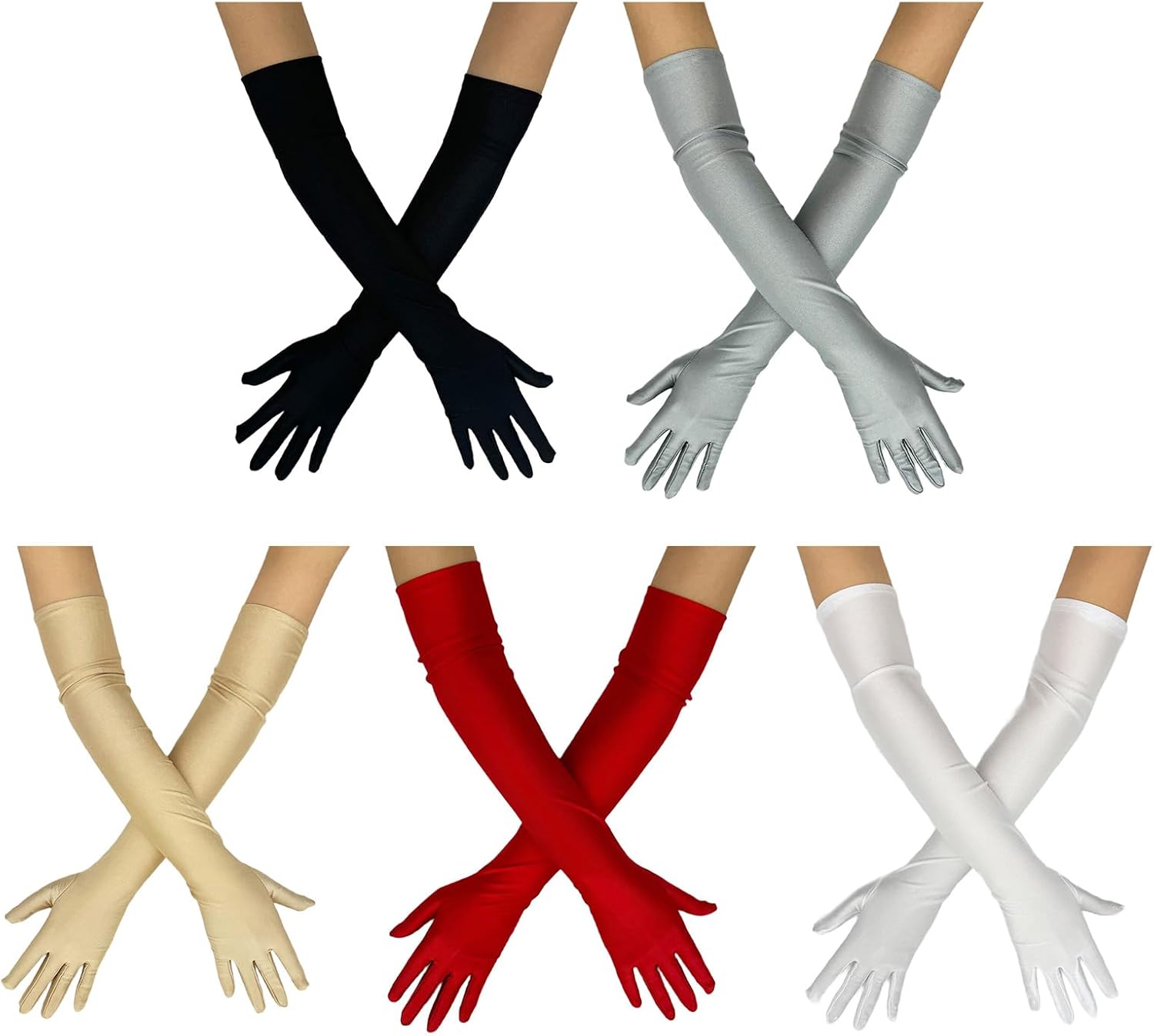Eleganti guanti per costume anni '20 per abiti da sposa e giochi di ruolo Caratteristiche: Migliora la tua eleganza con i nostri guanti lunghi, utilizza spandex satinato selezionato che offre una sensazione di lusso e durata. Questi guanti lunghi presentano un design elastico e traspirante che garantisce un movimento confortevole e senza restrizioni, rendendolo perfetto per qualsiasi occasione formale. Ideale per spose, damigelle d'onore e donne che cercano un tocco sofisticato al loro matrimonio o look formale per matrimoni, feste serali, esibizioni al gomito ed eventi cosplay dove eleganza e stili. Questi guanti lunghi fino al gomito aggiungono un fascino senza tempo a qualsiasi outfit, migliorando il tuo look generale con eleganza. Specifiche tecniche: Dimensioni del prodotto: ca. Lunghezza: 52 cm. Componente: Spandex Opzione di colore: 5 colori opzionali come mostrato nelle immagini La confezione include: 1 paio di guanti. Nota: Considerare un margine di errore di 1-2 cm dovuto alla misurazione manuale. A causa delle differenze tra i diversi monitor, l'immagine potrebbe non riflettere esattamente il colore dell'articolo.