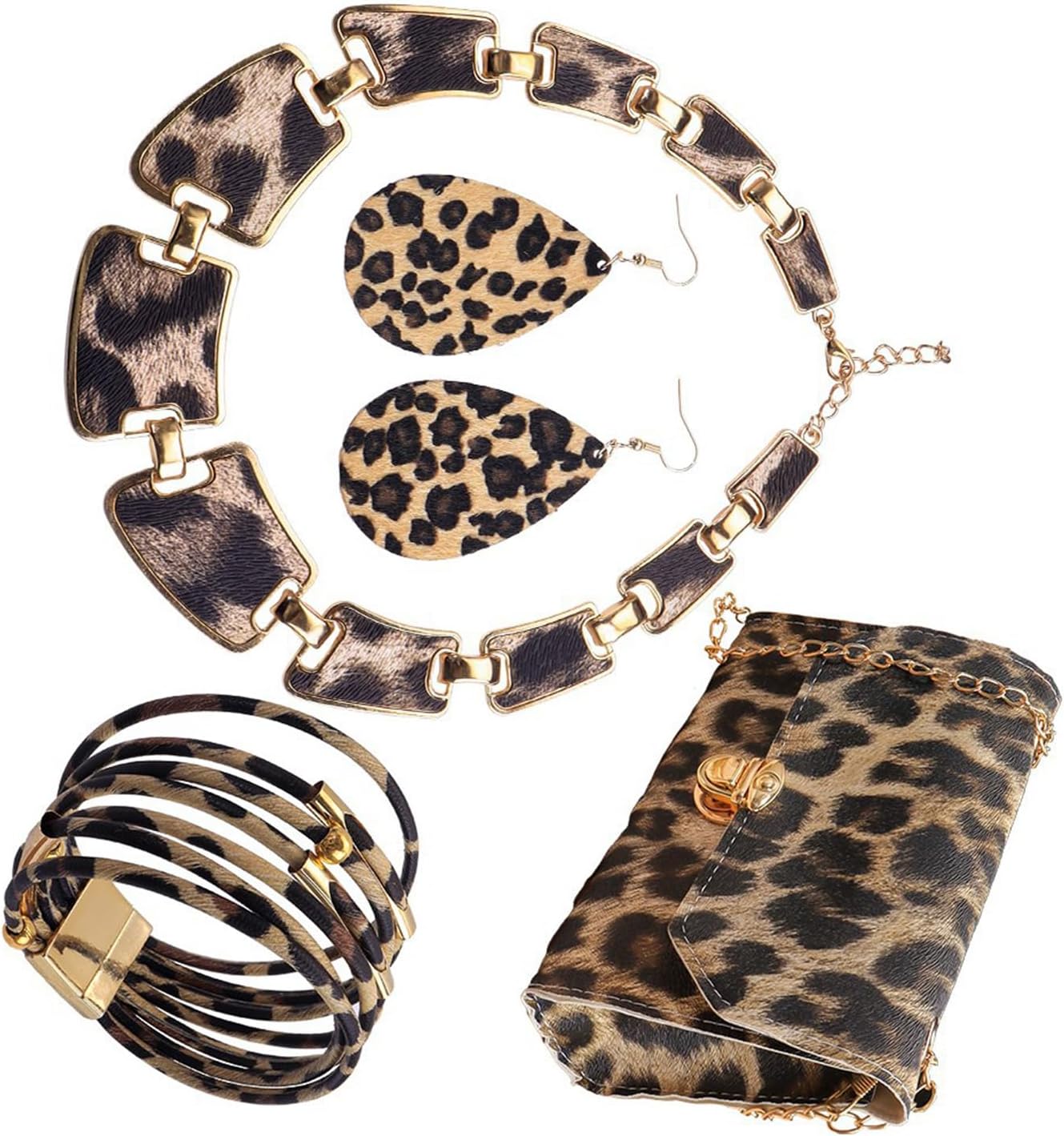 Set accessori per stampa leopardati alla per donne Orecchini eleganti Accessori per la borsa della collana bracciale Caratteristiche: Eleva tuo lato selvaggio con questo set gioielli con stampa leopardata con borsa, orecchini abbinati, bracciale e collana per eleganza coordinata. Realizzato in lega con invegno in finto resistente a graffi, questa versatile combinazione accessori offre durata leggera mantenendo la raffinatezza spigolosa. Progettato per le donne in avanti che cercano dichiarazioni che ensemble, questo set autorizza l'espressione attraverso la sua estetica stampa animale e mescolare e abbinare la versatilità. In transizione senza soluzione continuità dai brunch diurni all'evento serale con questa collezione stampa leopardata coerente che aggiunge drammi ai jeans casual o eleva abiti da cocktail. I motivi stampa leopardo sono eleganti, questo set gioielli può modificare la forma del viso evidenziare tutto tuo look, facile da abbinare con varietà vestiti, Specifiche: Materiali: lega Dimensione del sacchetto: 19x6x12cm/7.48x2.36x4.72 pollici Peso: 202G pacchetto include: 1 set gioielli con stampa leopardata Nota: 1. Assicurare errori 1-2 cm dovuti alla misurazione manuale, assicurati non dispiacere prima ordinare. 2. Adrire alle differenze tra diversi monitor, l'immagine potrebbe non riflettere colore effettivo sull'elemento.