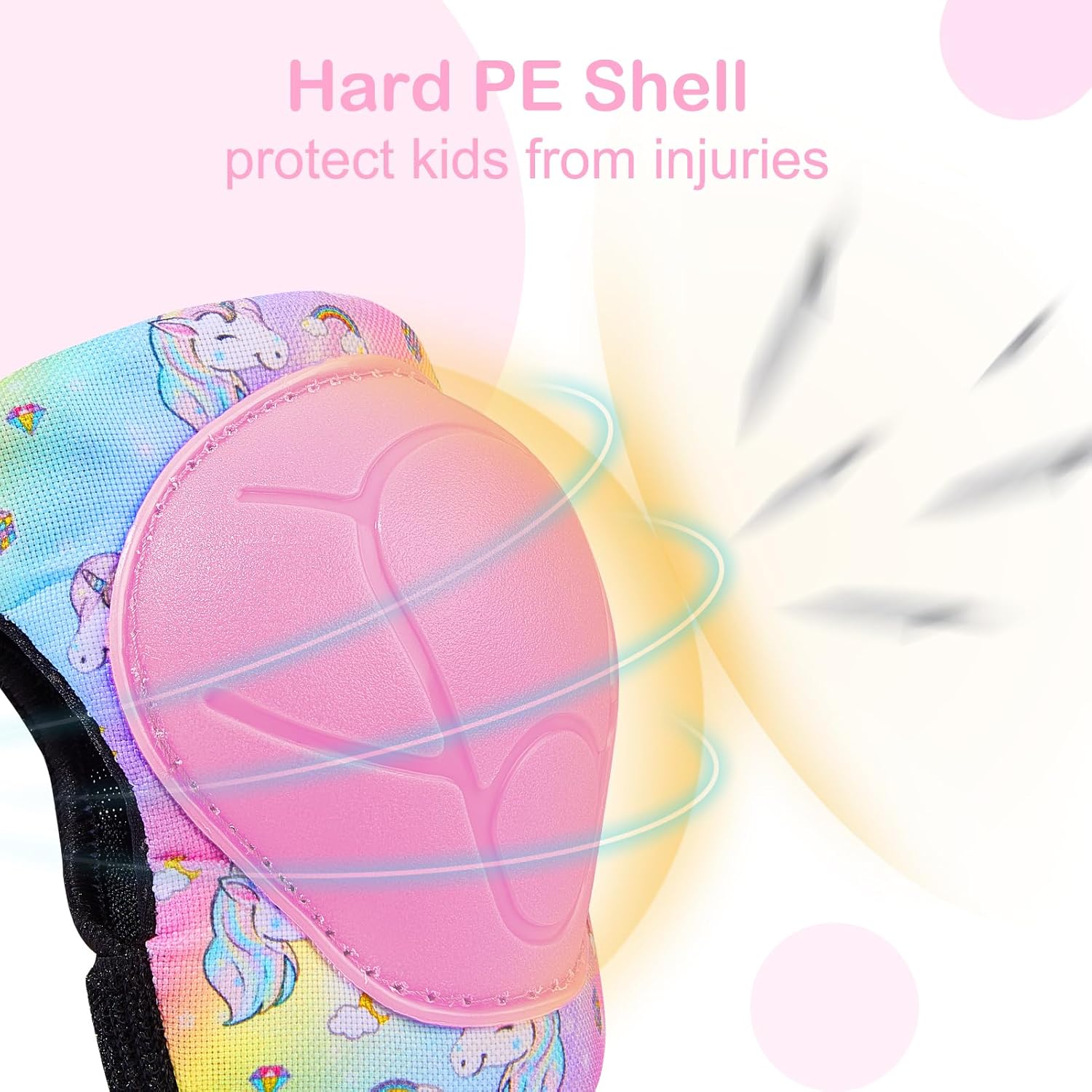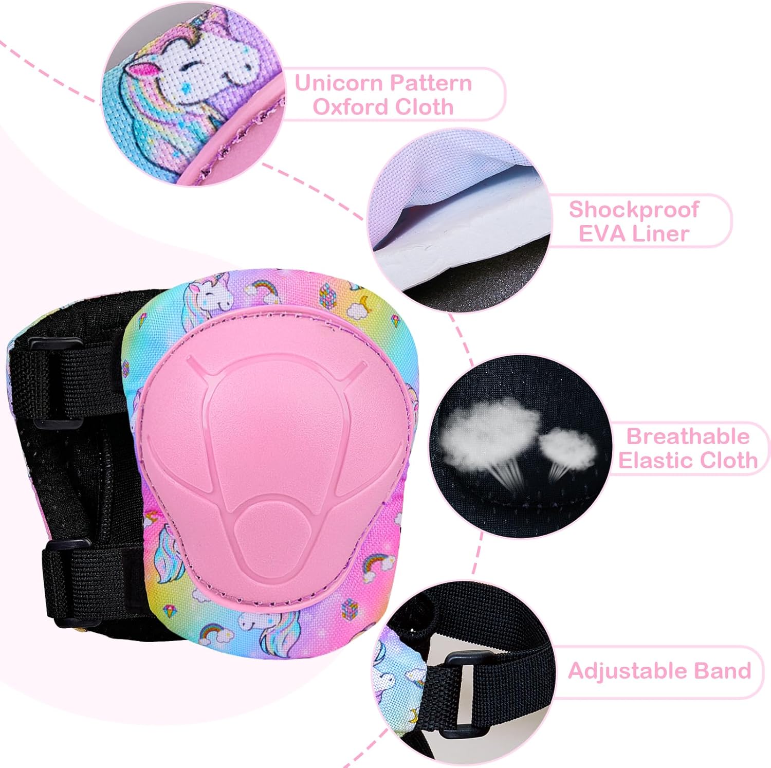 💕【Set di ginocchiere per bambini 6 in 1】: le nostre ginocchiere per bambini sono composte da 2 ginocchiere, 2 gomitiere, 2 polsiere e 1 zaino con unicorno, proteggendo la tua sicurezza a tutto tondo. La taglia S può essere indossata da 3 -Bambini di 8 anni. C'è una cintura telescopica regolabile, puoi regolare la lunghezza in base alla circonferenza del ginocchio/gomito/palmo dei tuoi bambini. 💕【Materiale confortevole e protezione completa】: L'esterno delle ginocchiere per bambini è realizzato in un guscio di gomma PP, che è più adatto al tuo corpo e può proteggerlo da lesioni in caso di caduta. Il set di ginocchiere per bambini è realizzato in 600D Tessuto Oxford, l'interno è costituito da velluto e schiuma da 2 mm, che non solo è antiurto, ma molto morbido e traspirante Non ti sentirai soffocante anche se lo indossi per molto tempo. 💕【Misura regolabile per età 3-8 anni】: Il design con chiusura con fibbia regolabile rende i nostri indumenti protettivi facilmente indossabili e regolabili per un fissaggio perfetto su ginocchia, gomiti e polsi dei bambini. La forma ad arco si adatta alla parte del corpo per proteggere le ginocchia gomiti e palmo. Taglia 3-8 anni. 💕【Ampie applicazioni】: le ginocchiere con protezioni per il polso sono progettate per la protezione della sicurezza sportiva dei bambini, in particolare per pattinaggio su ghiaccio e ciclismo, skateboard hoverboard, ciclismo, ciclismo, pattinaggio, rotolamento e altri sport. 💕 【Dolci regali per bambini】: il set da pattinaggio con ginocchiere è confezionato con uno zaino con unicorno, le ginocchiere per bambini sono più adatte come regalo per i tuoi bambini. I set di protezioni hanno varietà di colori, puoi scegliere il colore in base la loro preferenza.