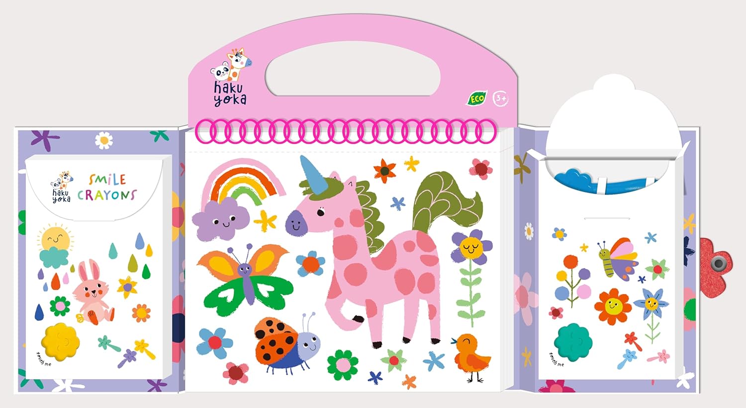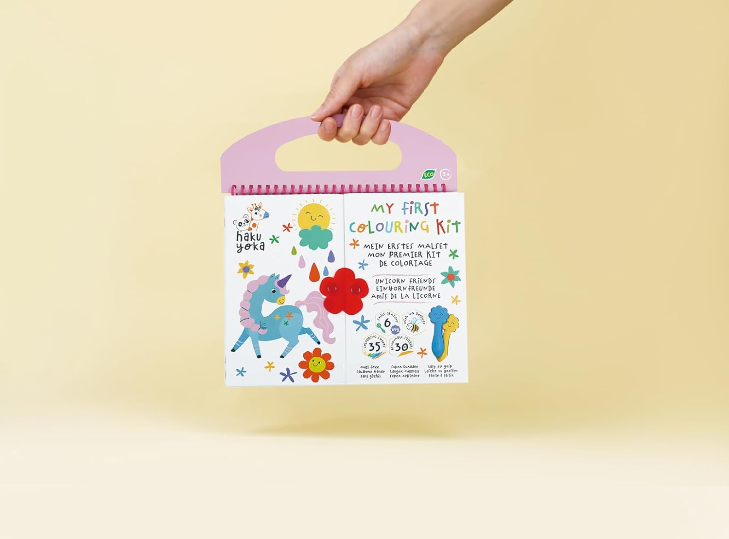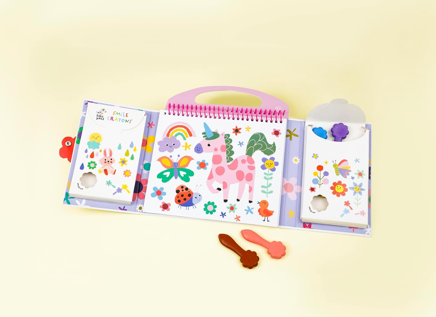 Kit tutto in uno per bambini dai 3 anni in su con 6 pastelli sorridenti super resistenti e facili da impugnare 35 fogli da colorare con unicorno e scene di amici 30 adesivi rimovibili per migliorare l'immaginazione Intrattenimento senza schermo, perfetto per bambini dai 3 anni in su Compatto e comodo per giocare in modo creativo in viaggio