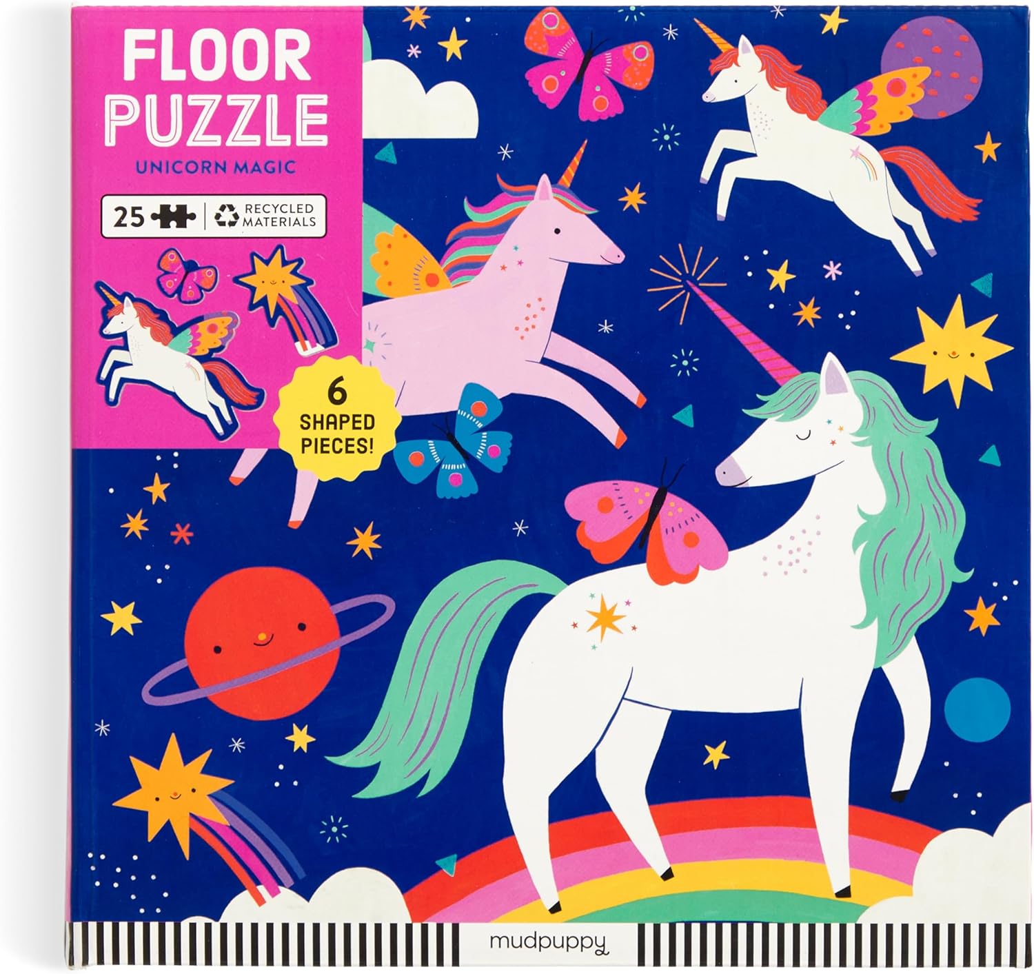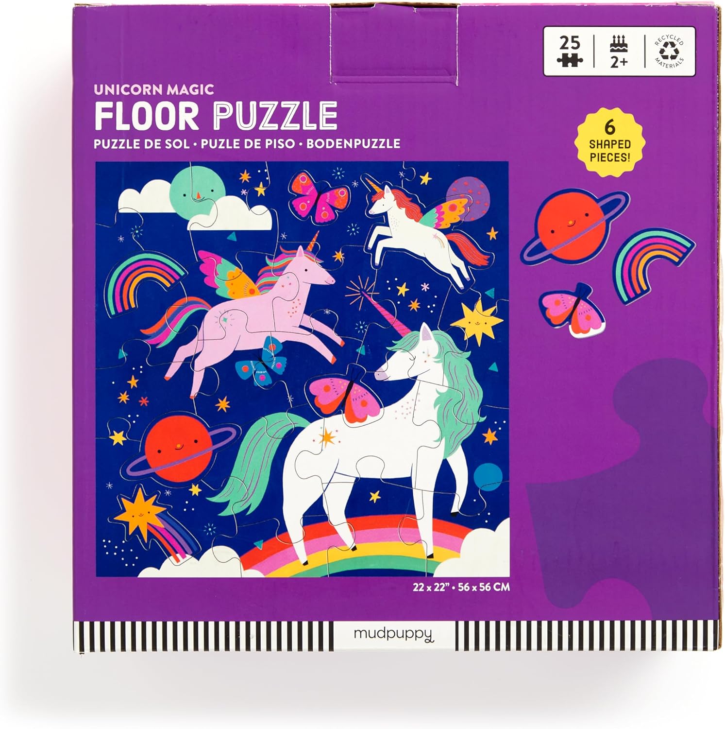 Puzzle da 25 pezzi: metti insieme questo puzzle da pavimento magico unicorno con magici unicorni arcobaleno che include anche 6 pezzi di forma speciale. Ideale per bambini dai 2 anni in su, questo grande puzzle ha pezzi grandi che sono facili da tenere per le mani giovani. Pezzi extra grandi: questo puzzle da pavimento Unicorn Magic presenta unicorni, stelle magiche e pianeti, tutto intorno a un bellissimo sfondo arcobaleno dello spazio esterno. I pezzi extra-large sono perfetti per le piccole mani da manipolare. Divertente puzzle di apprendimento: i puzzle Jumbo sono un modo divertente ed educativo per i puzzle più giovani di praticare la coordinazione occhio-mano e la risoluzione dei problemi. Robusta scatola portaoggetti – Confezionato in una scatola portaoggetti da 22,9 x 22,9 x 3 da 12,7 cm, avrai sempre un posto per tenere insieme in modo sicuro i pezzi e privi di danni quando non in uso. Mudpuppy – Mudpuppy offre una vasta gamma di puzzle, giochi e giocattoli non digitali ed ecologici per bambini e giovani di cuore. Crediamo nella creazione di giocattoli che aiutino i bambini a scollegare e trascorrere meno tempo davanti agli schermi con design moderni divertenti e interessanti.