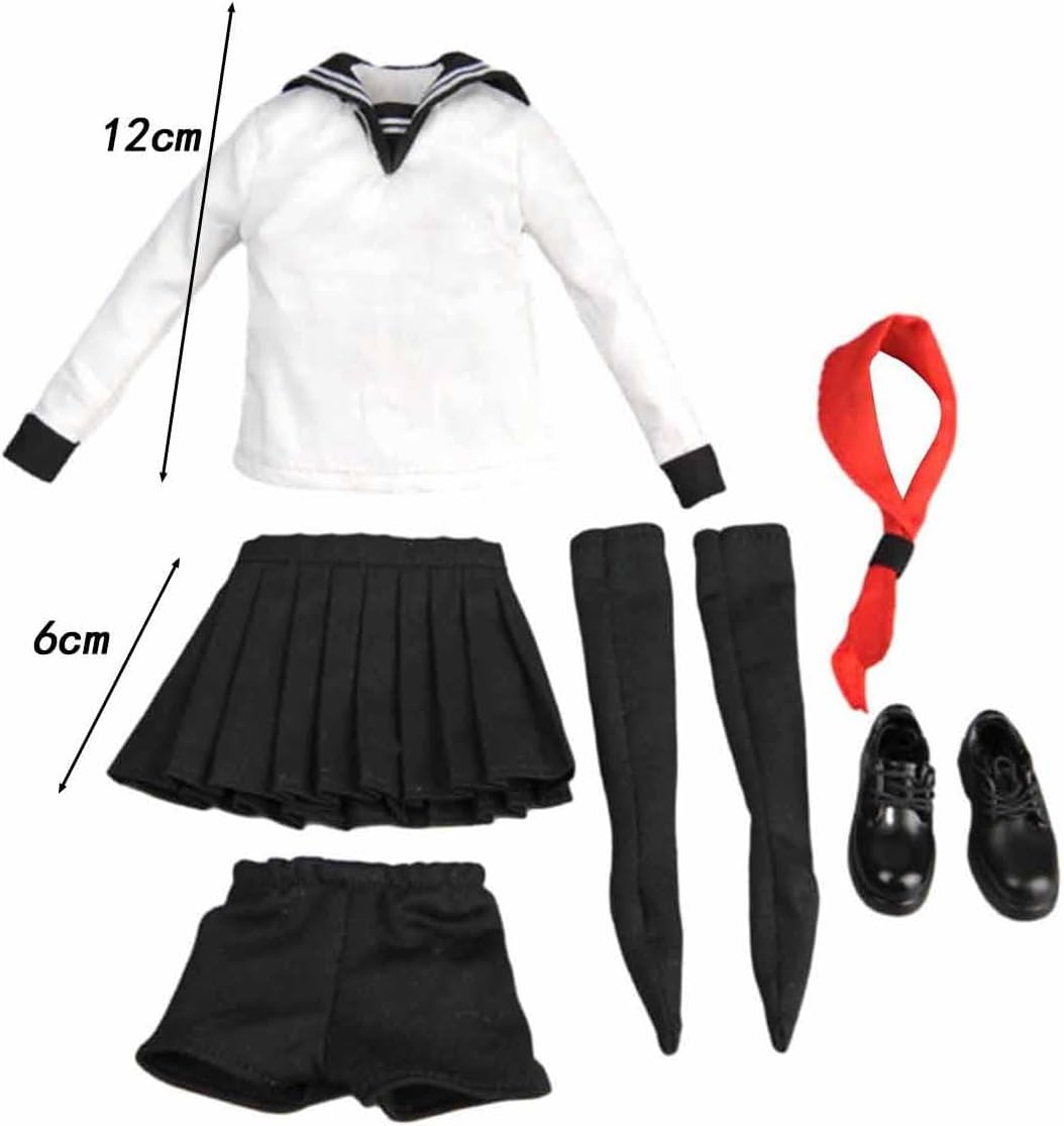 Contiene: 1 maglietta a maniche lunghe, 1 cravatta, 1 minigonna, 1 biancheria intima, 1 paio di calze, 1 paio di scarpe in pelle. Materiale: realizzato a mano con stoffa, pregevole fattura e durevole. [Adatto per 1: 6 scala femminile action figure costume. [Elegante e fresco]: gli abiti cosplay possono decorare la tua bambola soldato più bella e decente. (Non per persone reali) [Accessori per action figure]: 1/6 ragazza femminile action figure moda scuola uniforme set vestito.