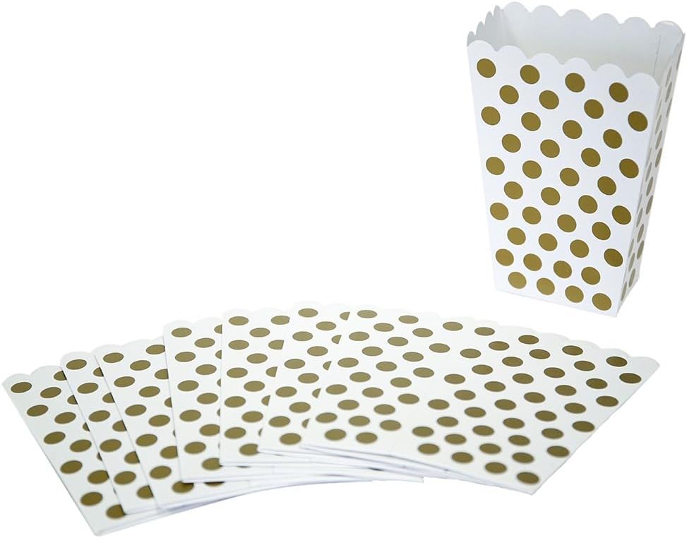 Confezione da 8 scatole popcorn sorpresa a pois dorati Scatole popcorn sorpresa a pois dorati misurano circa 14 cm x 10 cm Ideale per una festa di Natale, festa di Capodanno, festa di compleanno 50 °, bridal shower, festa di fidanzamento o matrimonio Grande per popcorn e snack a una festa, o da riempire con regalini della festa da mandare a casa con gli ospiti alla fine della giornata Cerca altri articoli per feste a pois dorato e coordina le decorazioni per feste tinta unica di Unique Party