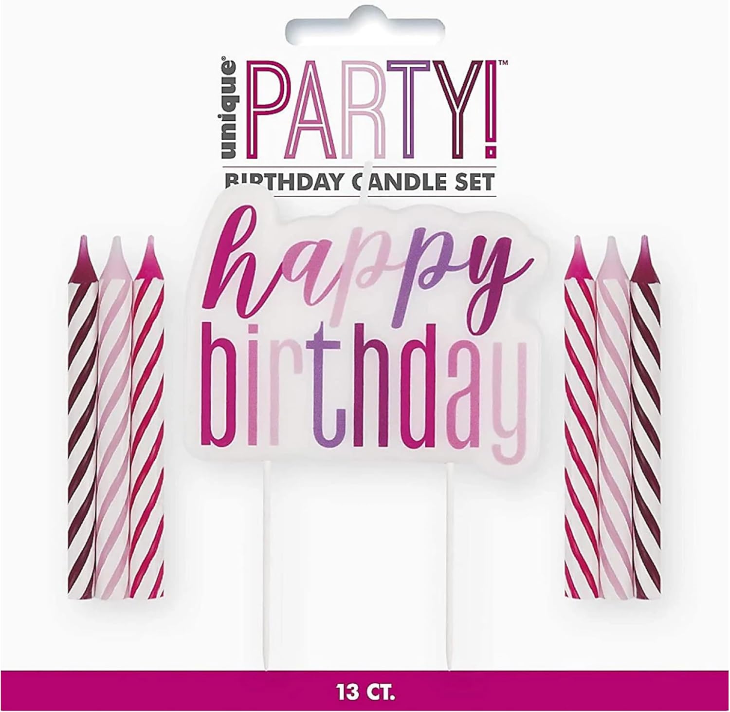 Contenuto della confezione: set di 7 candele "Happy Birthday" in una bella combinazione di colori viola, rosa e magenta Combinazione di colori: elegante miscela di sfumature viola, rosa e magenta, perfetta per la decorazione di torte di compleanno Uso versatile: ideale per torte di compleanno, cupcake e altri dolci celebrativi Essenziale per le feste: aggiunta perfetta alle forniture per feste di compleanno e agli accessori per la decorazione di torte Presentazione: ogni candela presenta il classico testo "Happy Birthday" per un tocco festivo