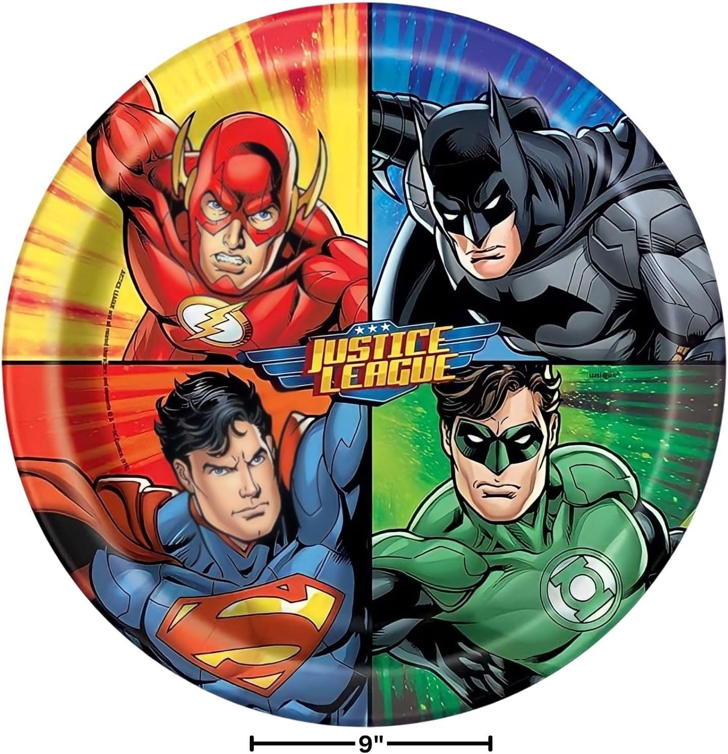 Coordinate with other Justice League Party Supplies and tableware from unico Use to pass Out slices of pizza at Lunchtime, and Simply Throw Away when done for an easy Cleanup action-packed addition to any Boys Birthday Party, Superhero Birthday Party, oro Justice League Themed Party Justice League Paper piatte measure 8.875