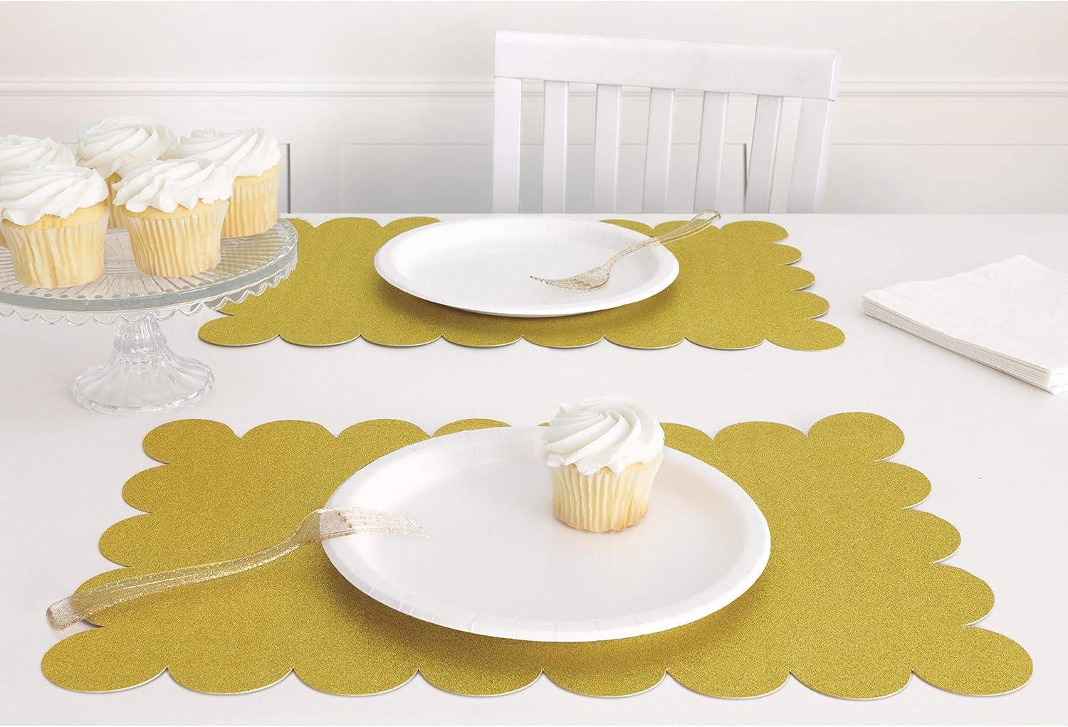 Confezione da 8 Tovagliette in Plastica con Glitter Oro Le tovagliette misurano 43 cm x 28 cm Ideale per decorare una tavola ad una festa di compleanno, Natale o Capodanno Dona alla tua tavola una finitura professionale Combina con altri accessori per feste glitter dorati di "Unique Party"