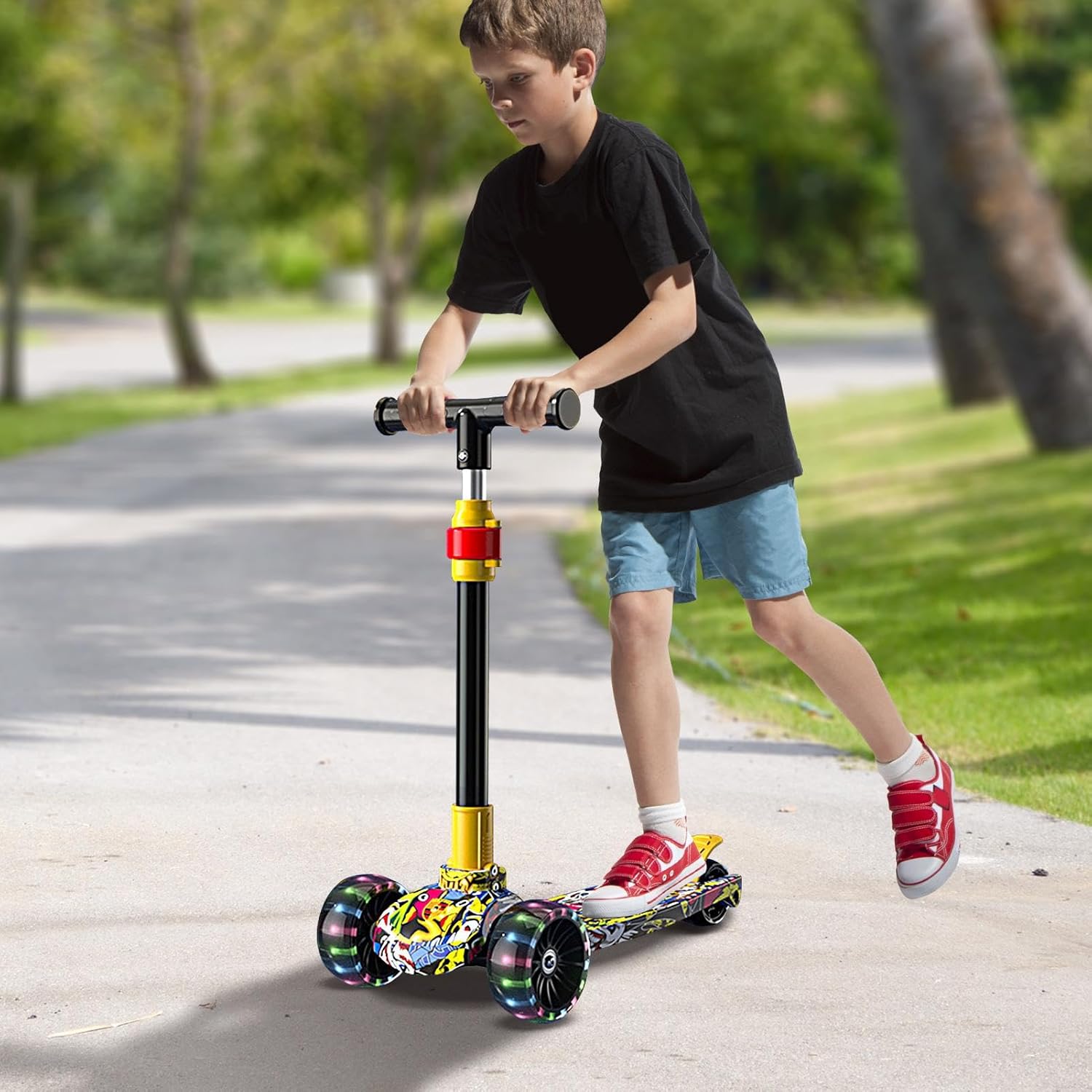 Sicurezza avanzata: lo scooter per bambini vanta una tecnologia di rilevamento intelligente per un regolare e sicuro, consentendo un facile controllo della direzione della svolta e prevenire qualsiasi rischio di arrotolare gli incidenti Pattinaggio più sicuro: il nostro calcio di triangolo con freno a piedi offre un stabile e sicuro per i bambini, rendendolo lo scooter adatto per i più giovani ciclisti. Il design unico garantisce una corsa morbida e divertente tenendo a mente la sicurezza in ogni momento Flessibilità migliorata: scooter pieghevole per bambini, adatto a bambini di tutte le altezze, con 4 altezze tra cui scegliere, adatti a ragazzi e ragazze di età compresa tra 2 e 12 anni Lunga durata di servizio: lo scooter per bambini presenta materiale addominali robusto e affidabile con ruote PU di lunga durata che offrono un fluido e sicuro per i bambini. La sua funzione di altezza regolabile garantisce il massimo comfort e comodità per i bambini Ampia applicazione: sperimentare la gioia di una corsa con i nostri bambini scooter. Con il suo design pieghevole, è adatto a diverse aree, dai viaggi scolastici al cortile, al parco e al parco giochi