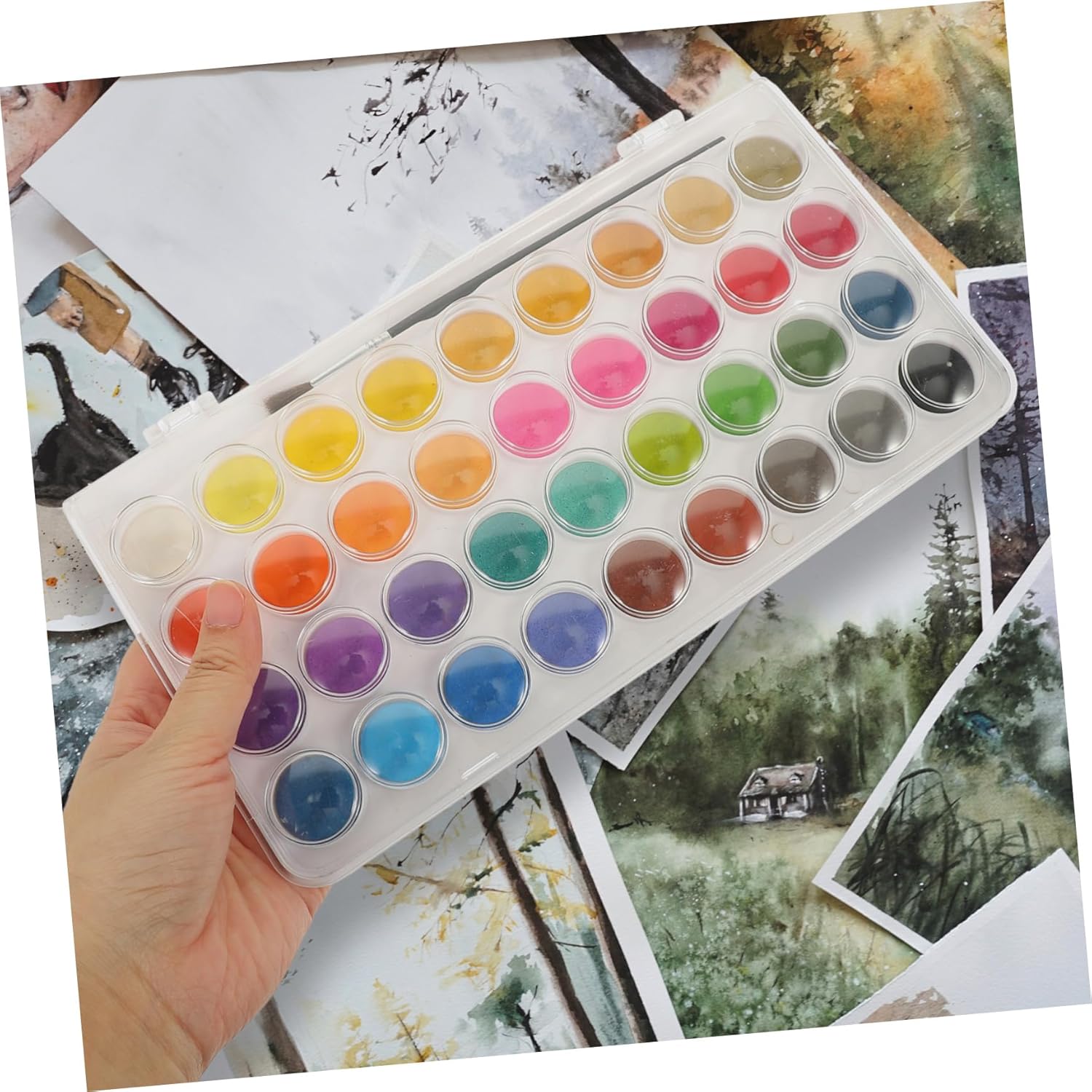 Acquerelli: sono dotati di una piastra per mescolare i colori, che può aiutarti a dipingere bene e i tuoi colori preferiti, kit di pigmenti per pittura Pittura ad acquerello: può coltivare la capacità dei di coltivare , visione, sviluppo intellettuale, cervello manuale, pittura ad acquerello con pennello Pigmenti per pittura: design compatto e leggero, molto comodo da trasportare e riporre, kit per acquerelli leggero Pigmenti da disegno: l'eccellente lavorazione del nostro prodotto ti offrirà una buona esperienza di utilizzo, kit per acquerelli da disegno Kit per acquerelli: il kit per acquerelli è ottimo per studenti, artisti, , principianti, amanti della pittura, ecc., kit di pigmenti per acquerelli